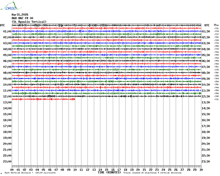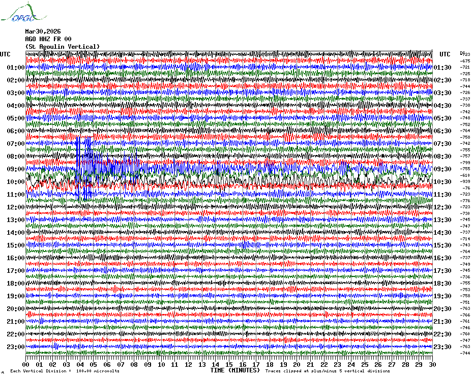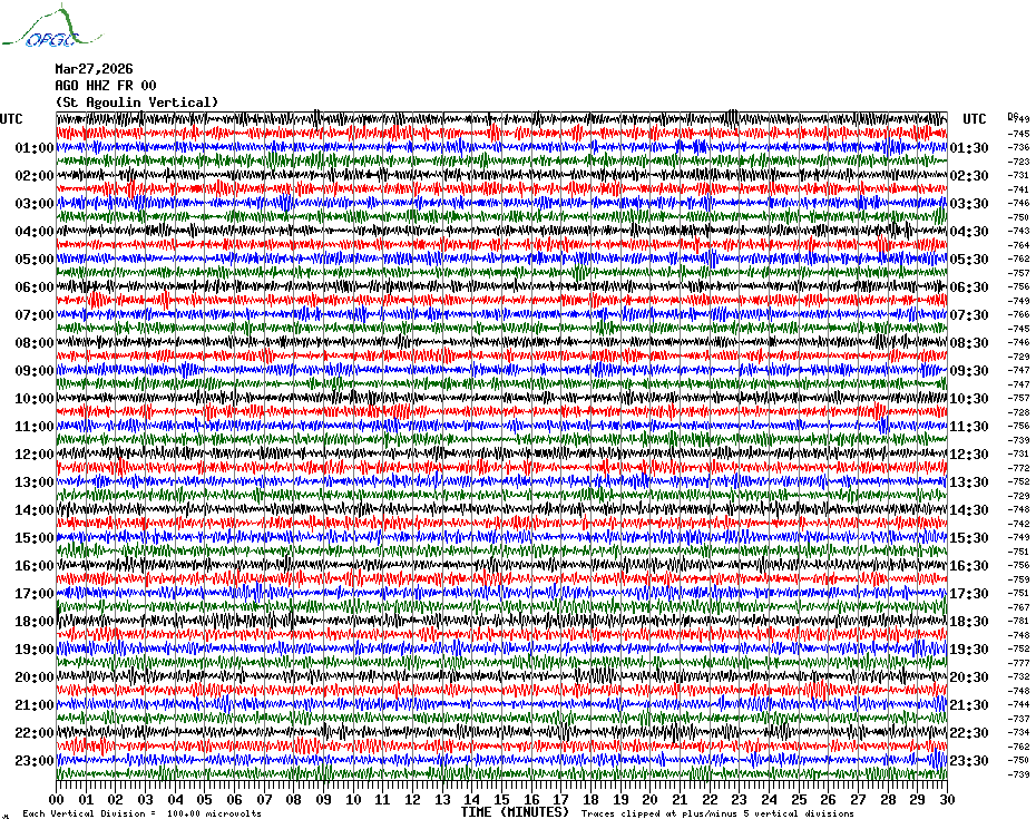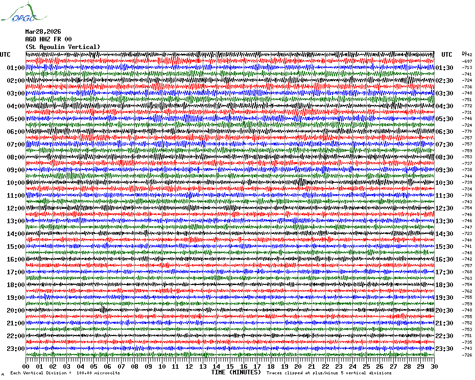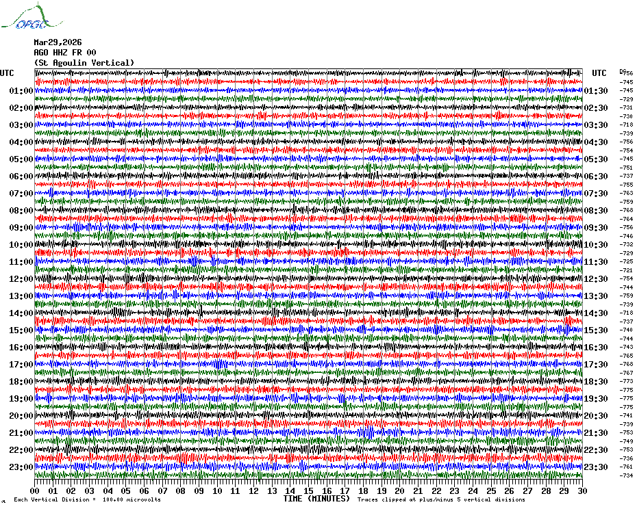 Sismogrammes du Réseau Sismologique Auvergne par fenêtre de 24h