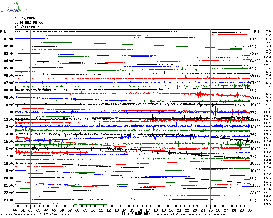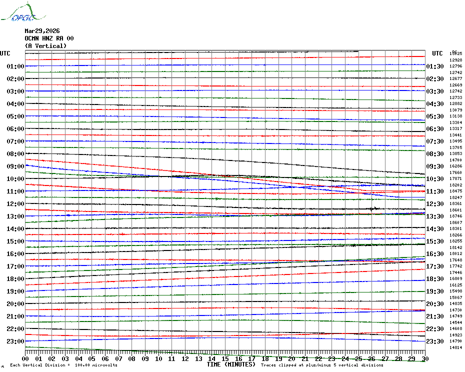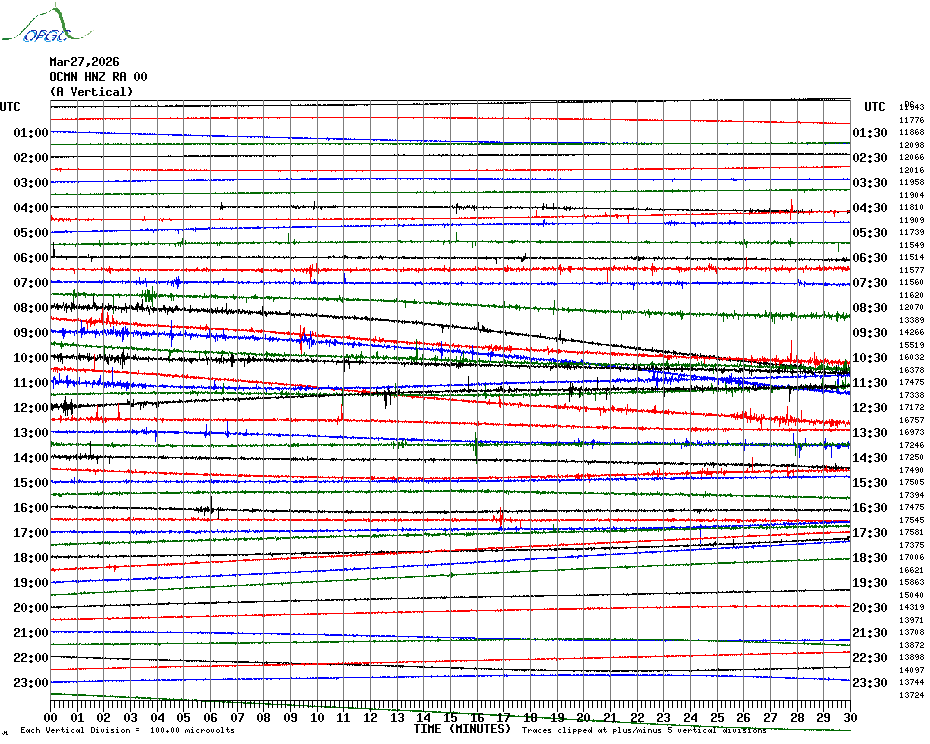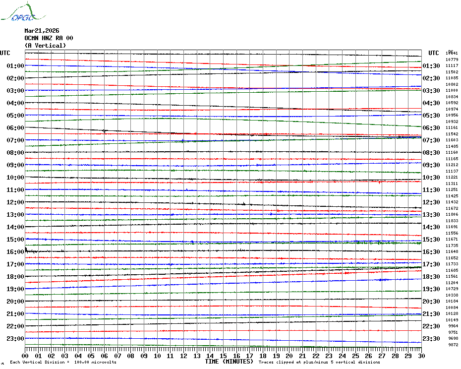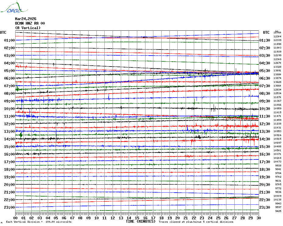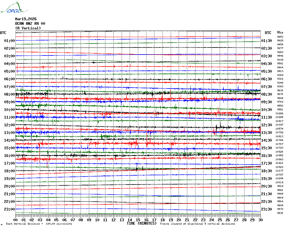 Sismogrammes du Réseau Sismologique Auvergne par fenêtre de 24h