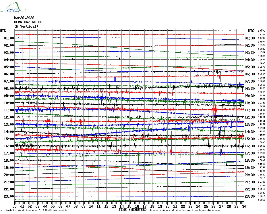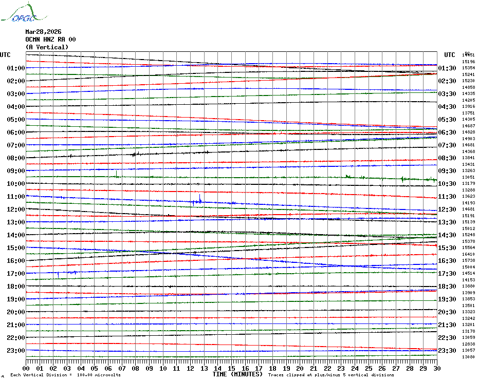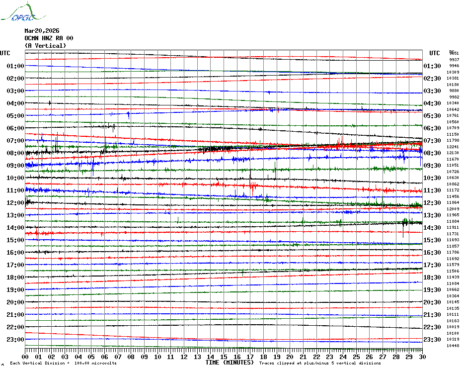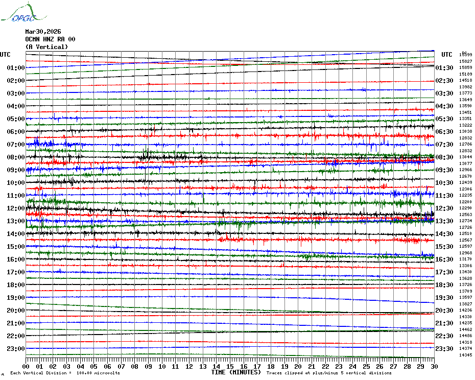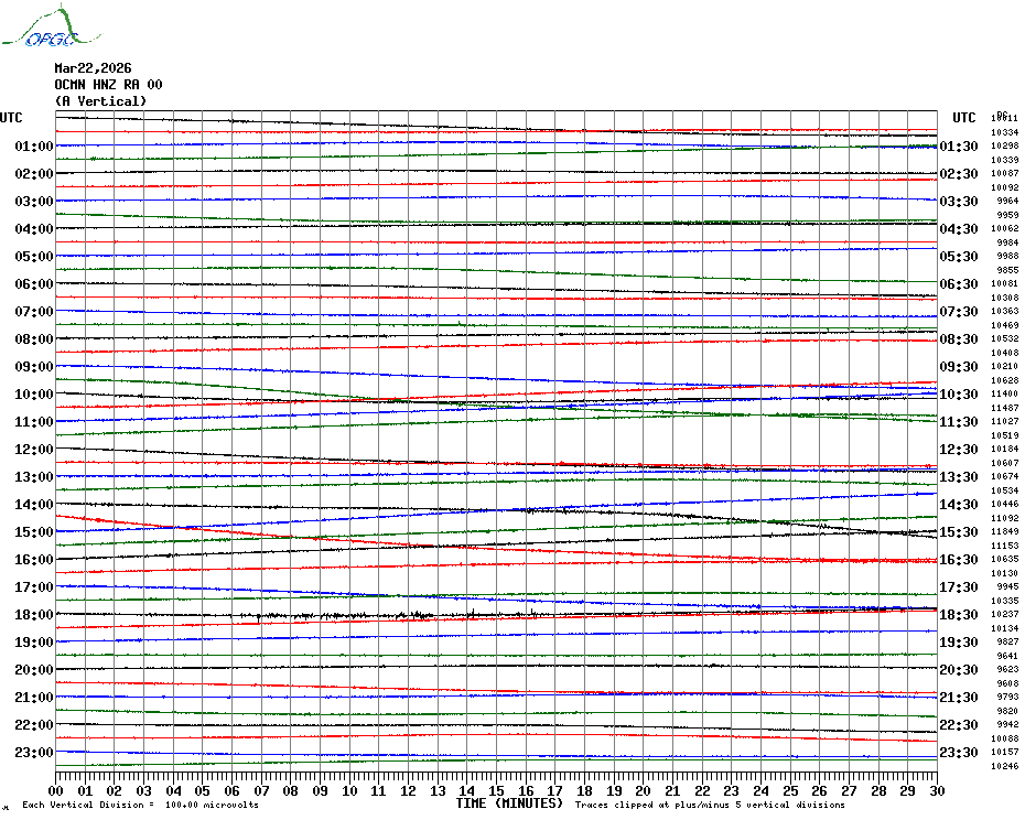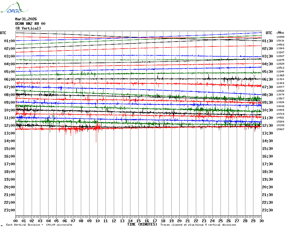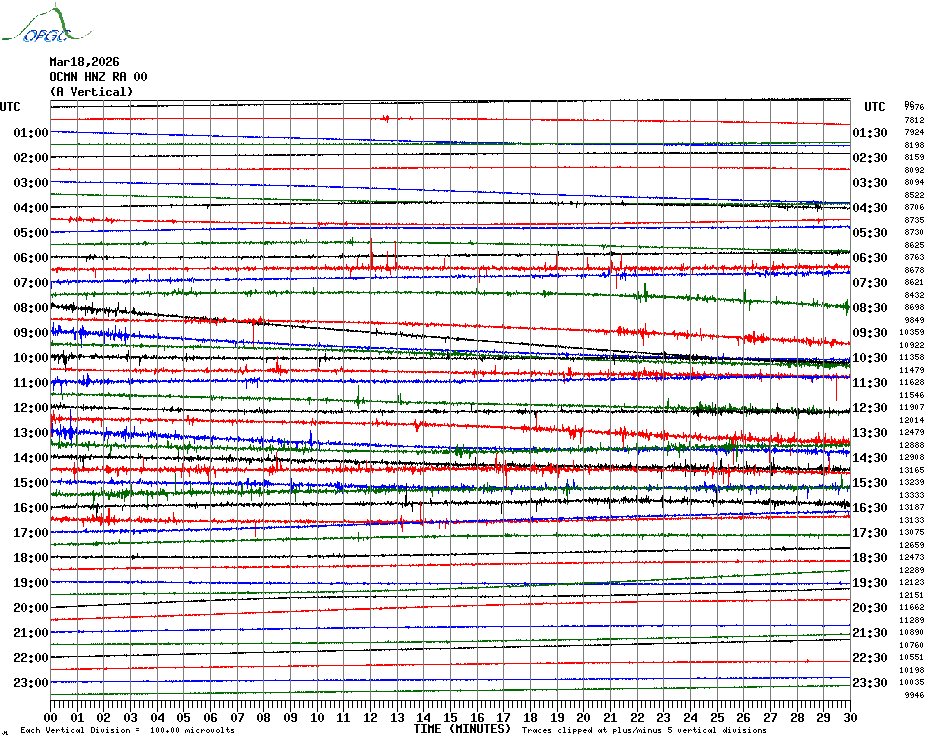 Sismogrammes du Réseau Sismologique Auvergne par fenêtre de 24h
