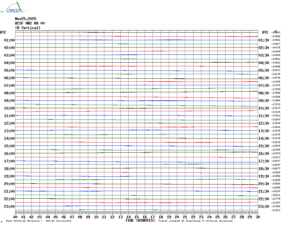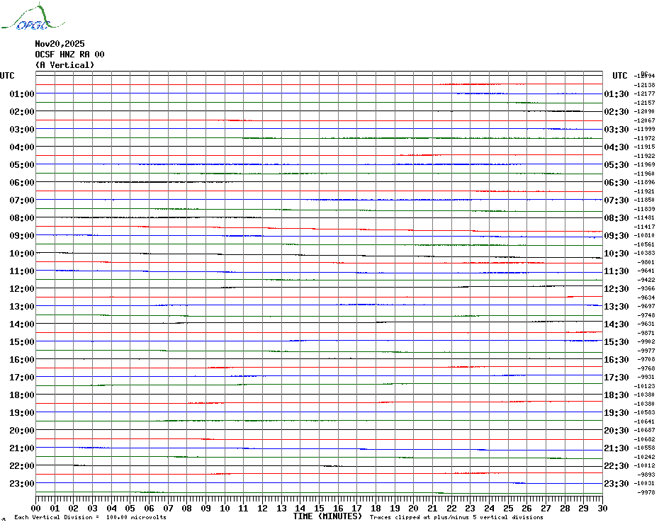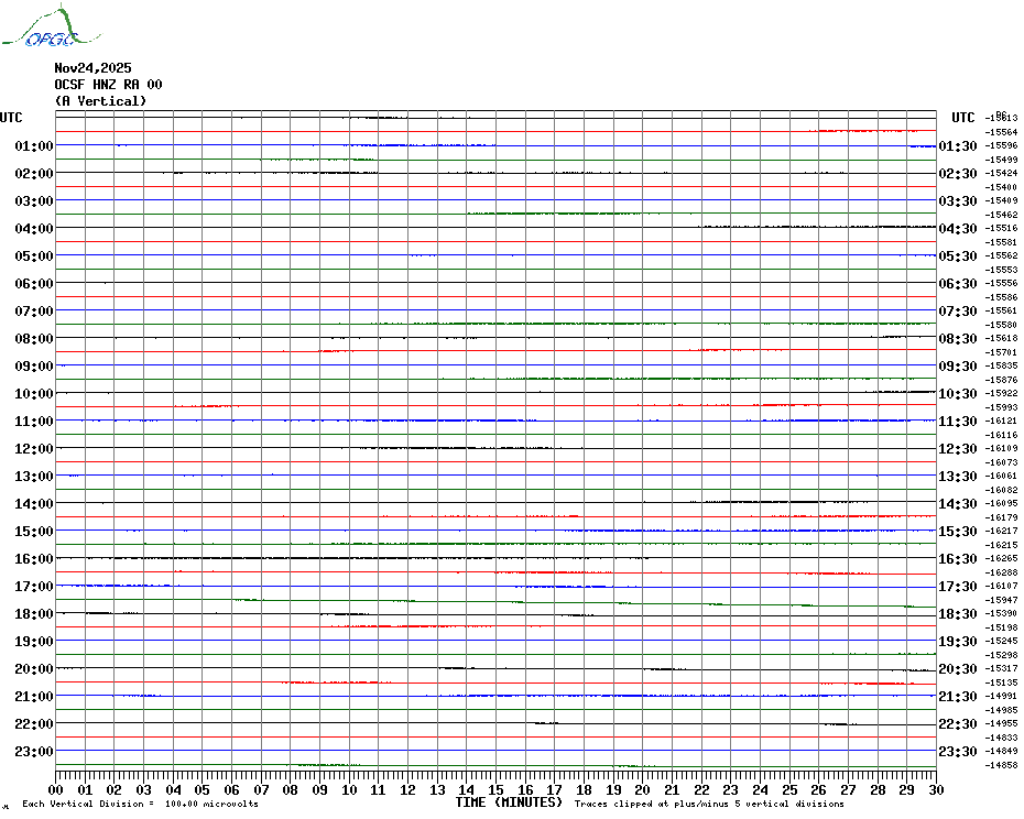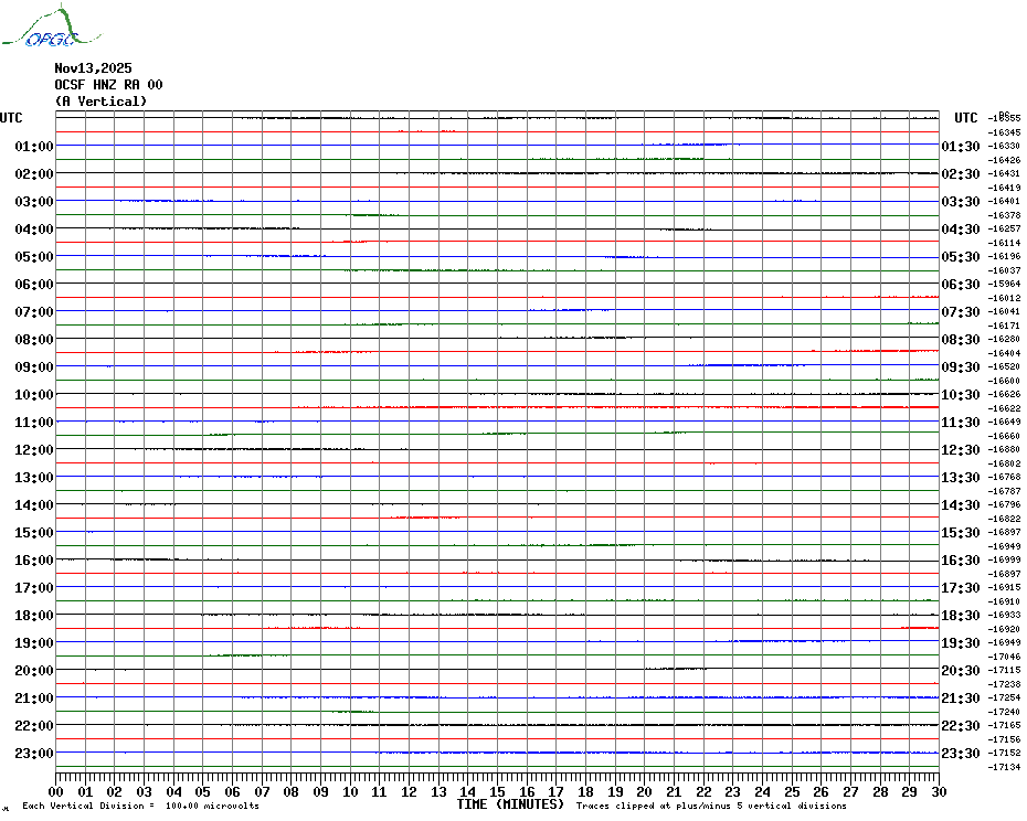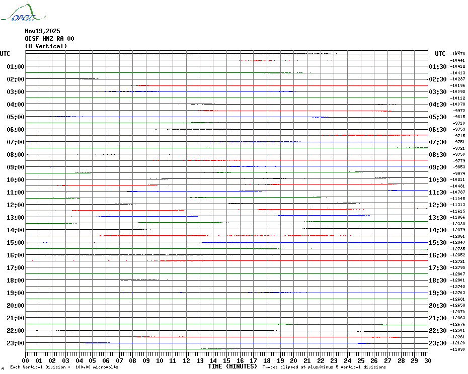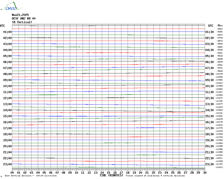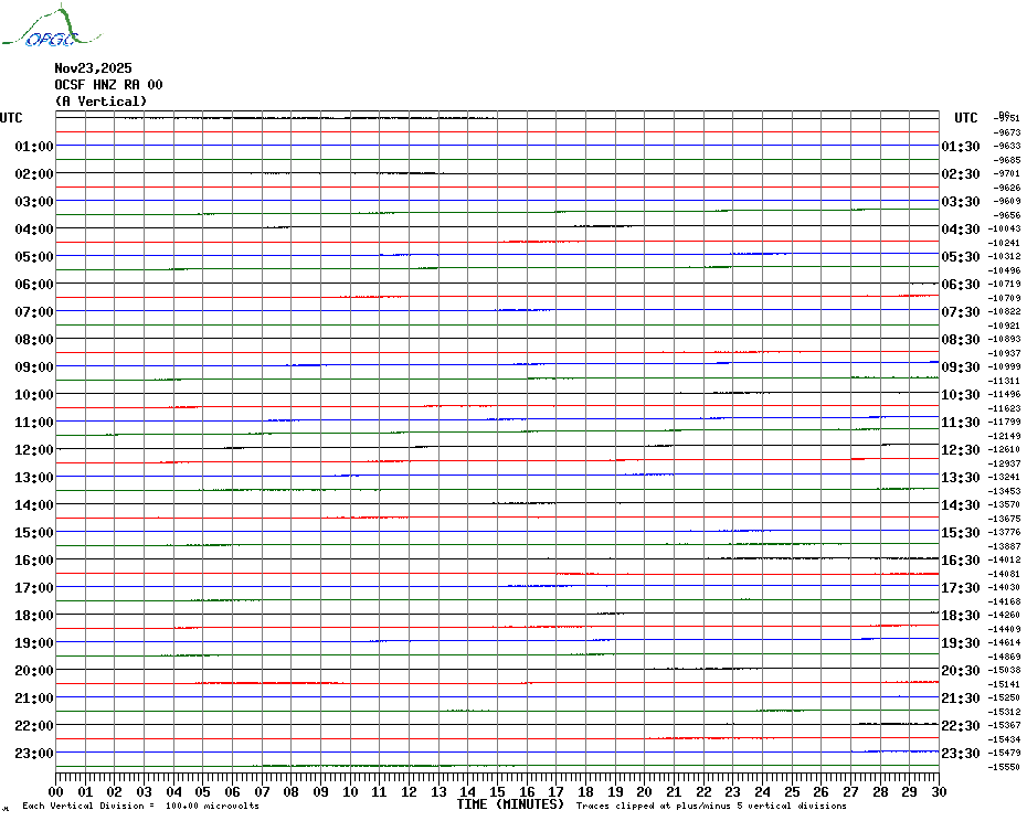 Sismogrammes du Réseau Sismologique Auvergne par fenêtre de 24h