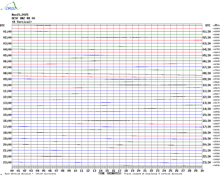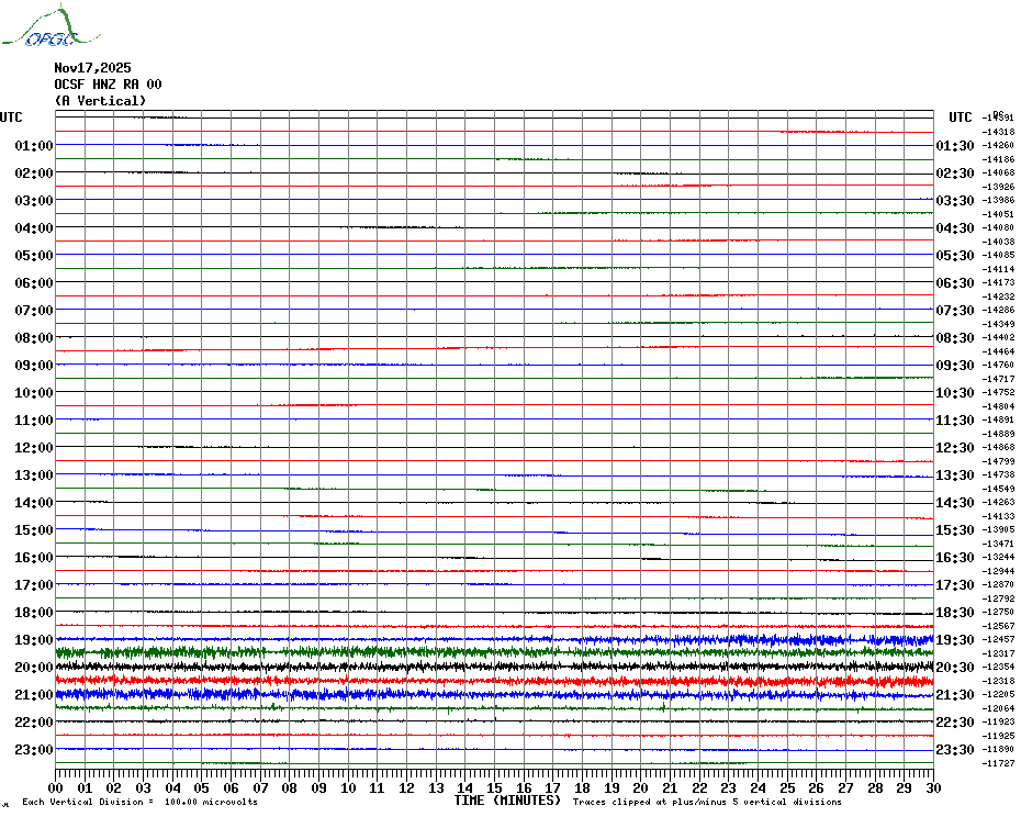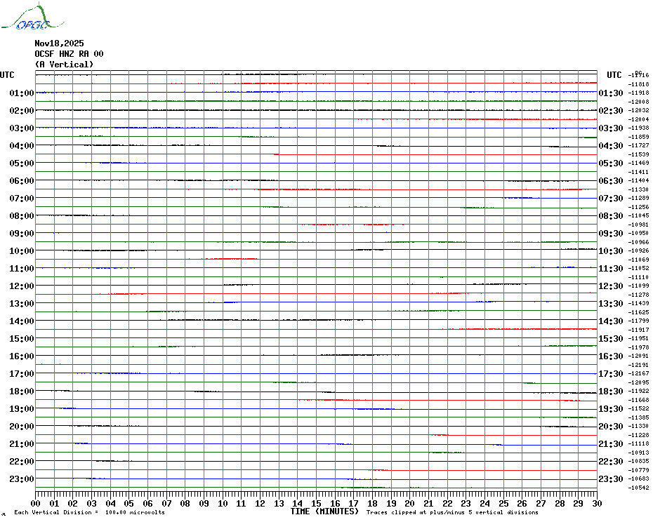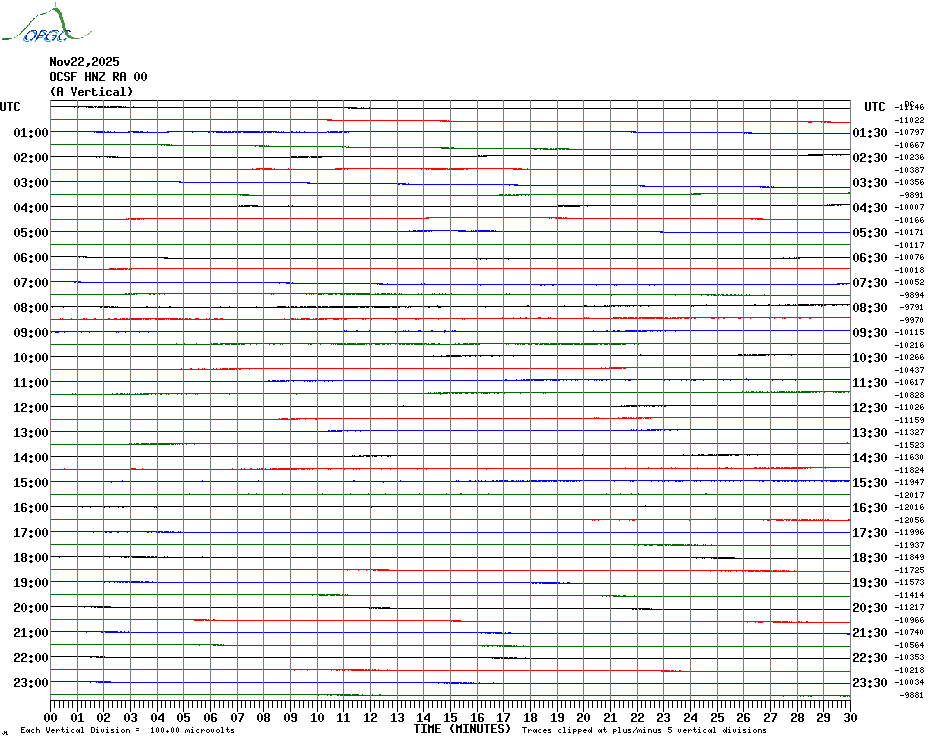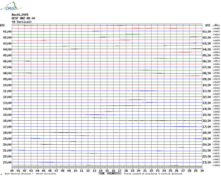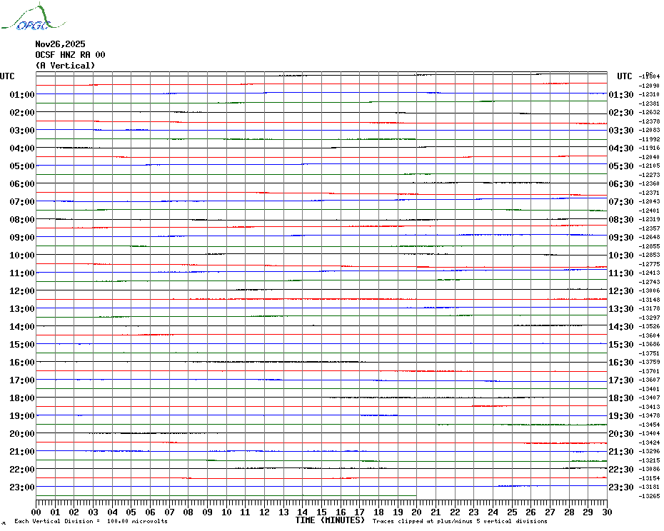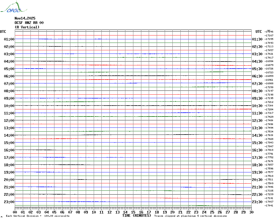 Sismogrammes du Réseau Sismologique Auvergne par fenêtre de 24h