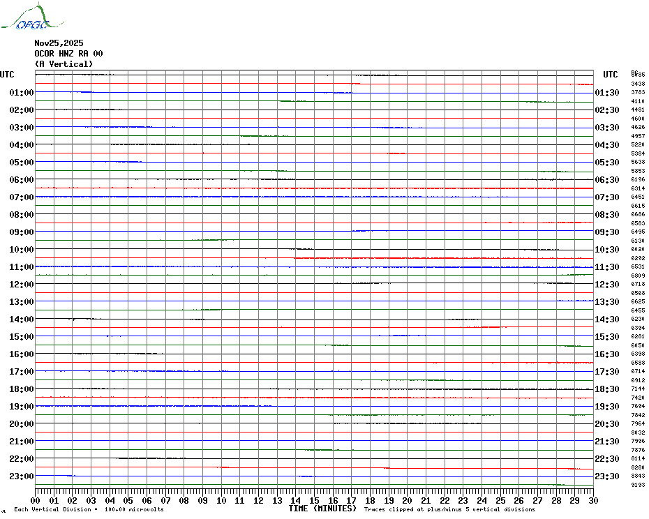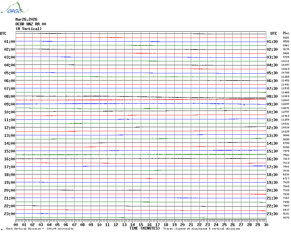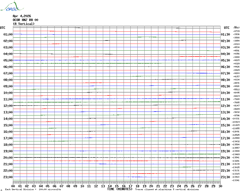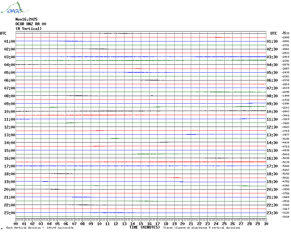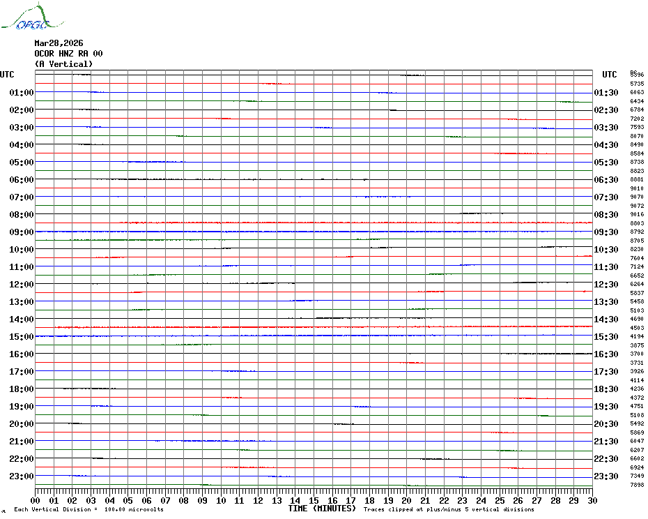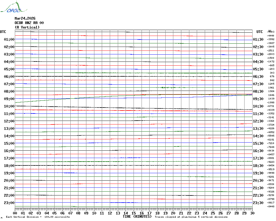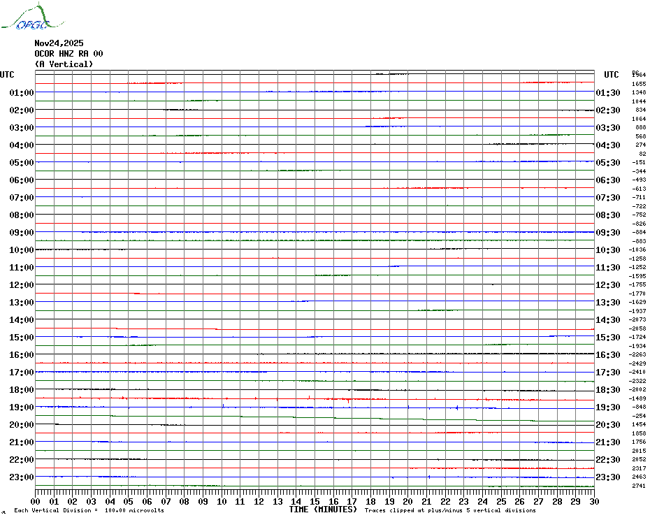 Sismogrammes du Réseau Sismologique Auvergne par fenêtre de 24h