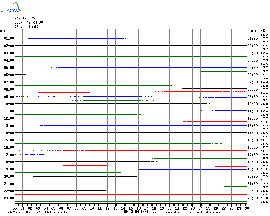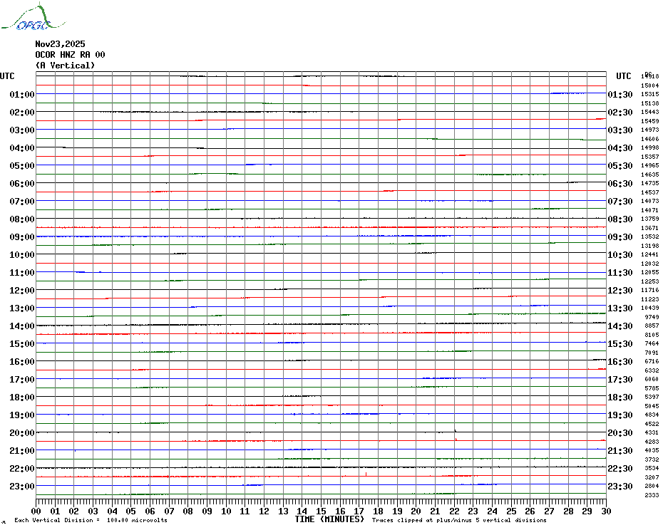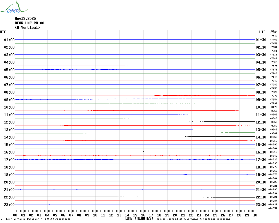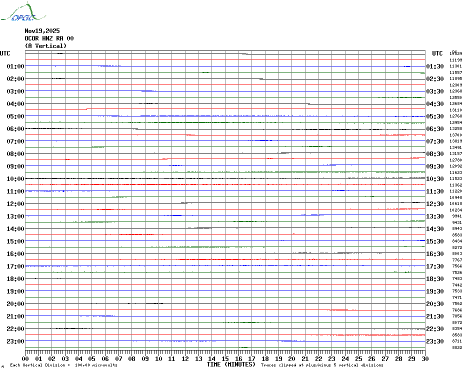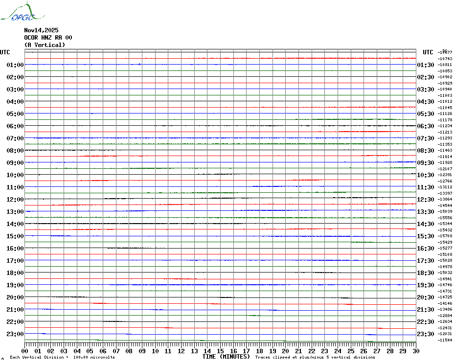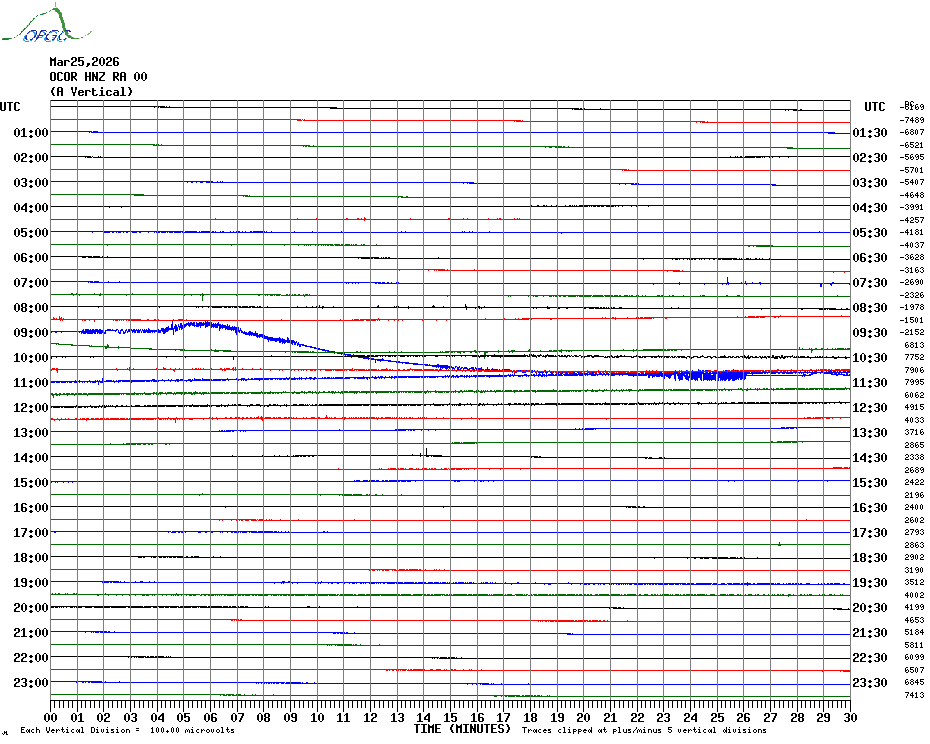 Sismogrammes du Réseau Sismologique Auvergne par fenêtre de 24h