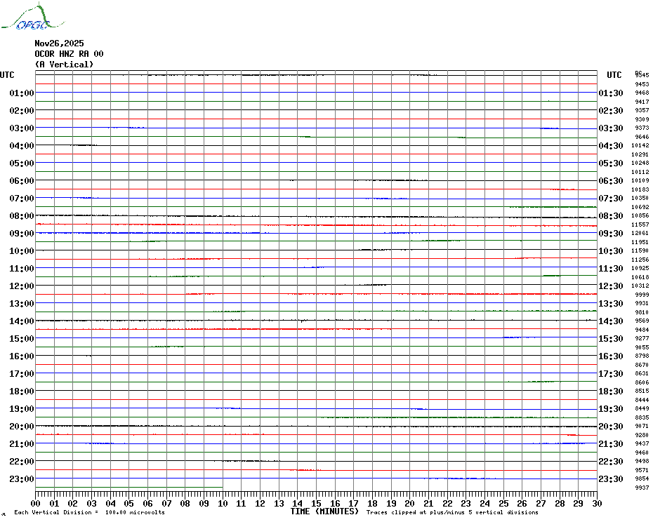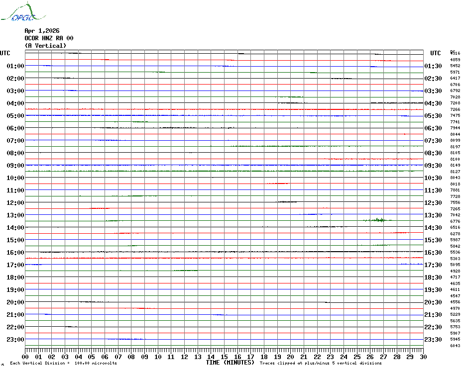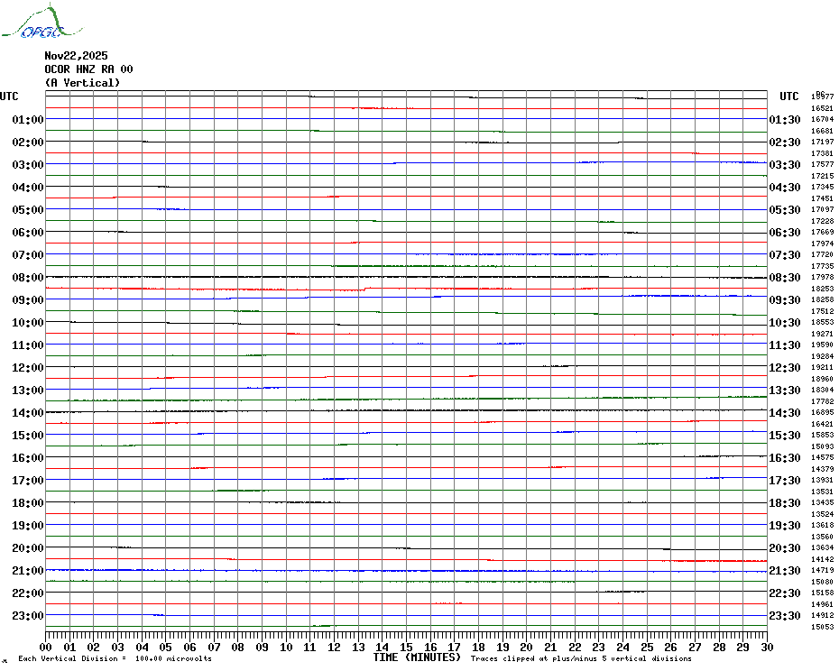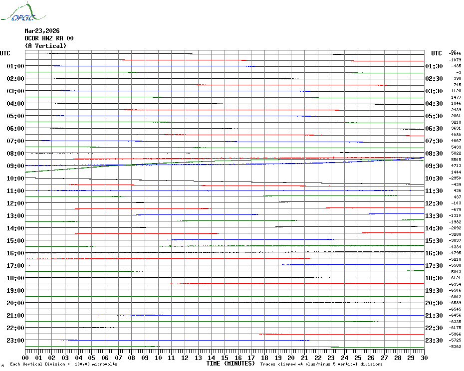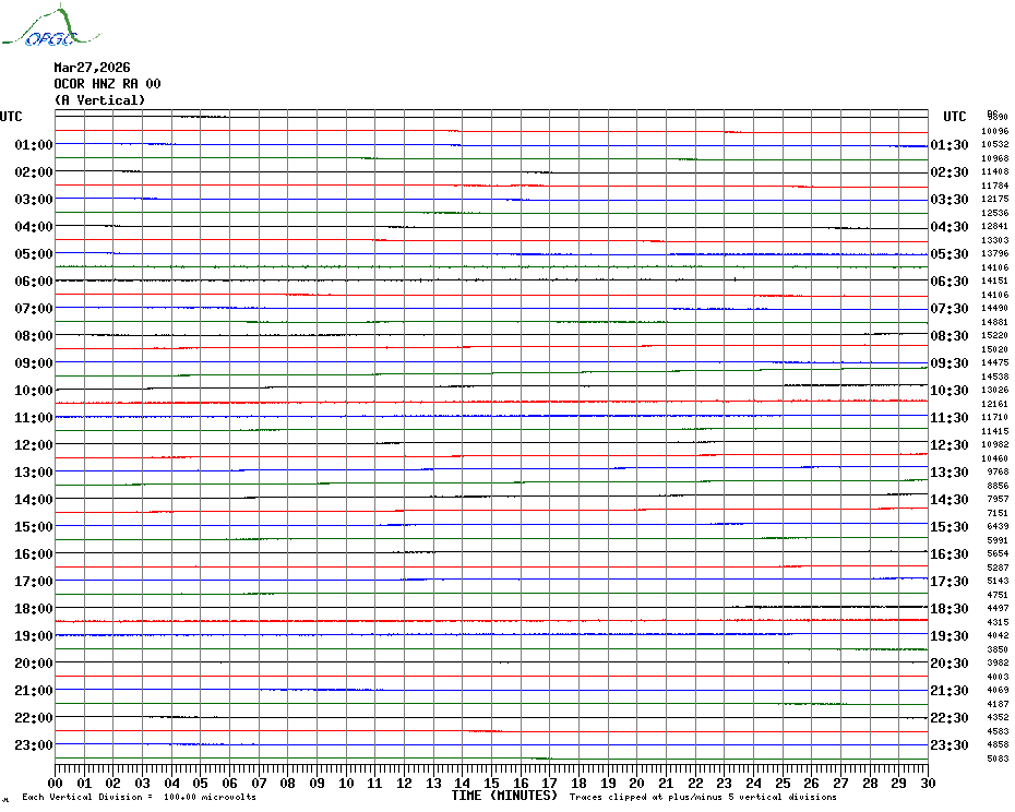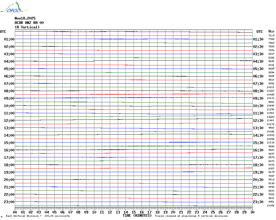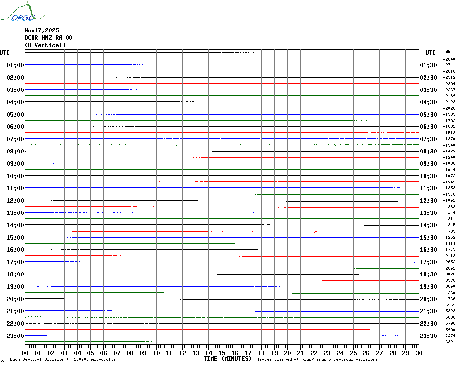 Sismogrammes du Réseau Sismologique Auvergne par fenêtre de 24h