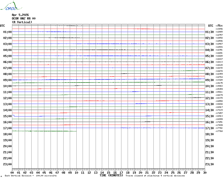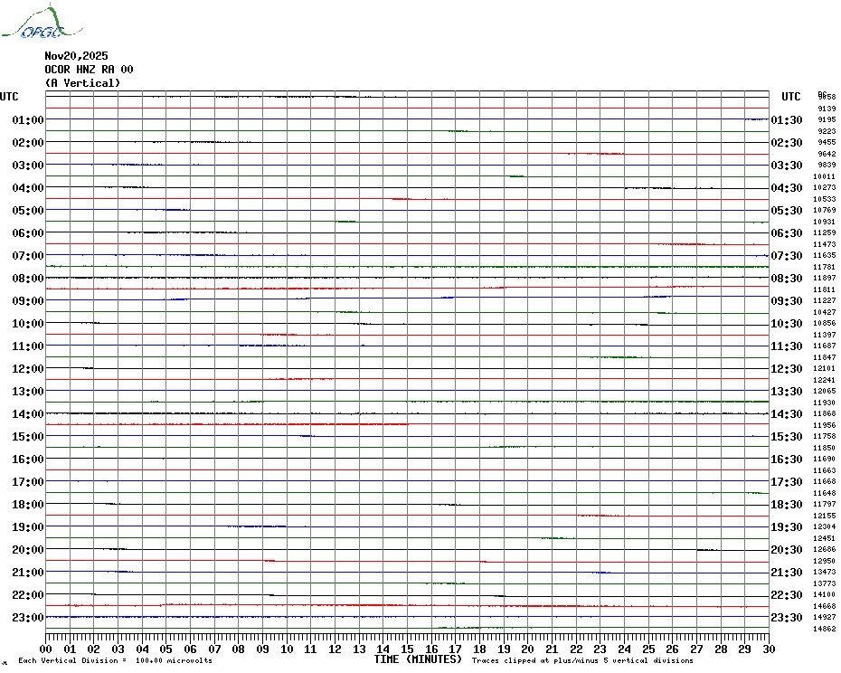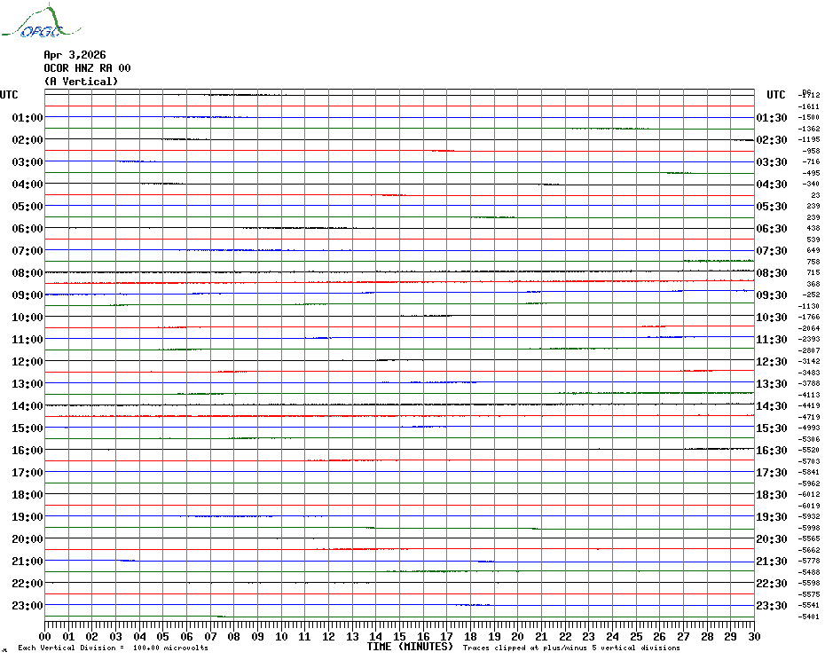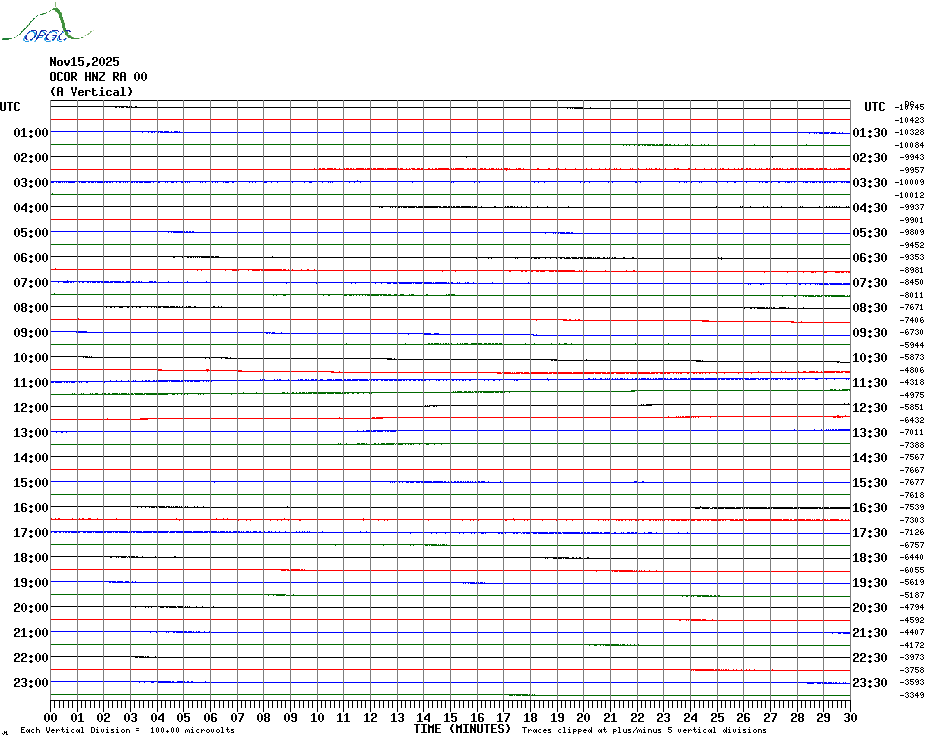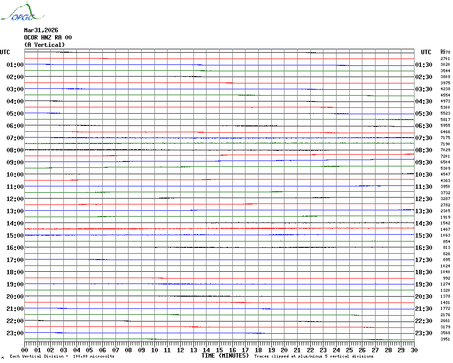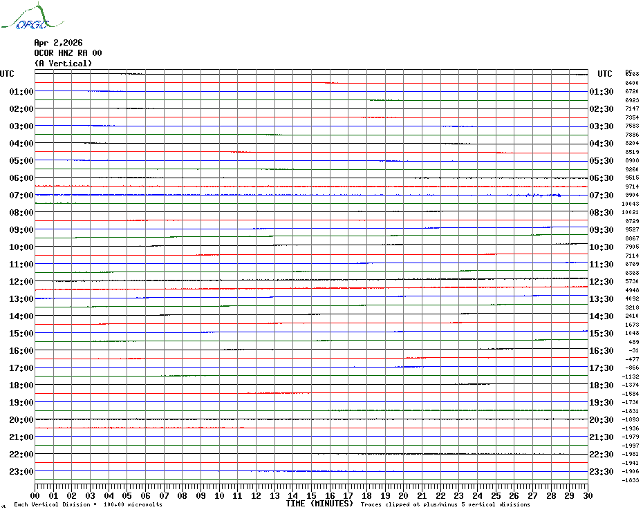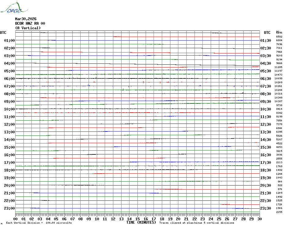Sismogrammes du Réseau Sismologique Auvergne par fenêtre de 24h