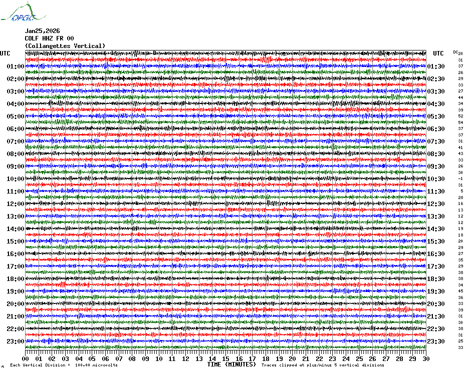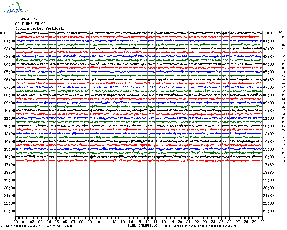 Sismogrammes du Réseau Sismologique Auvergne par fenêtre de 24h
