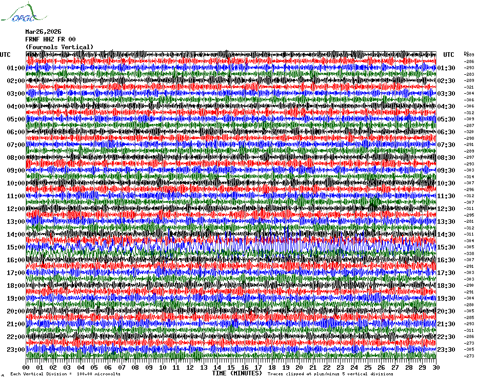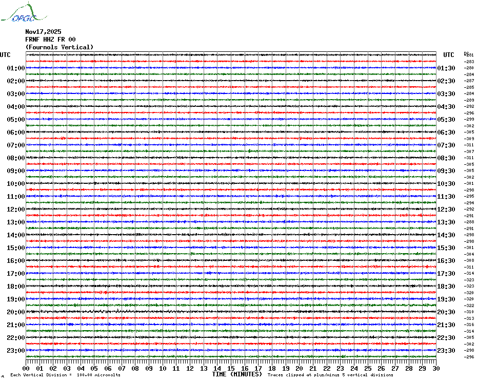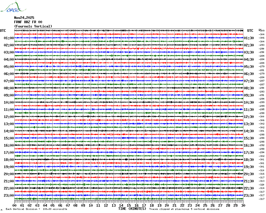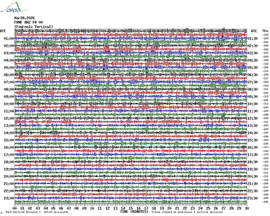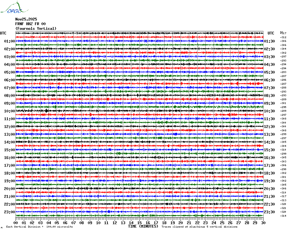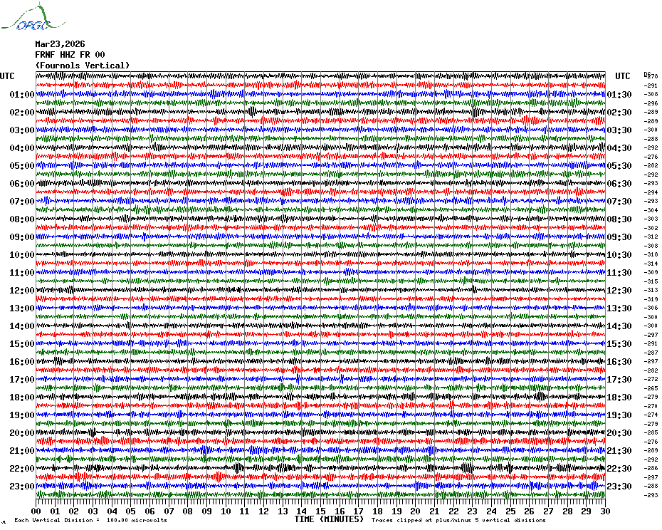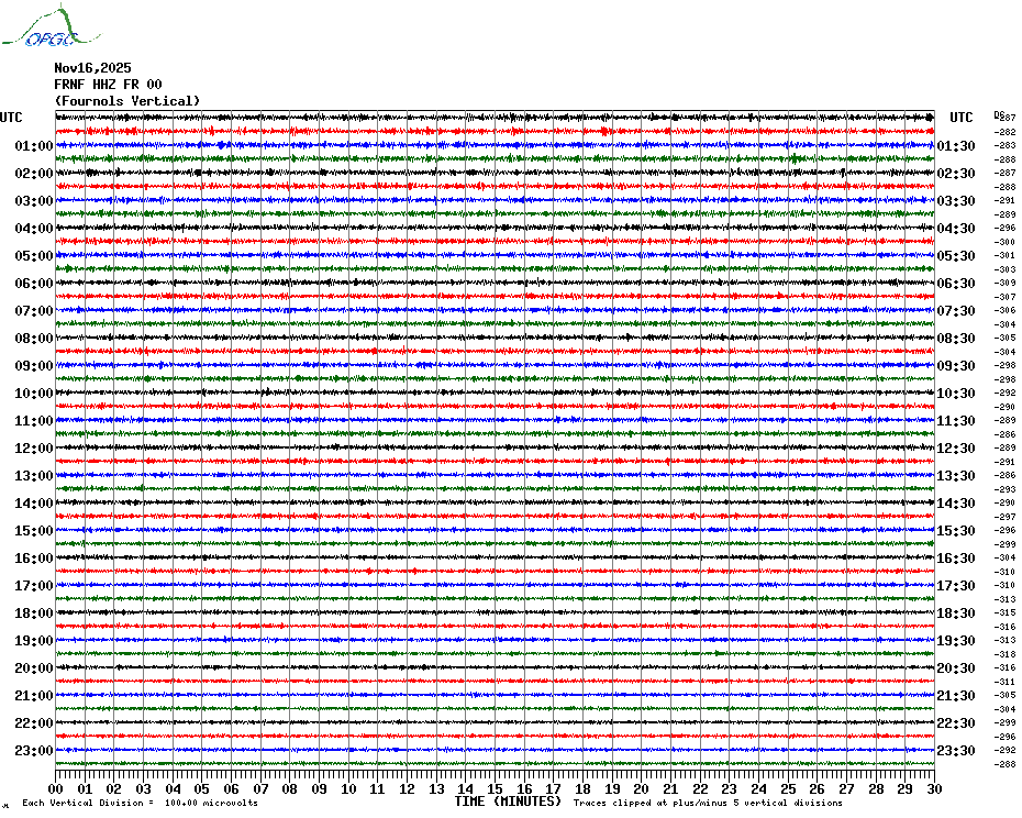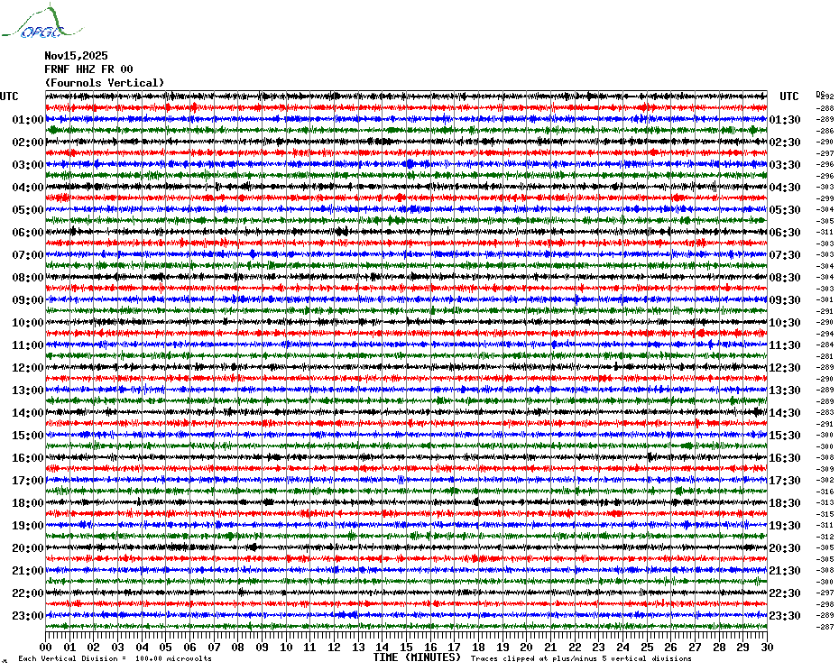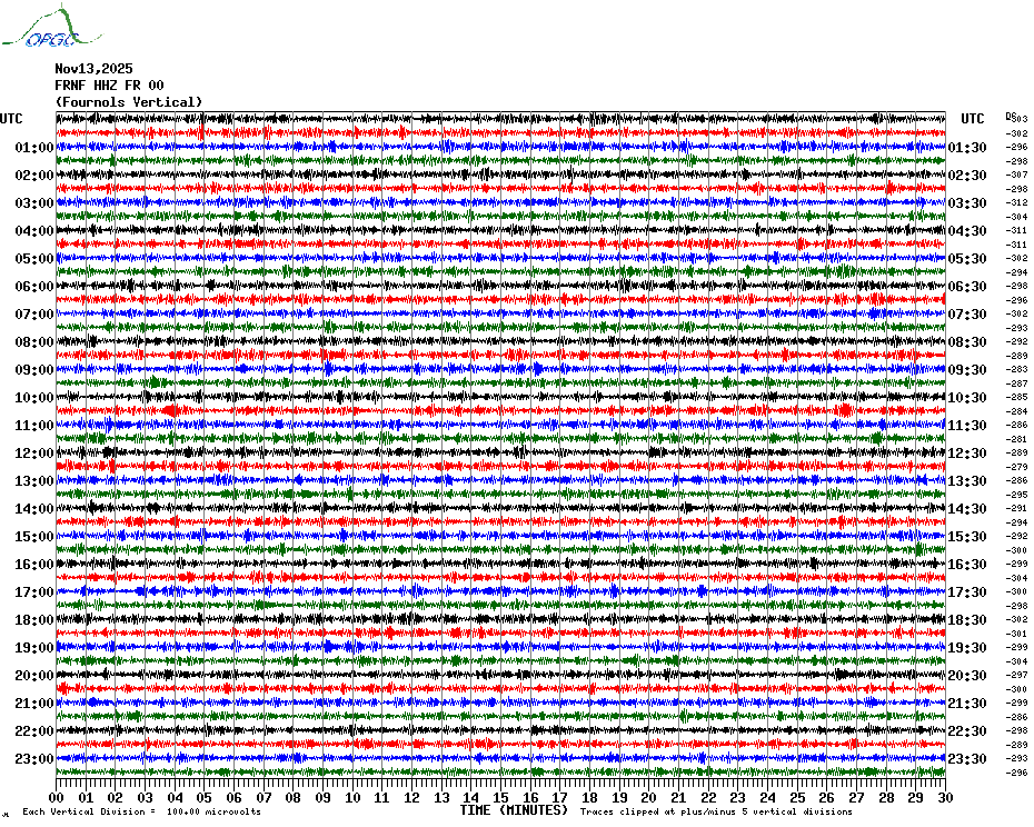 Sismogrammes du Réseau Sismologique Auvergne par fenêtre de 24h