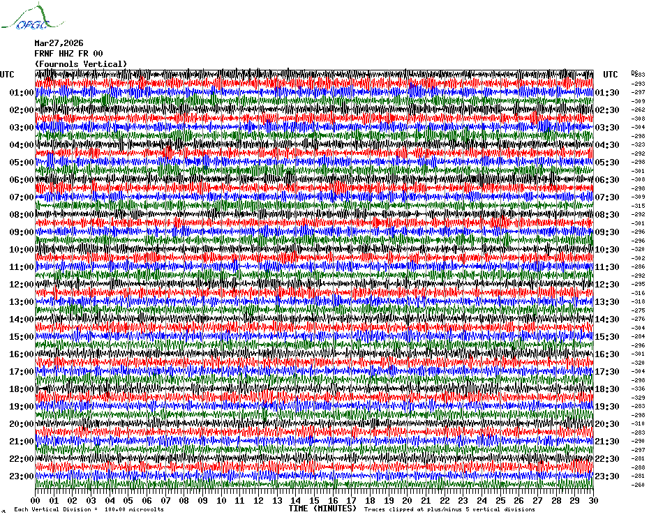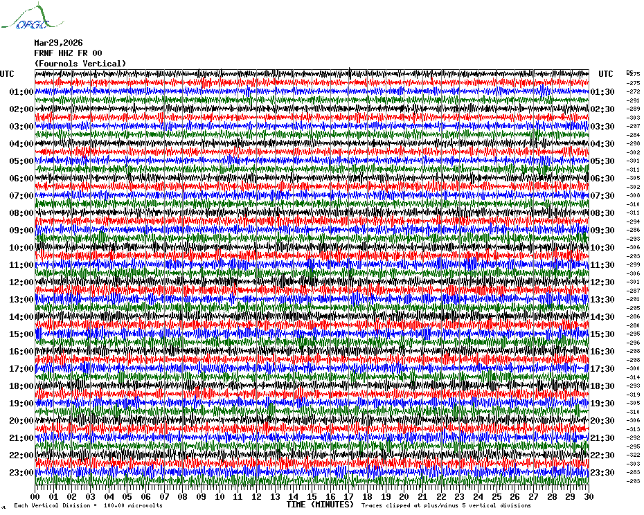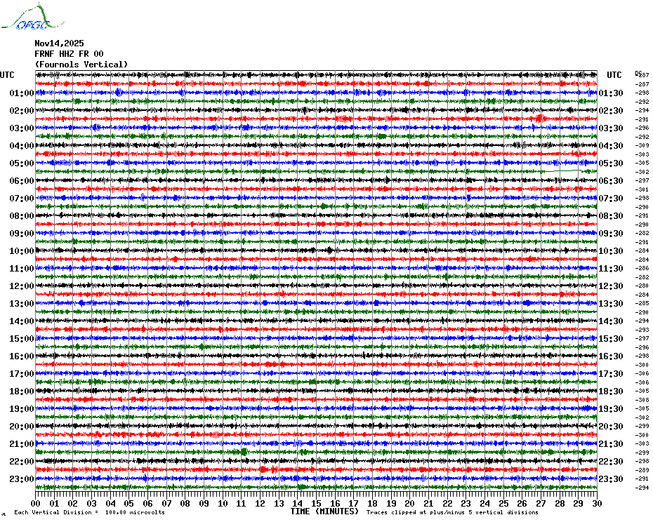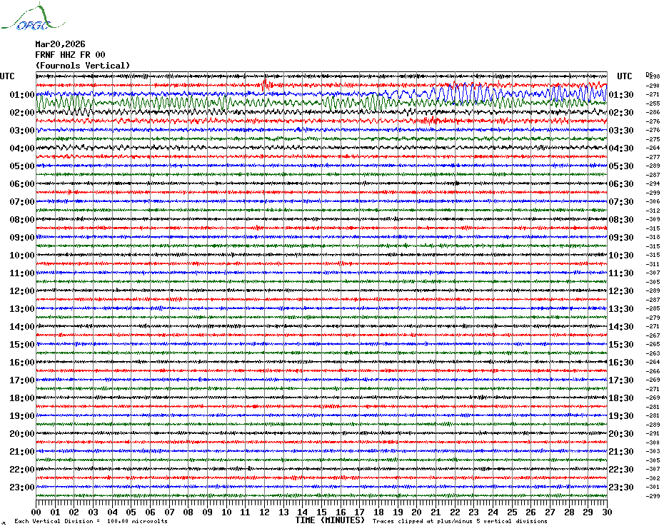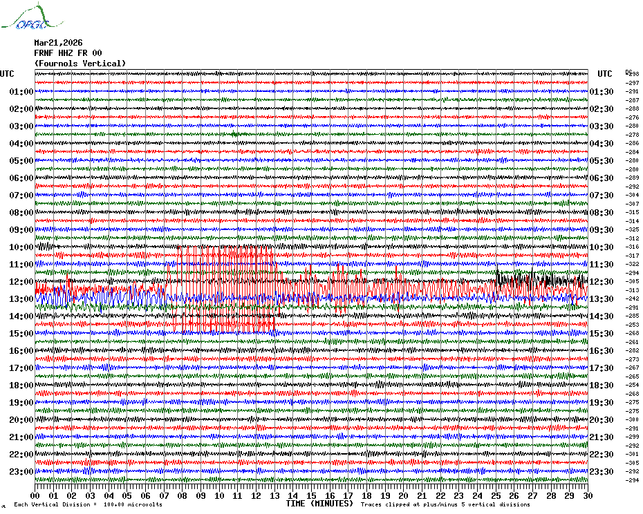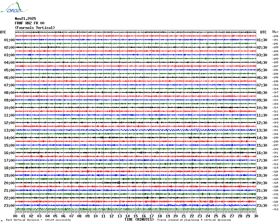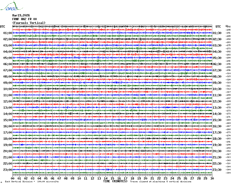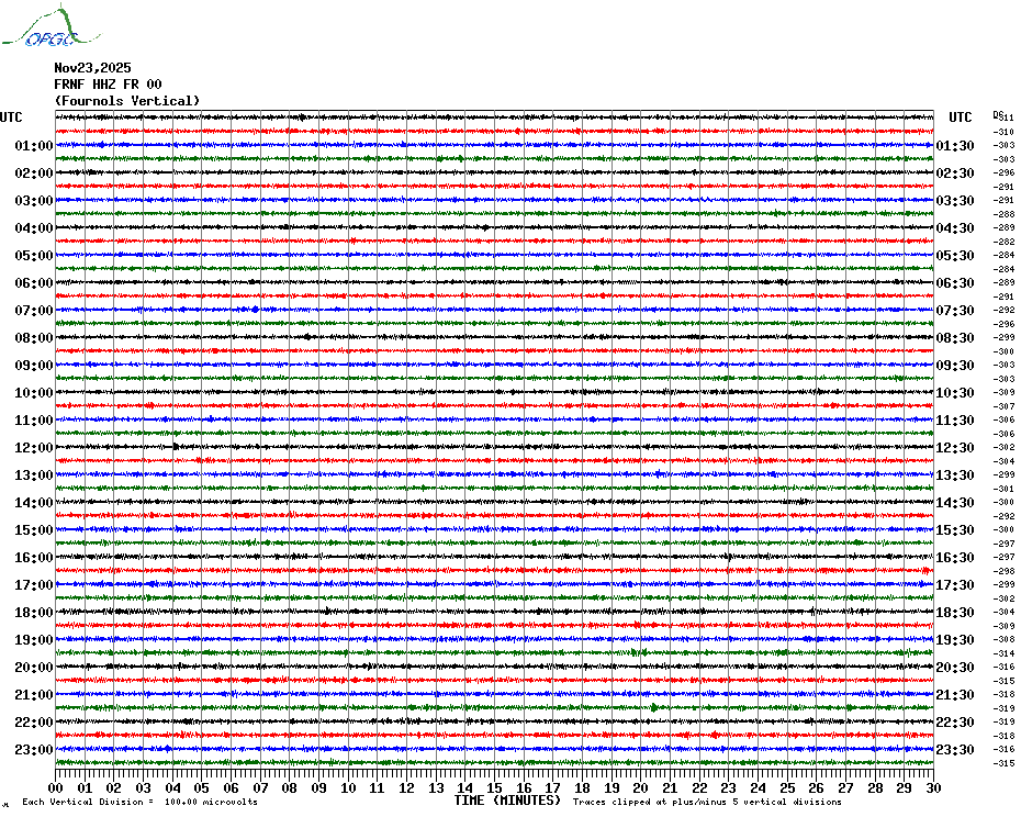 Sismogrammes du Réseau Sismologique Auvergne par fenêtre de 24h