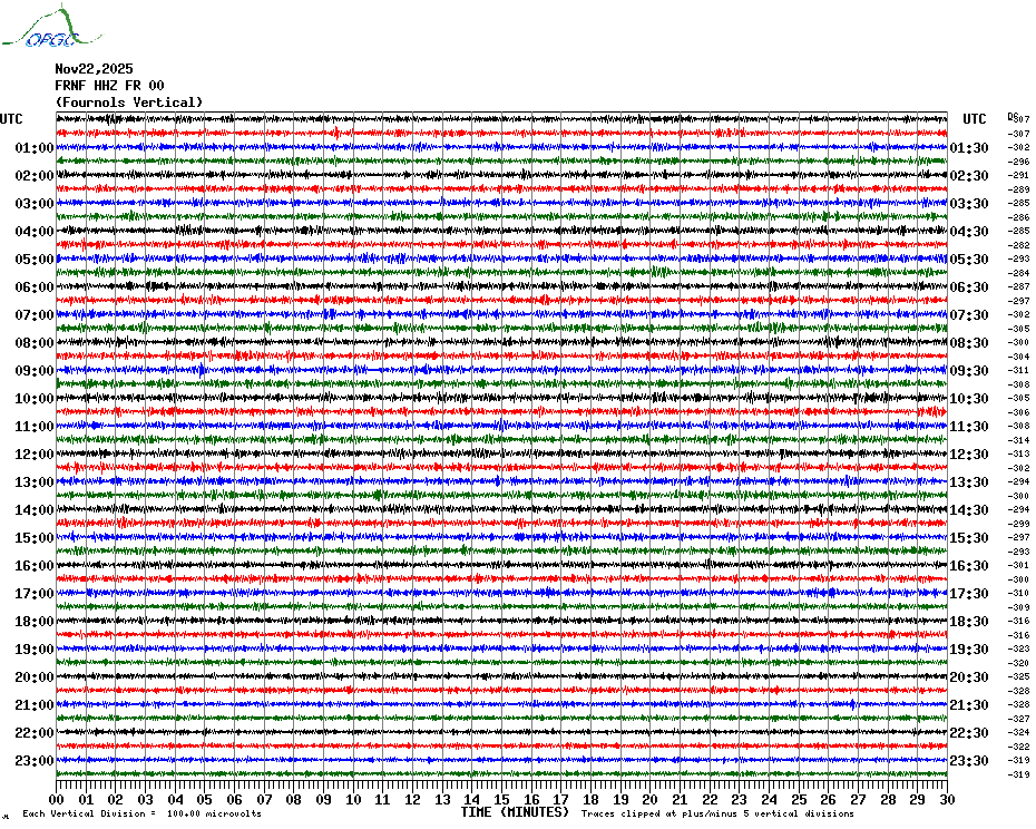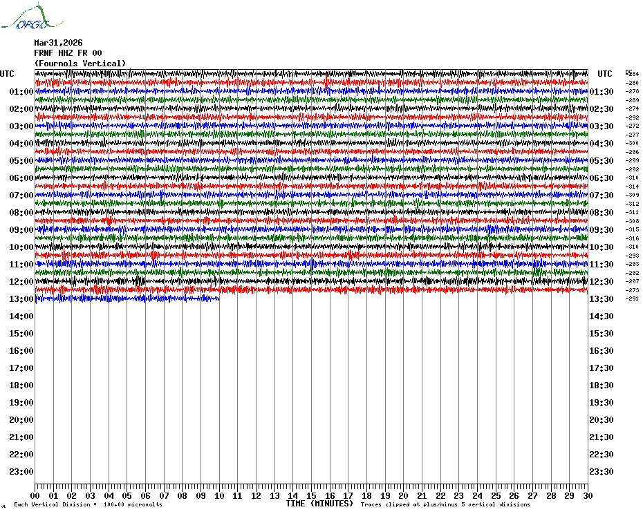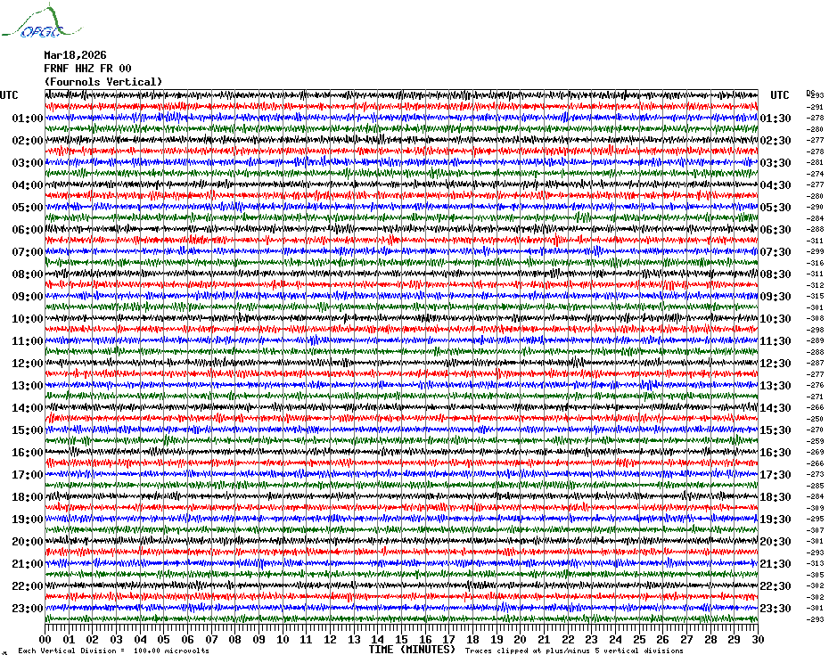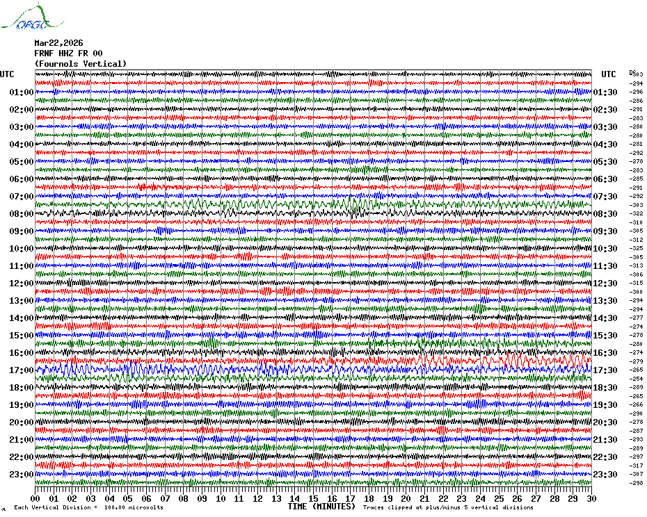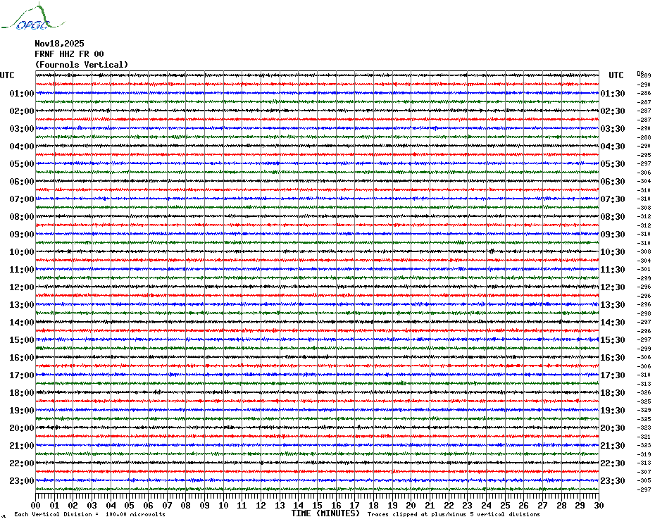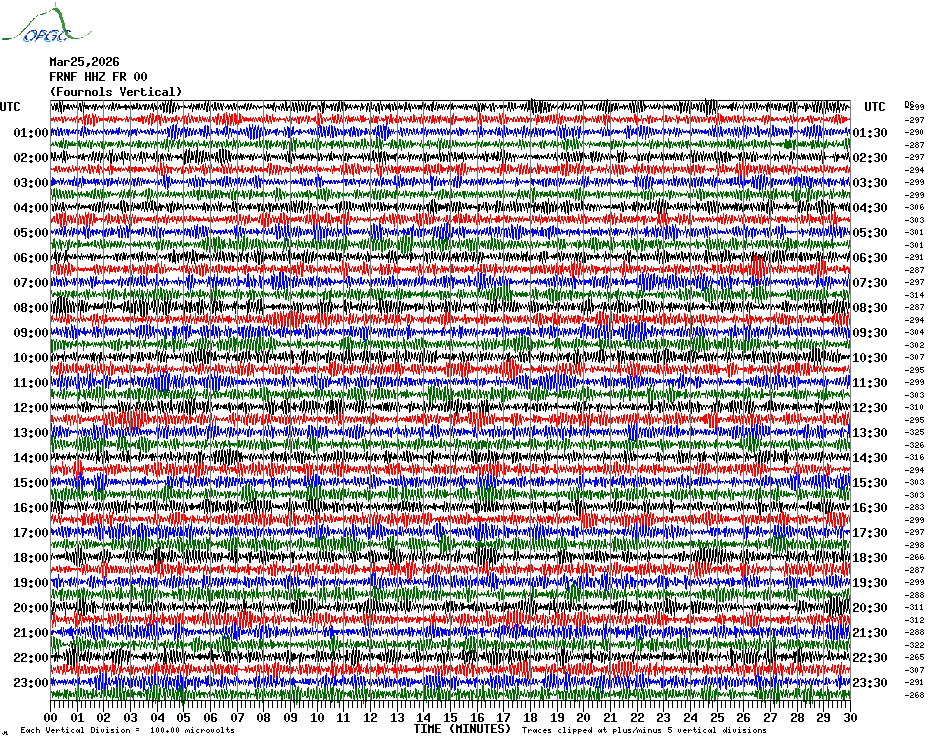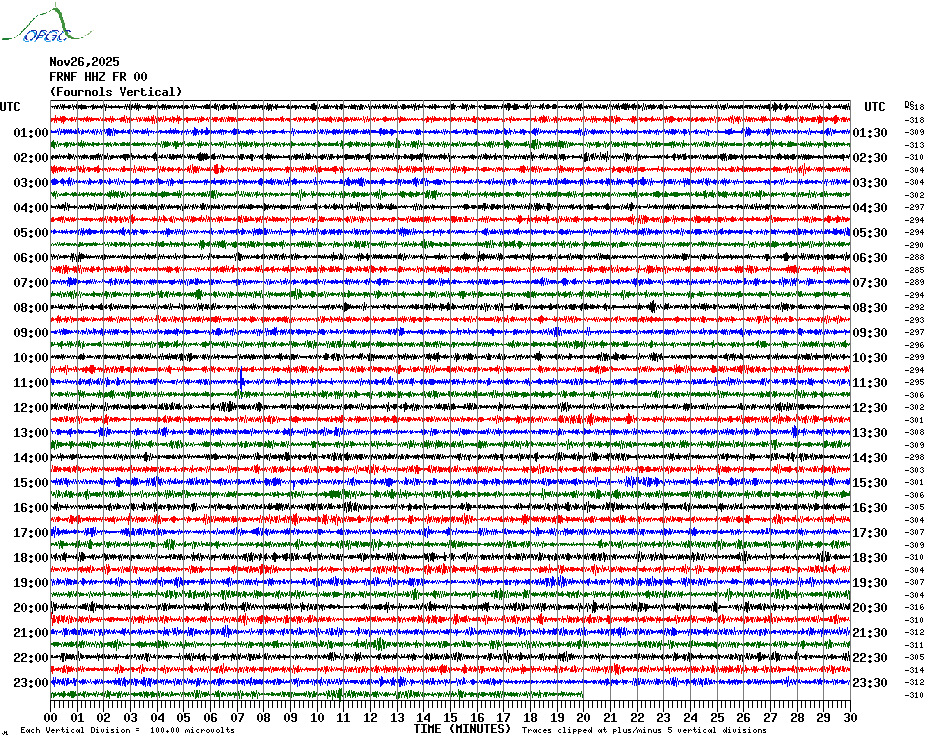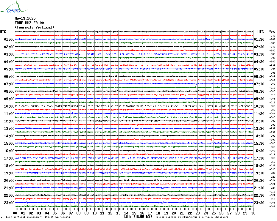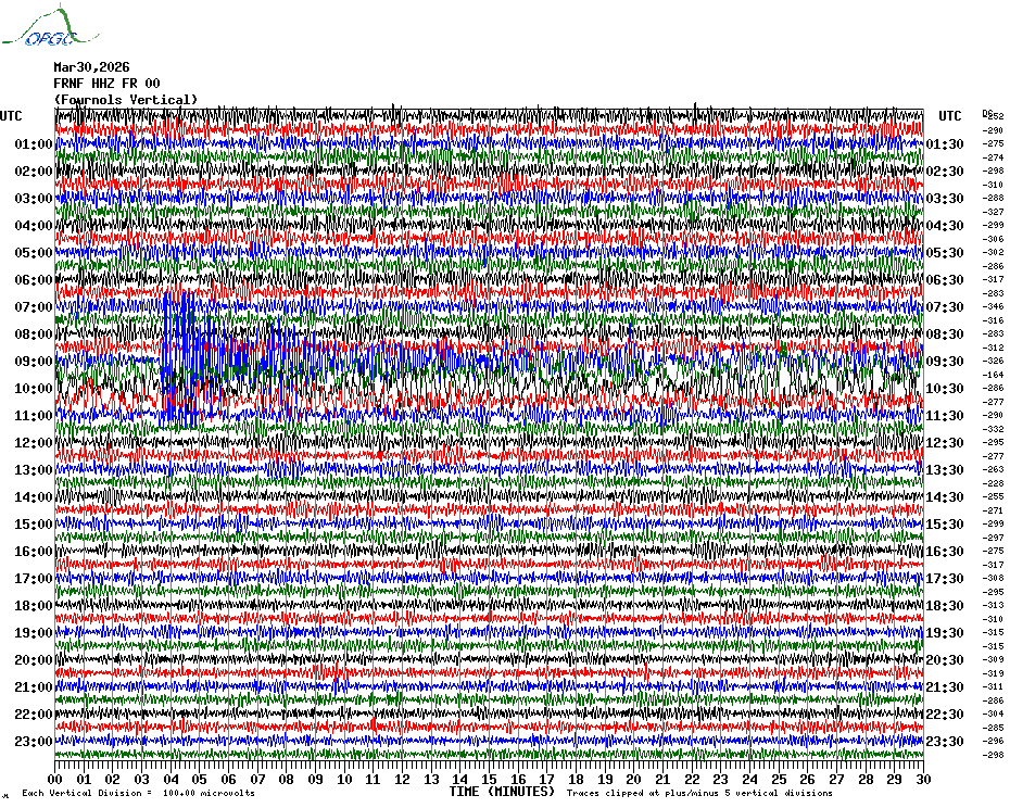 Sismogrammes du Réseau Sismologique Auvergne par fenêtre de 24h