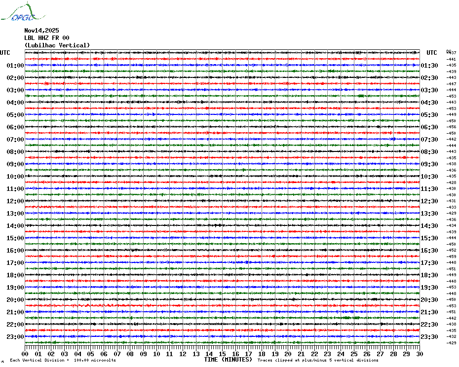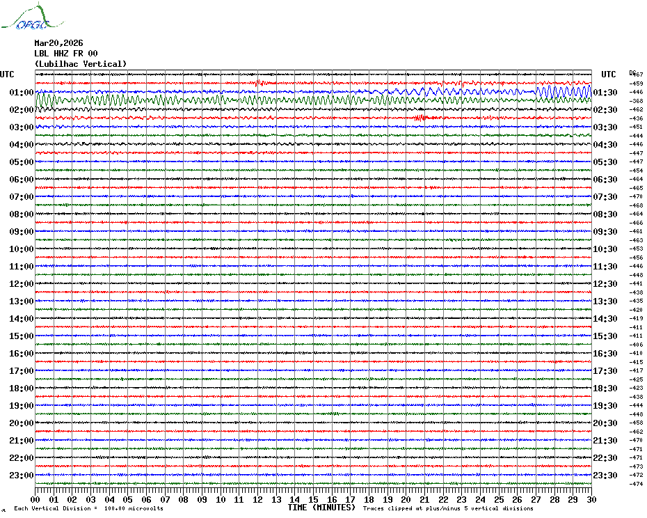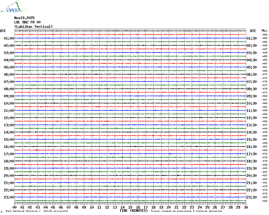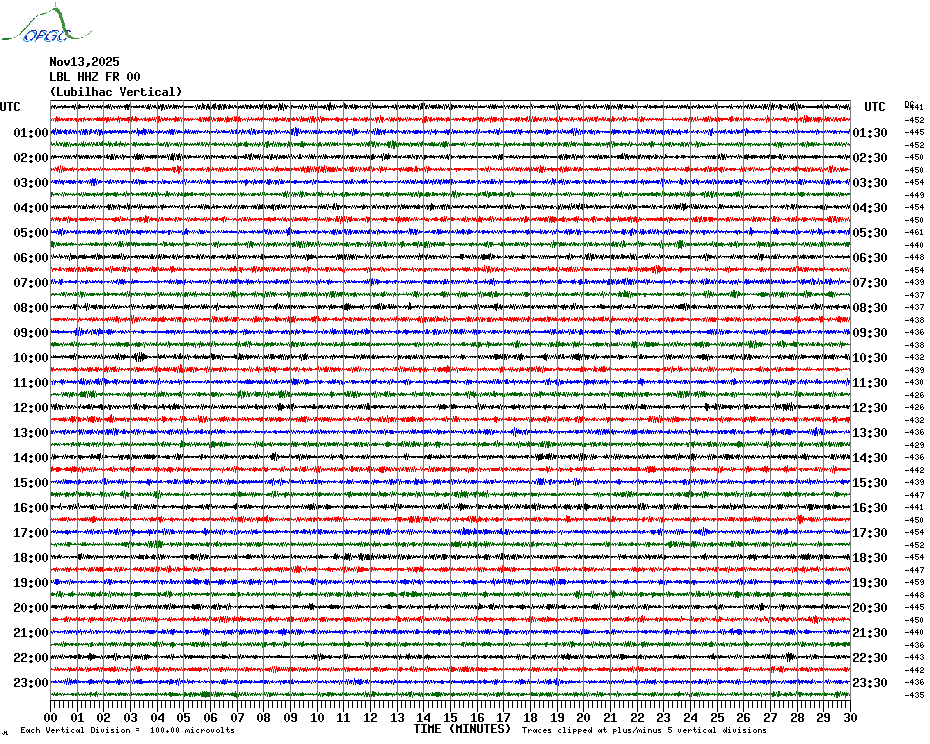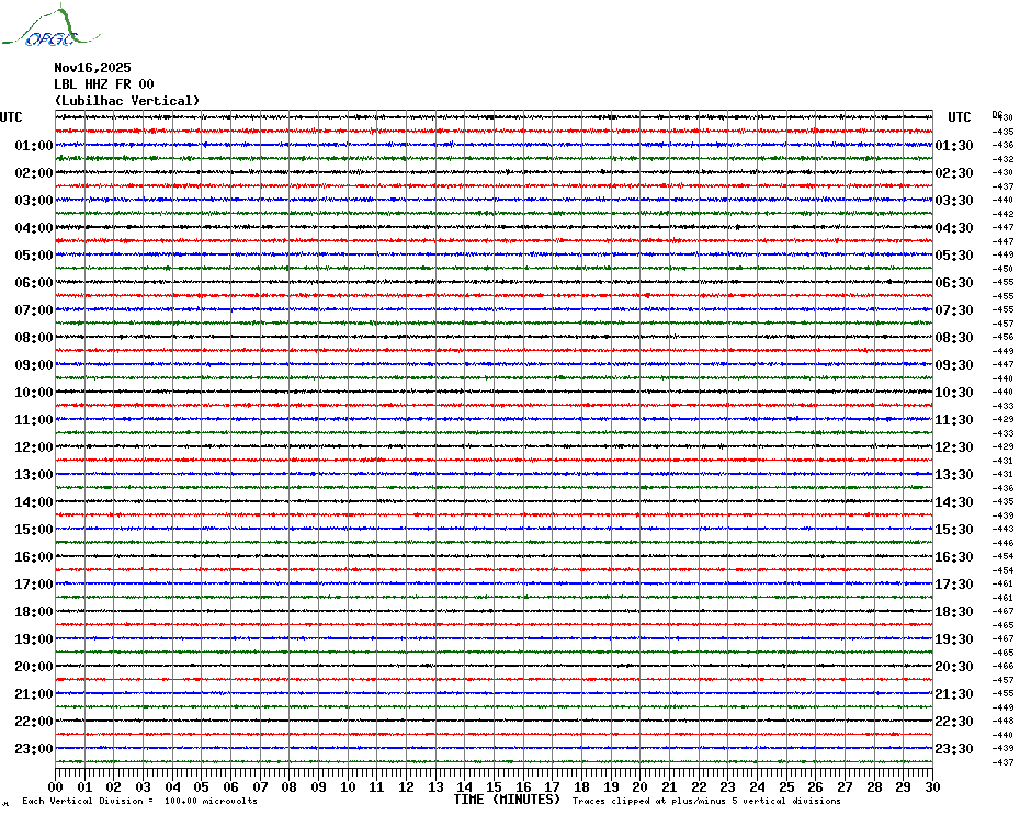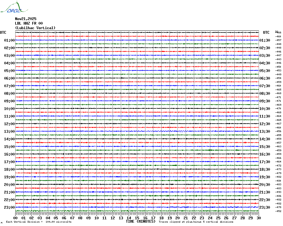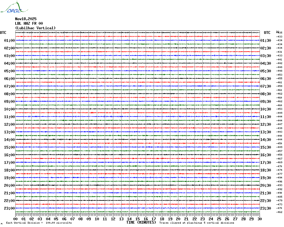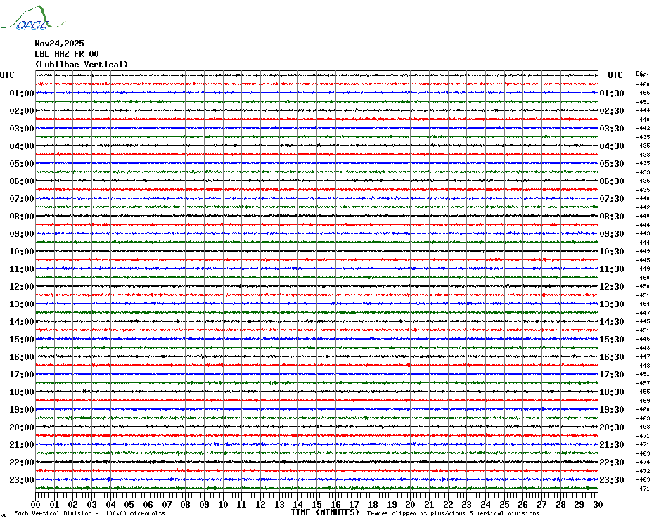 Sismogrammes du Réseau Sismologique Auvergne par fenêtre de 24h
