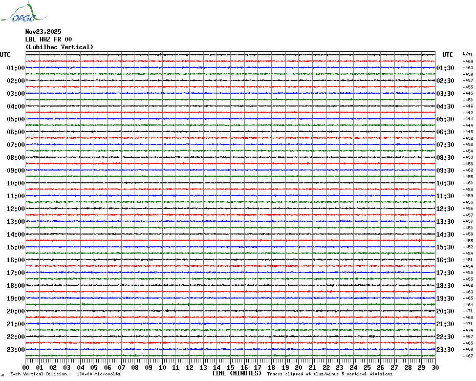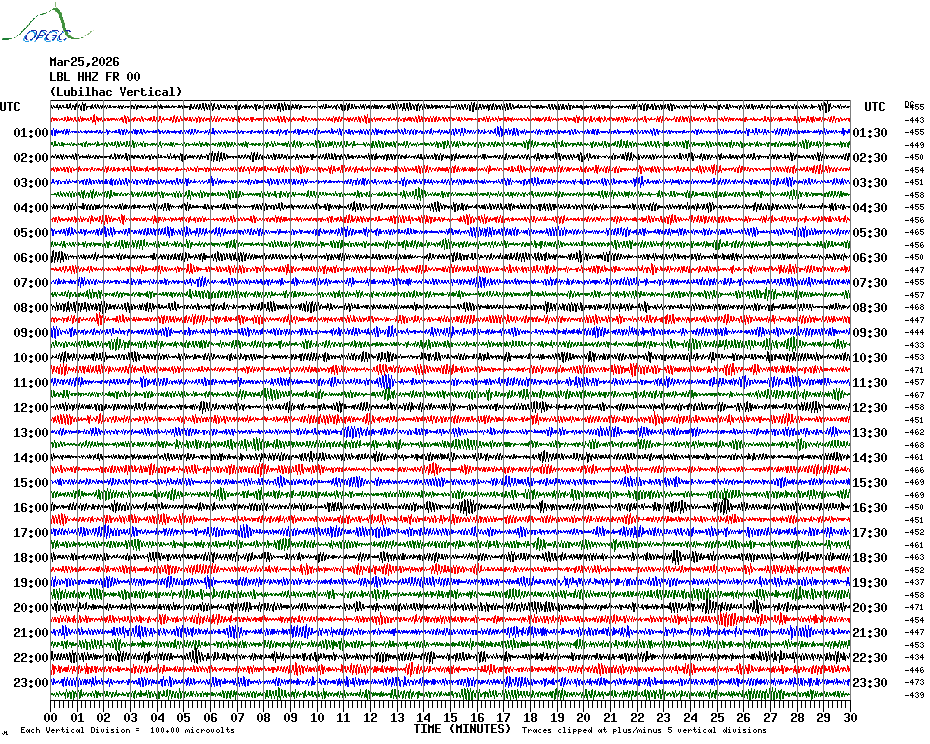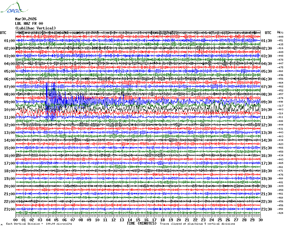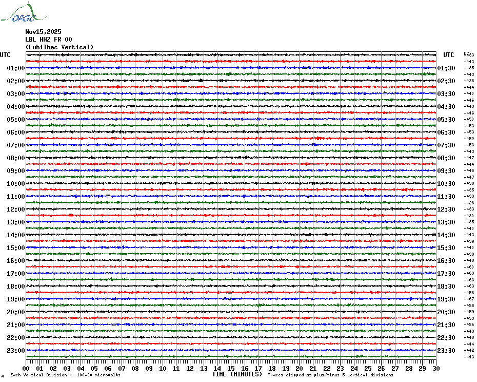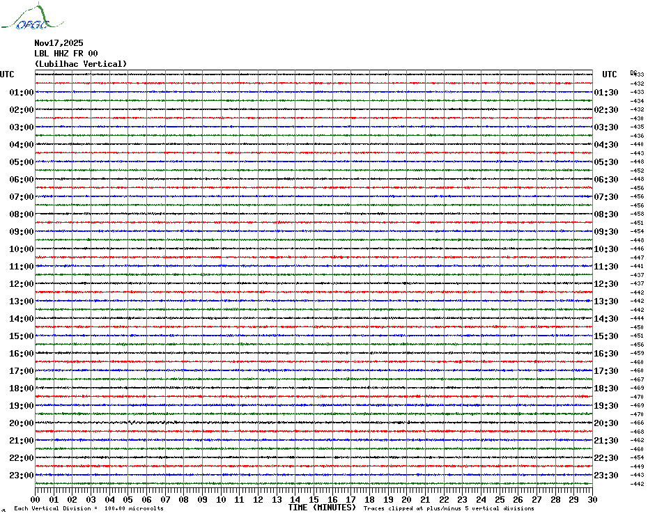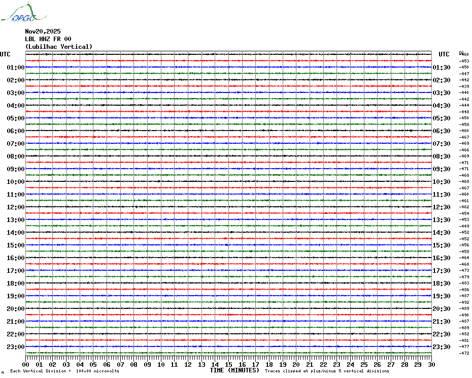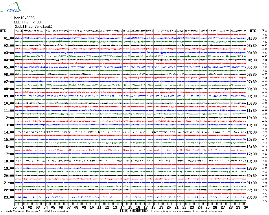 Sismogrammes du Réseau Sismologique Auvergne par fenêtre de 24h