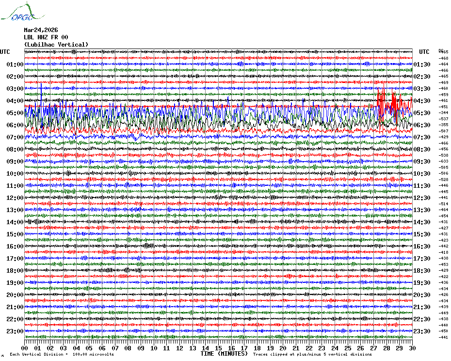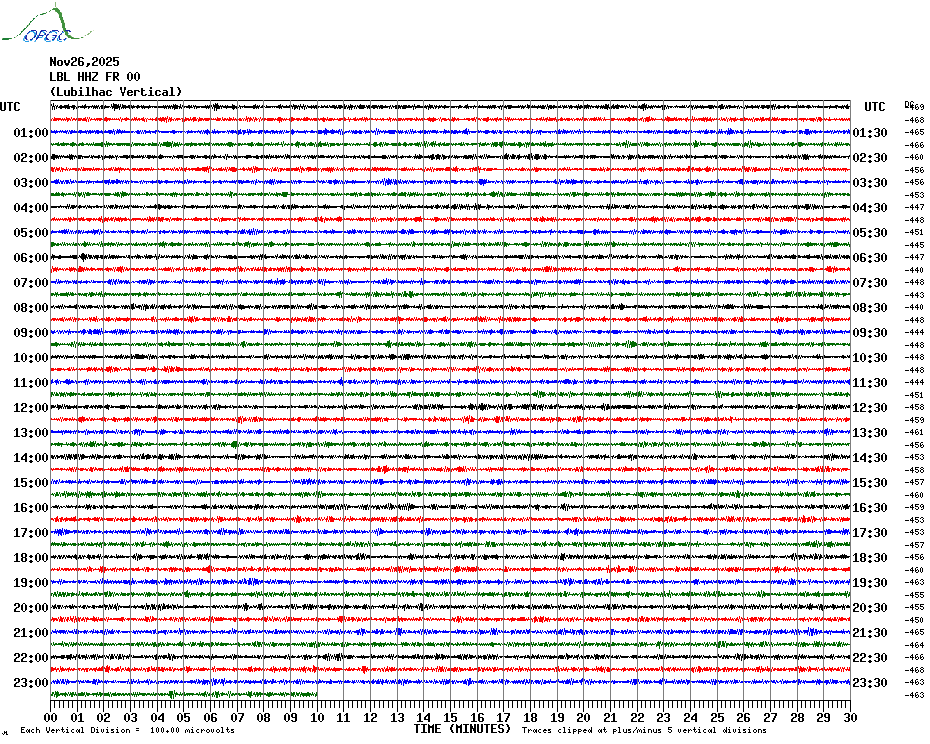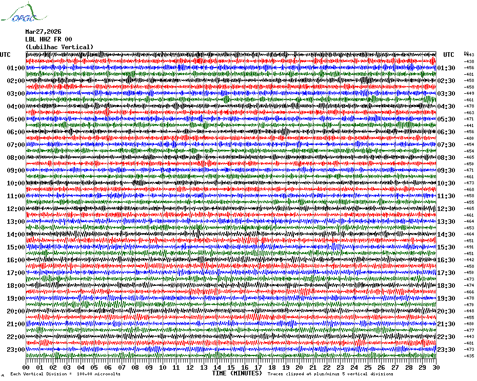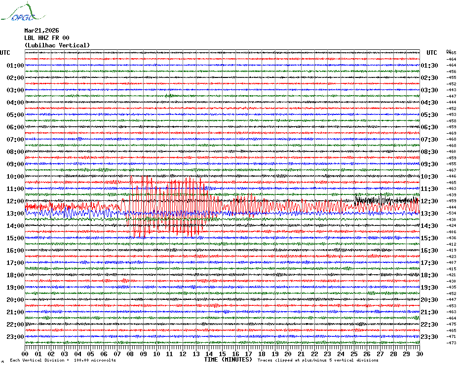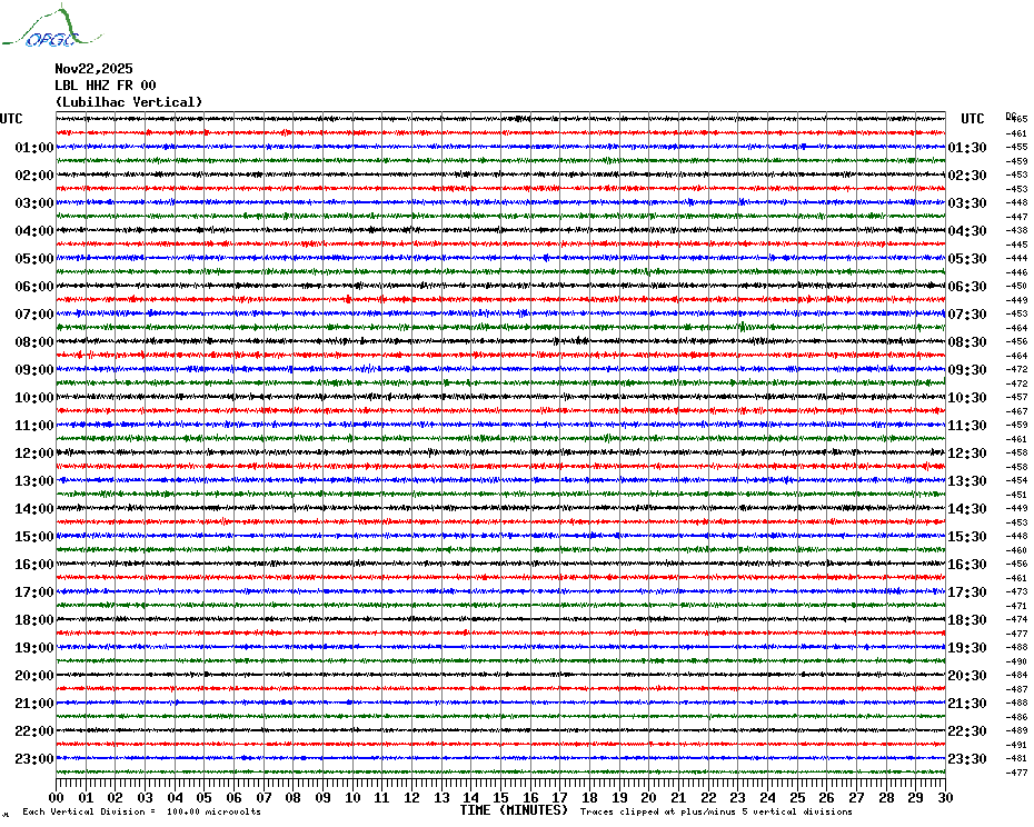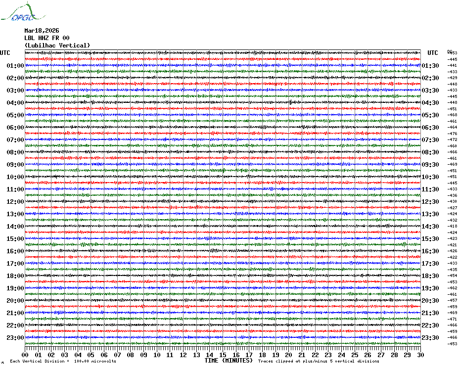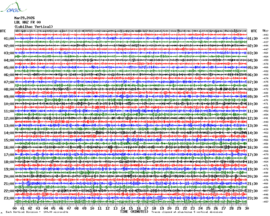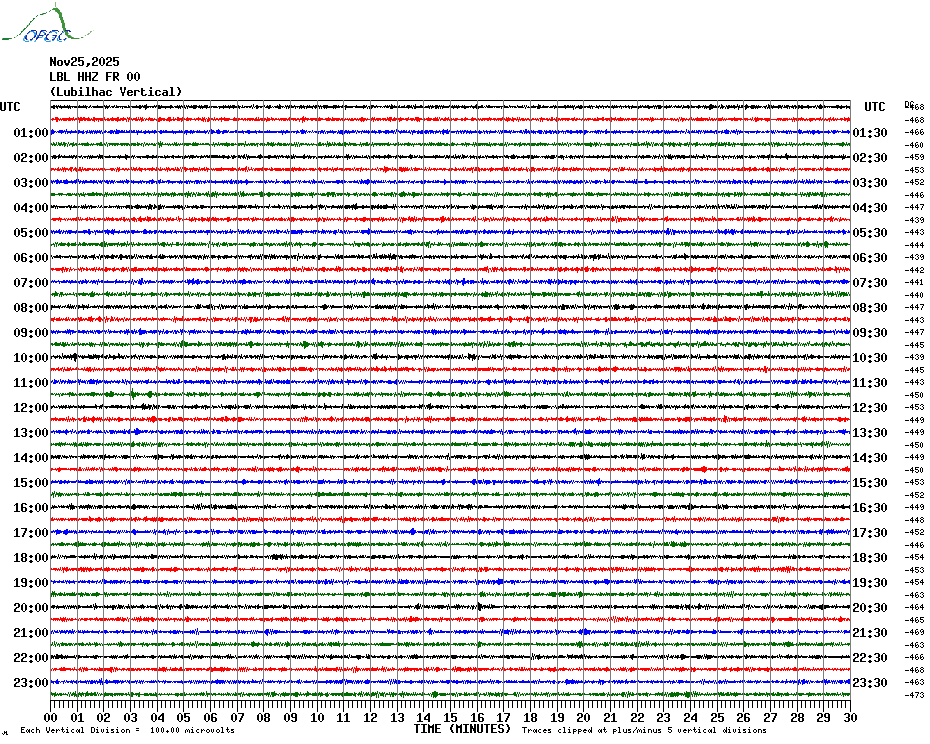 Sismogrammes du Réseau Sismologique Auvergne par fenêtre de 24h