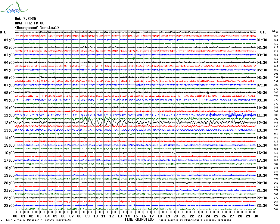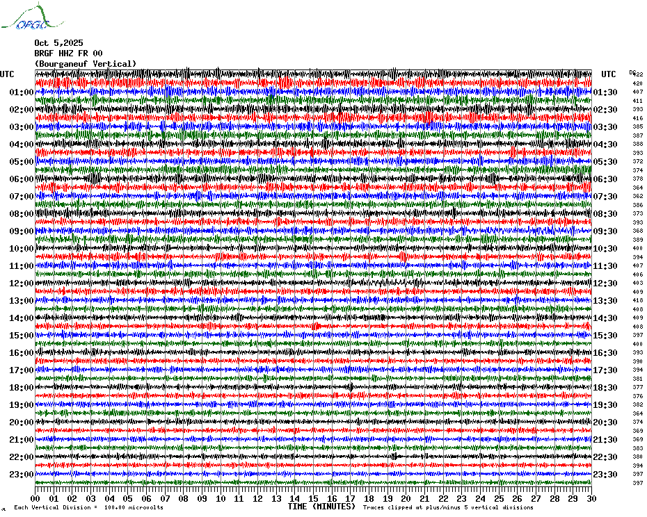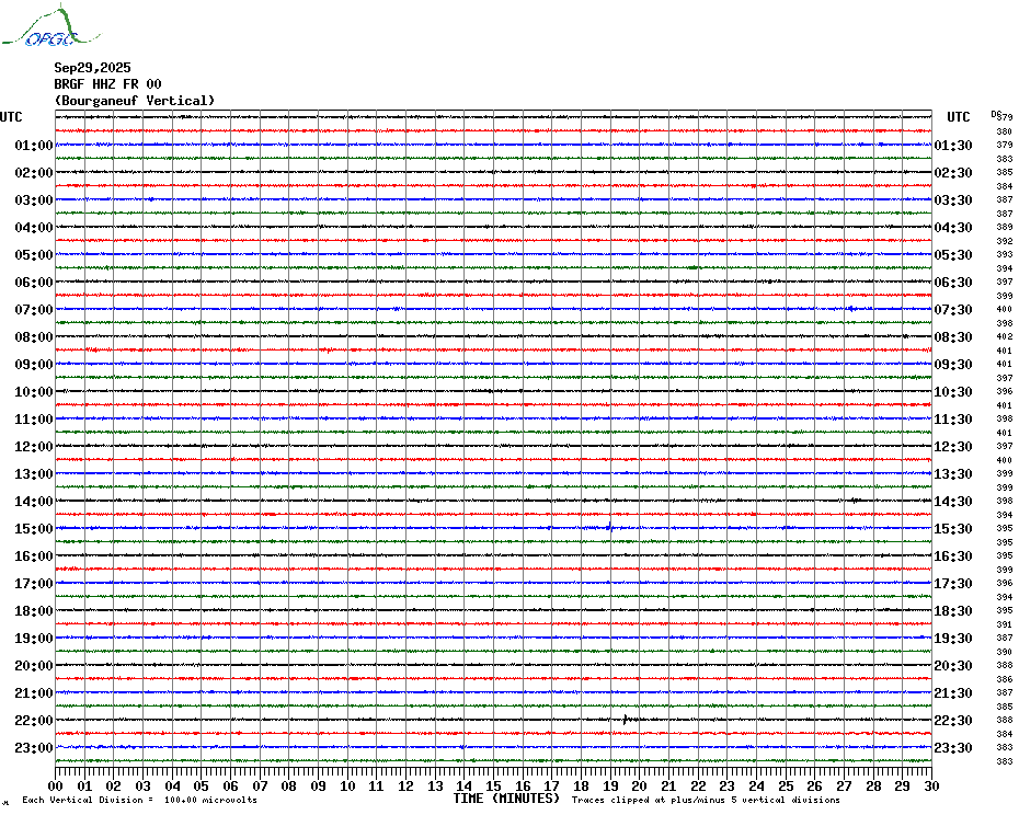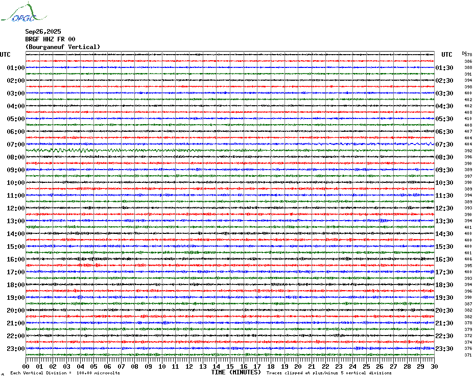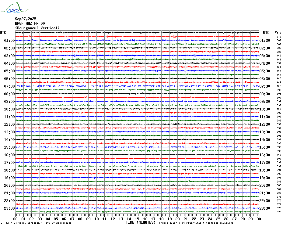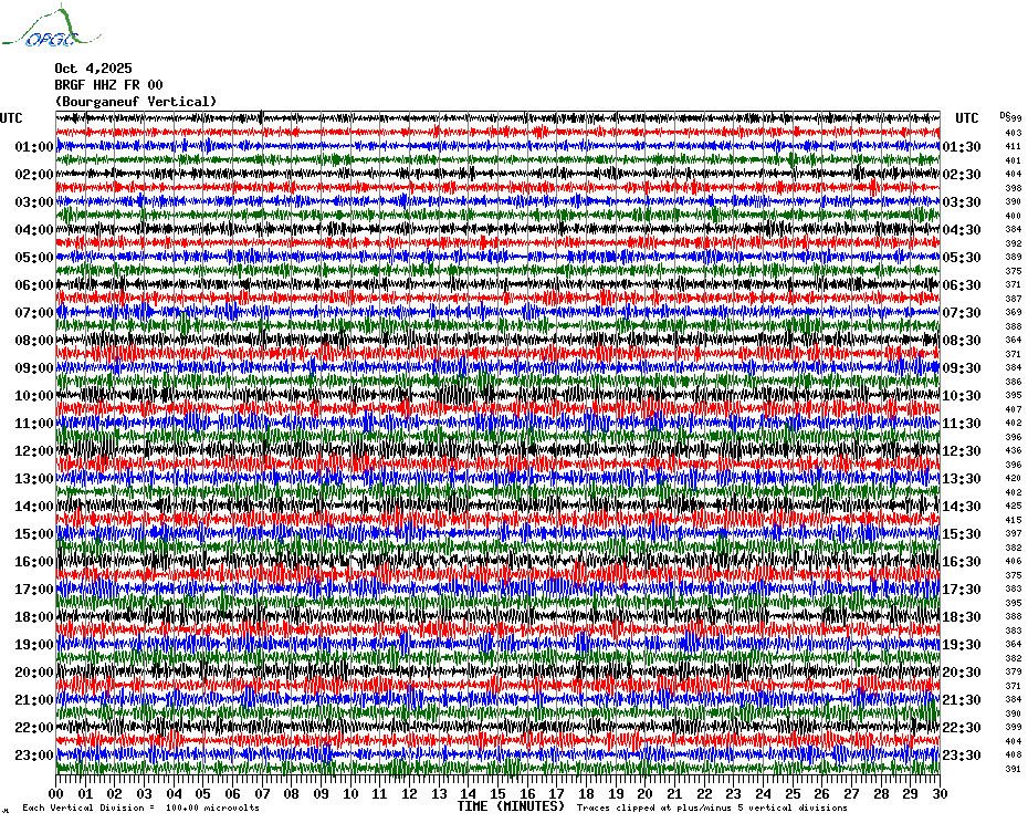 Sismogrammes du Réseau Sismologique Auvergne par fenêtre de 24h