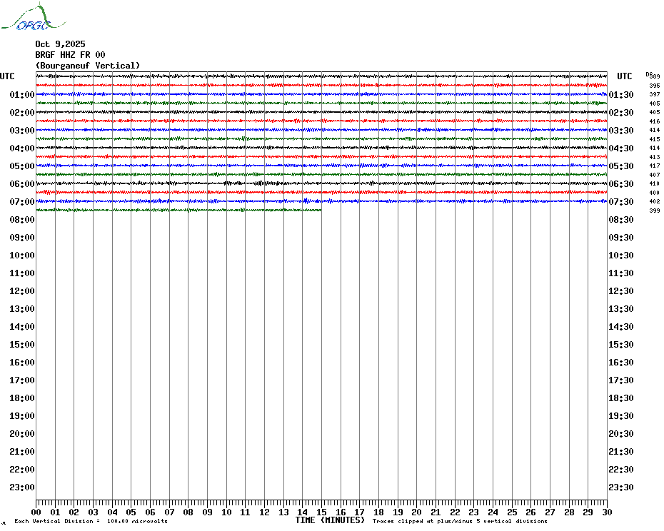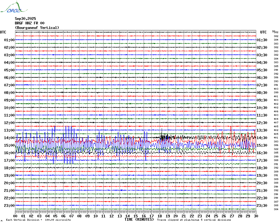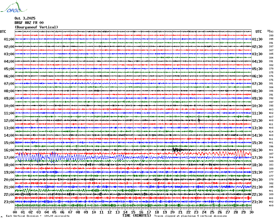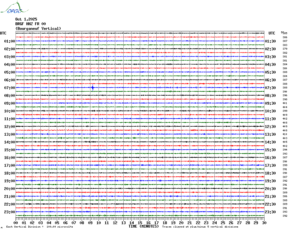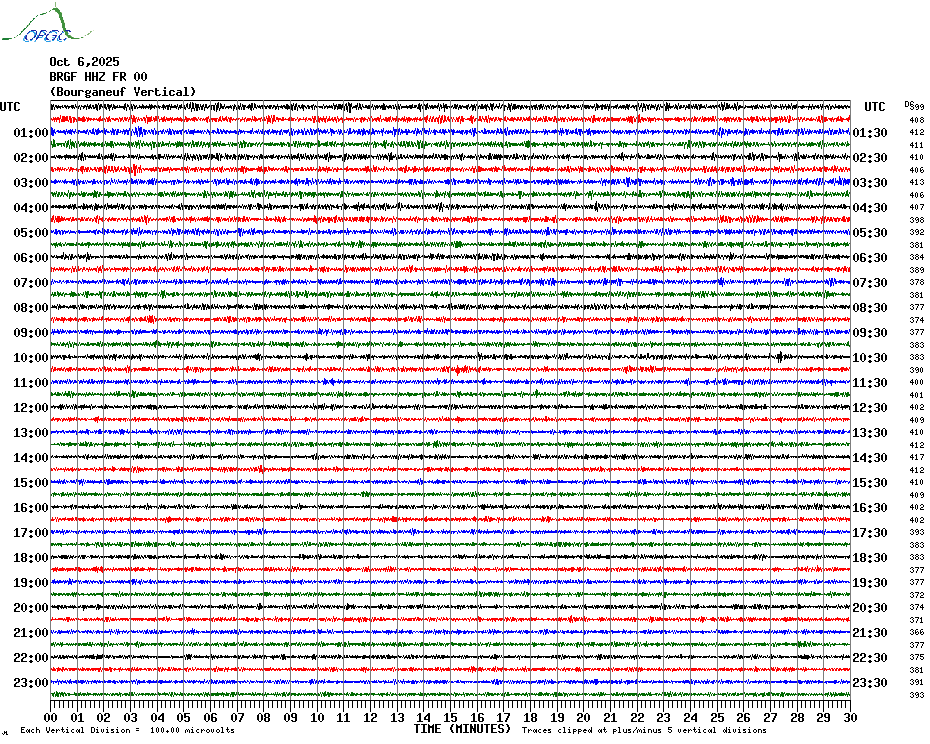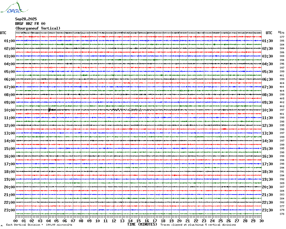 Sismogrammes du Réseau Sismologique Auvergne par fenêtre de 24h