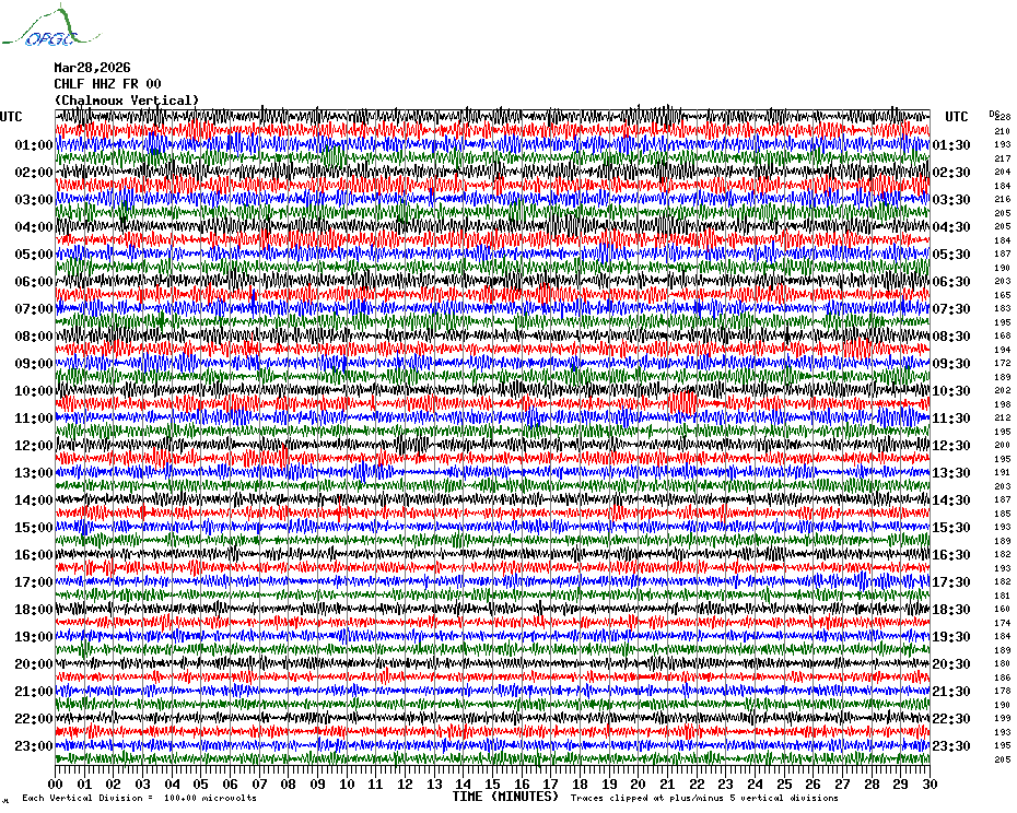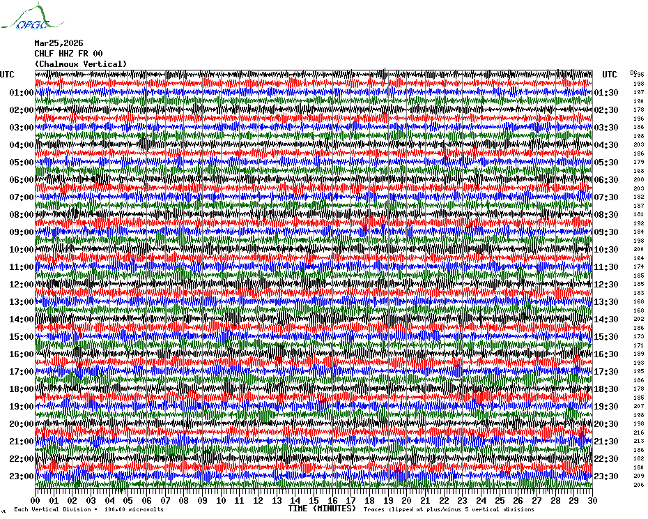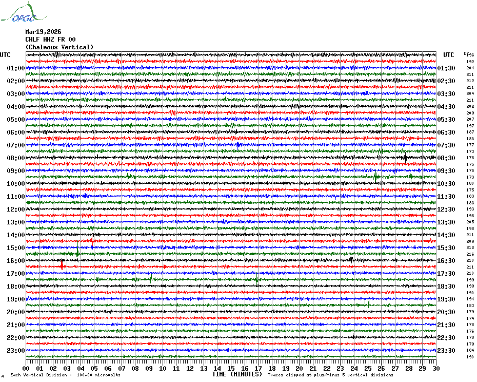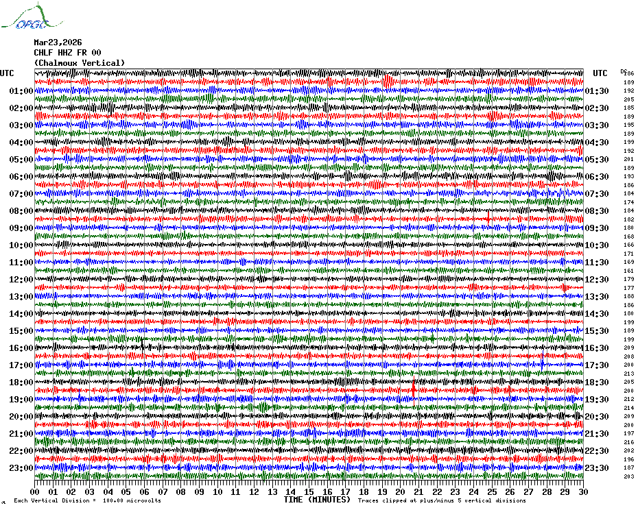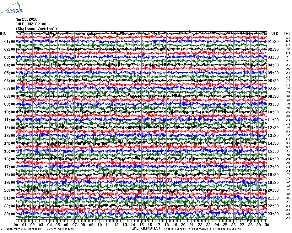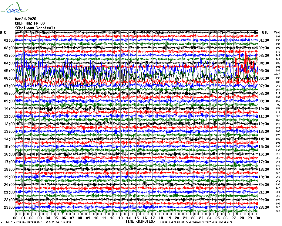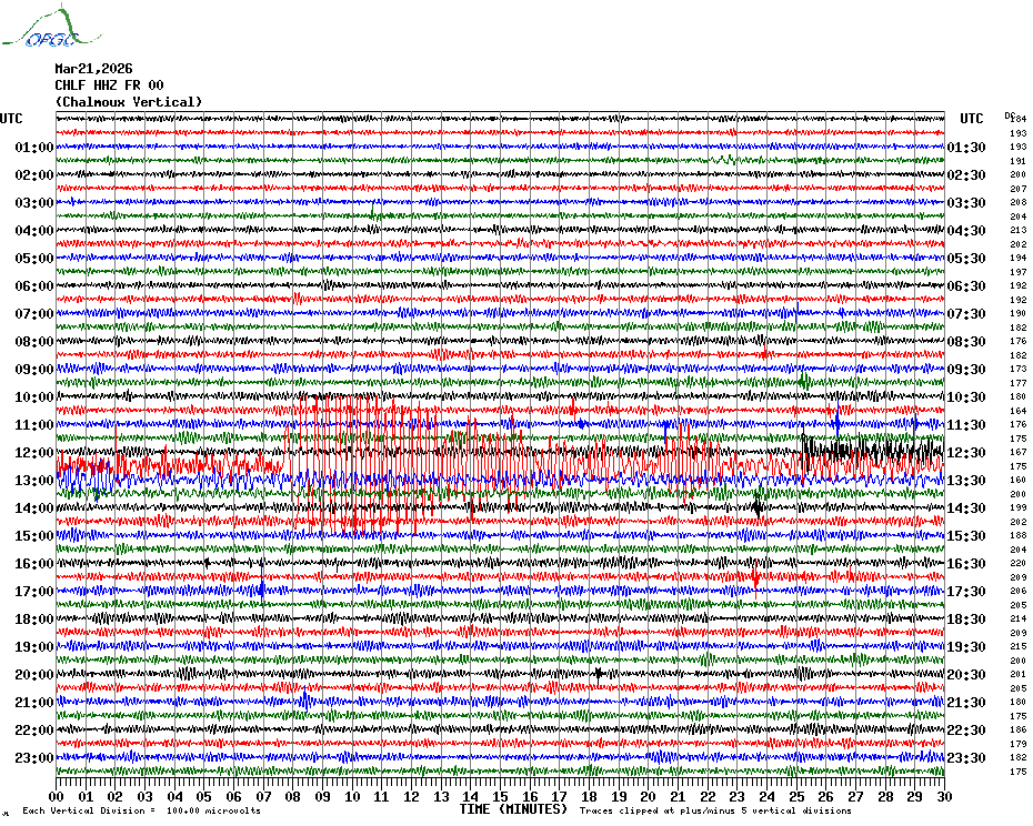 Sismogrammes du Réseau Sismologique Auvergne par fenêtre de 24h