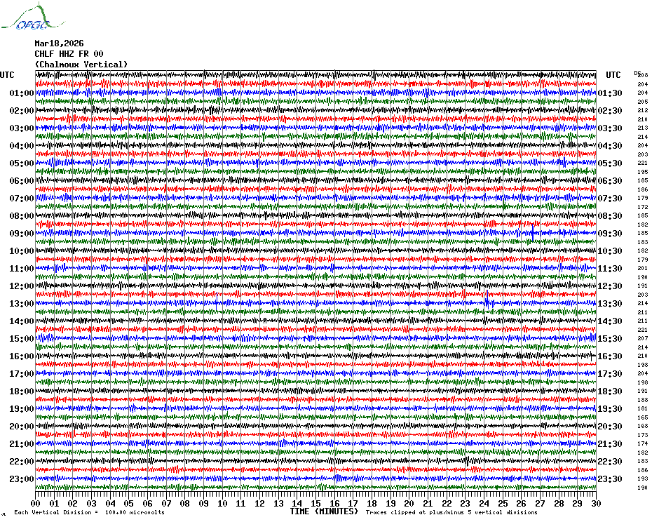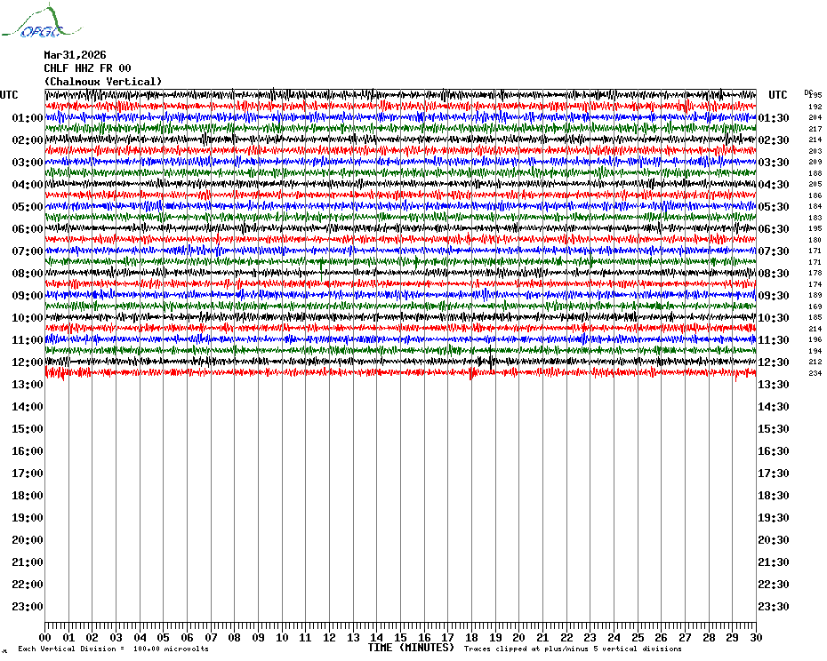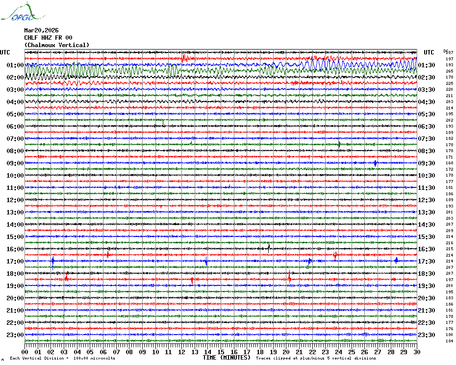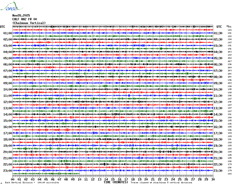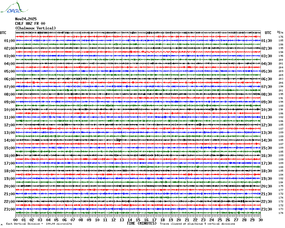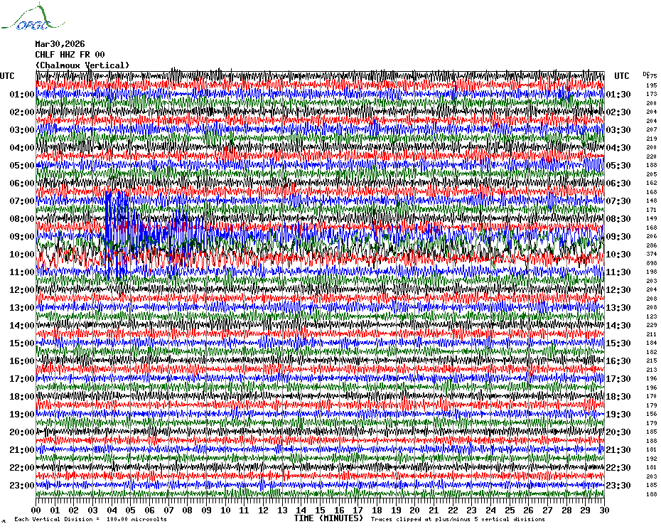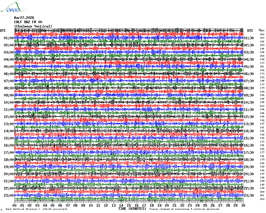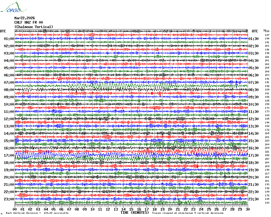 Sismogrammes du Réseau Sismologique Auvergne par fenêtre de 24h
