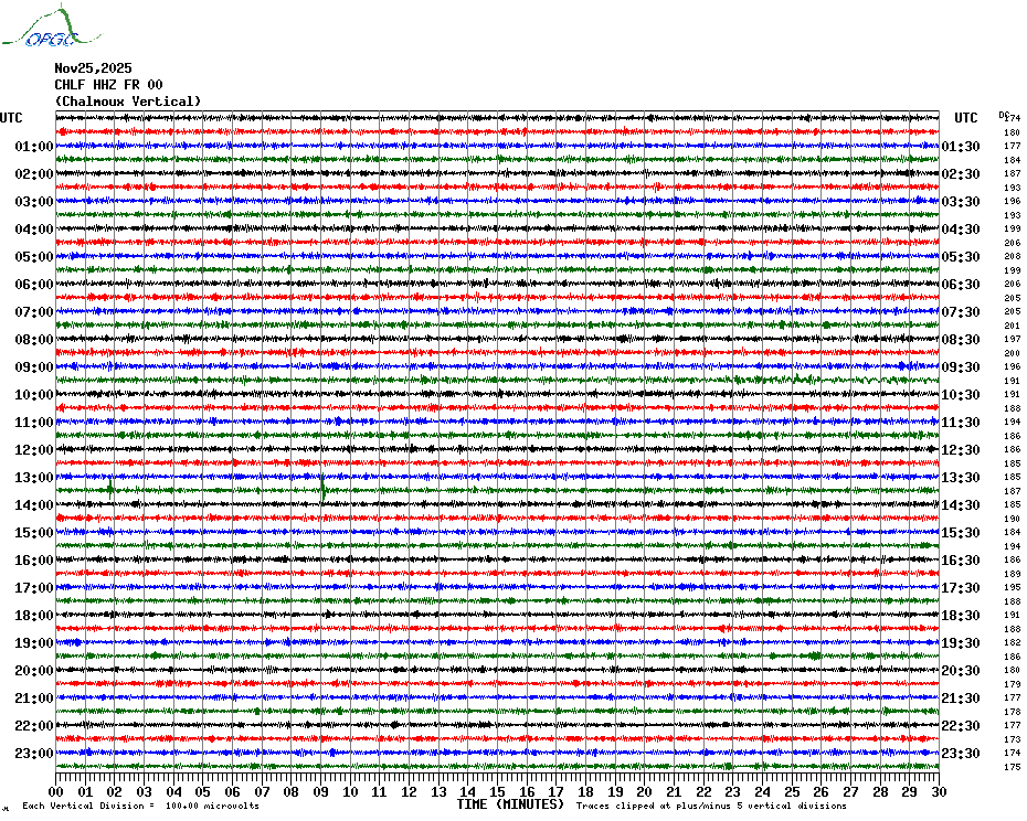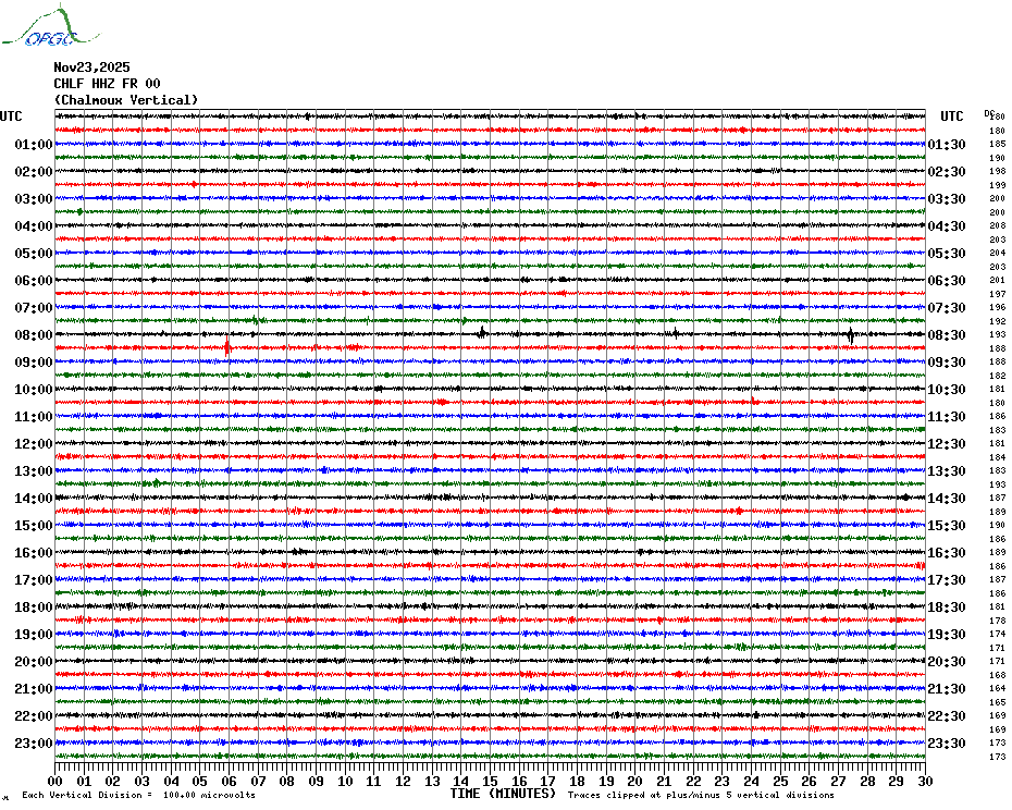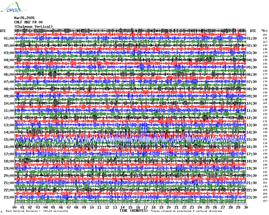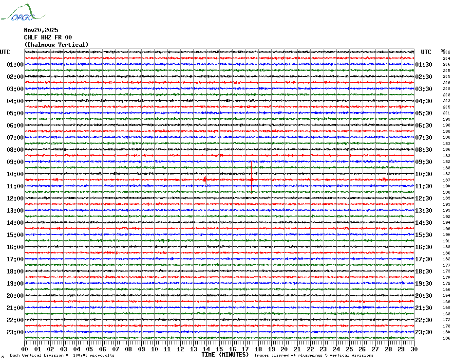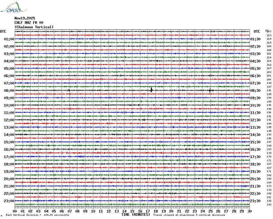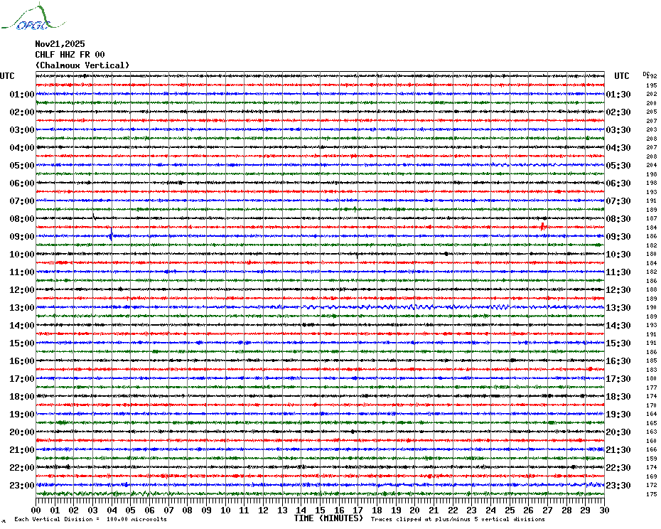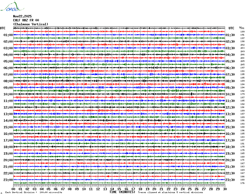 Sismogrammes du Réseau Sismologique Auvergne par fenêtre de 24h
