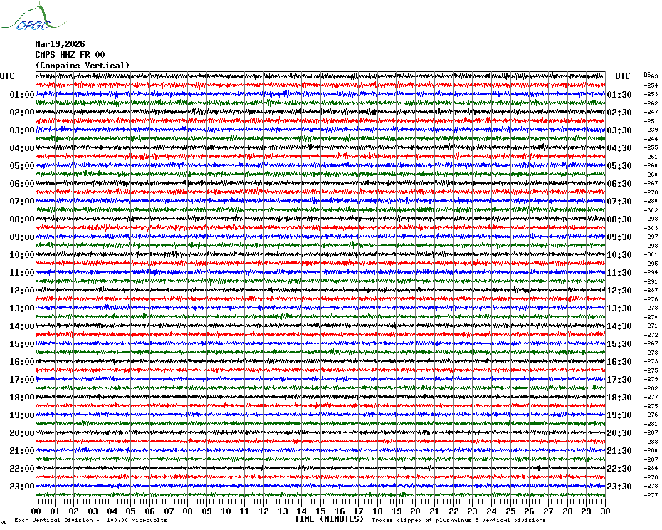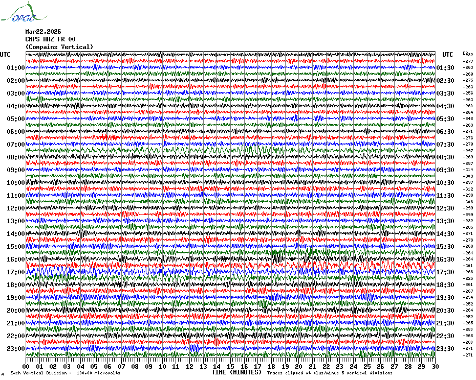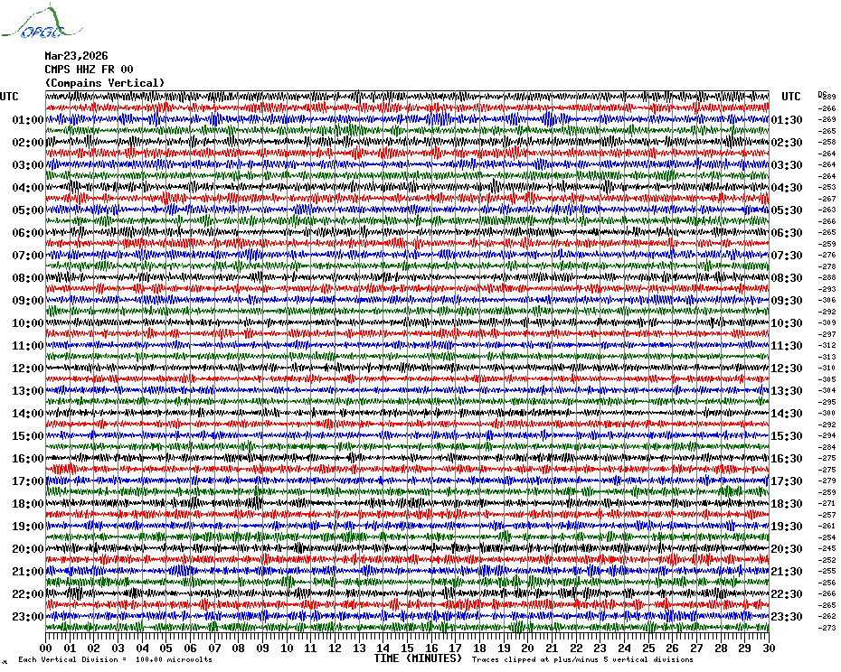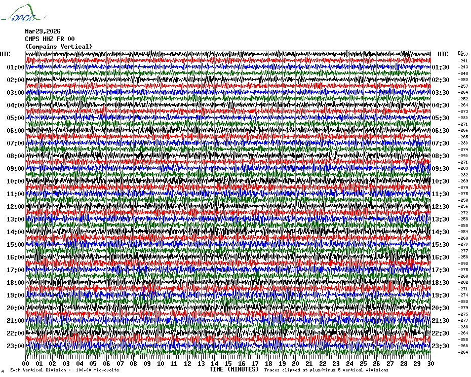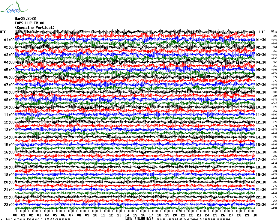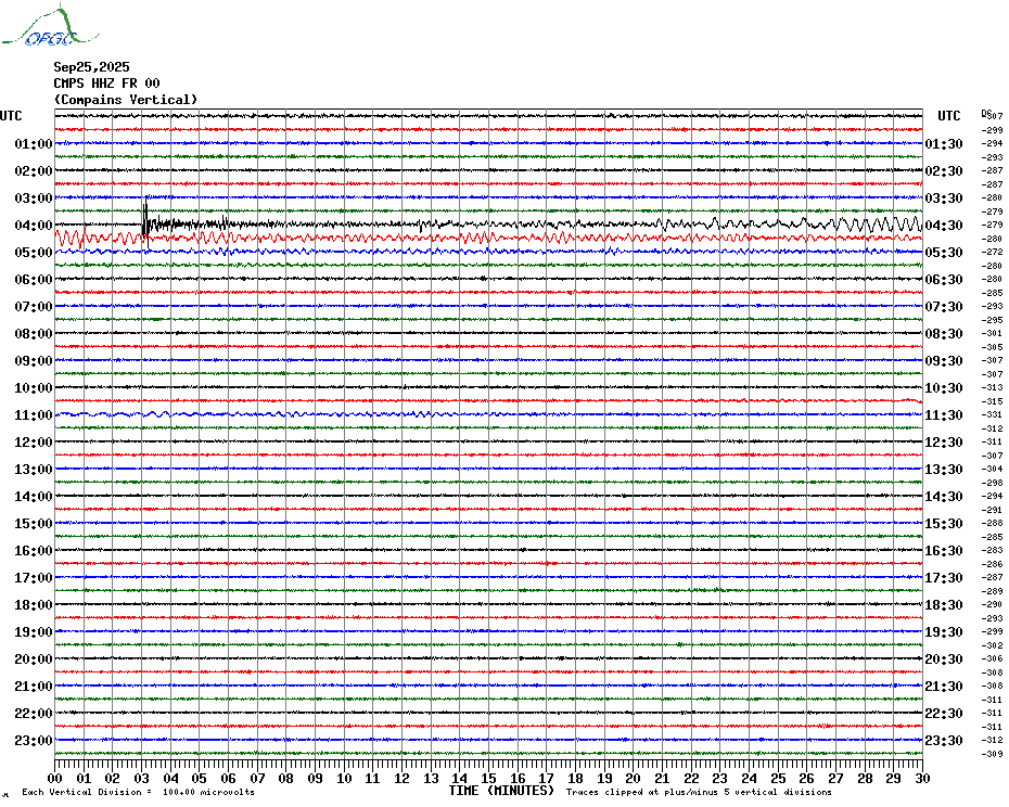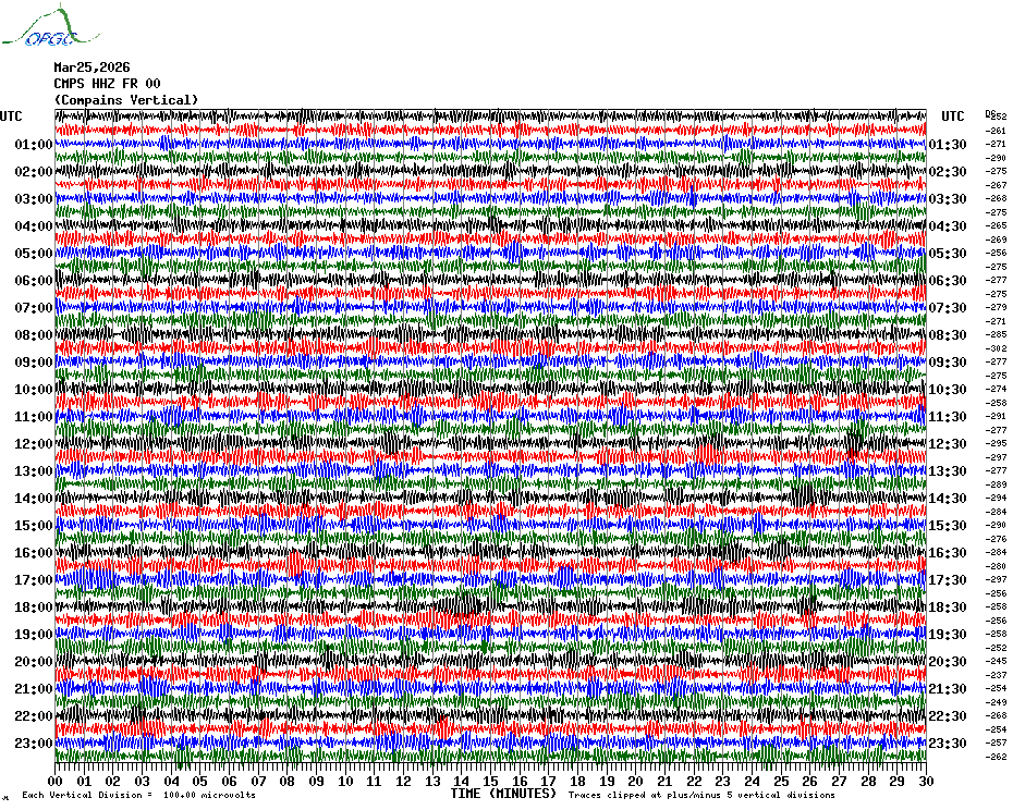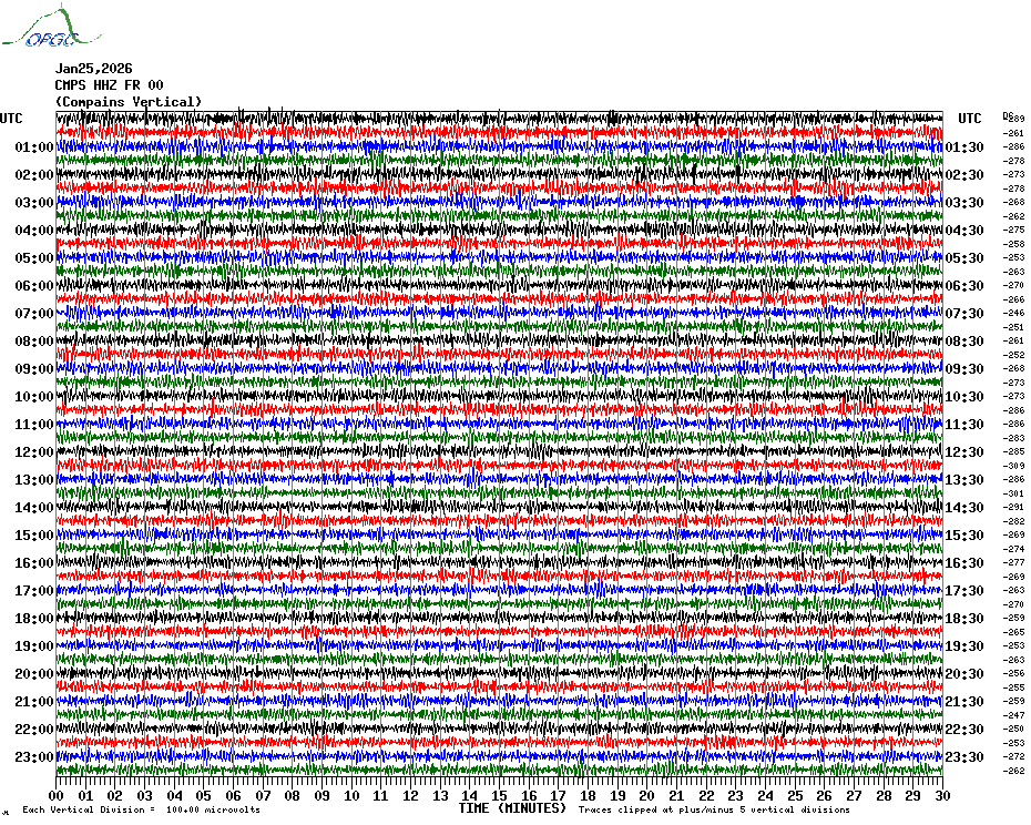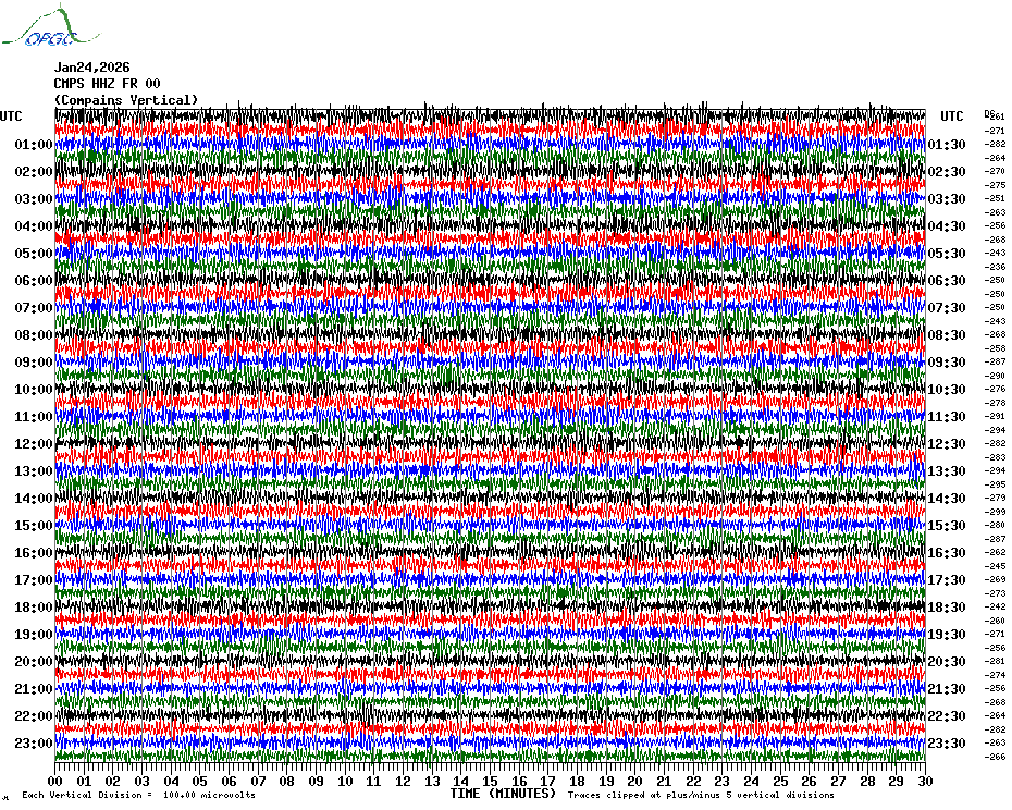 Sismogrammes du Réseau Sismologique Auvergne par fenêtre de 24h