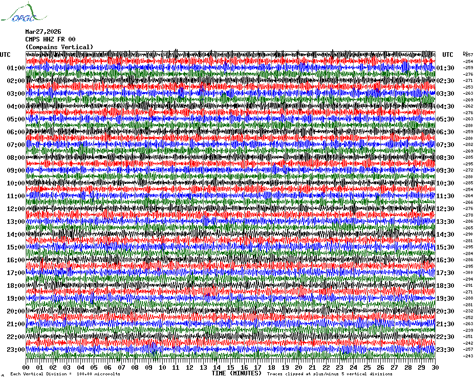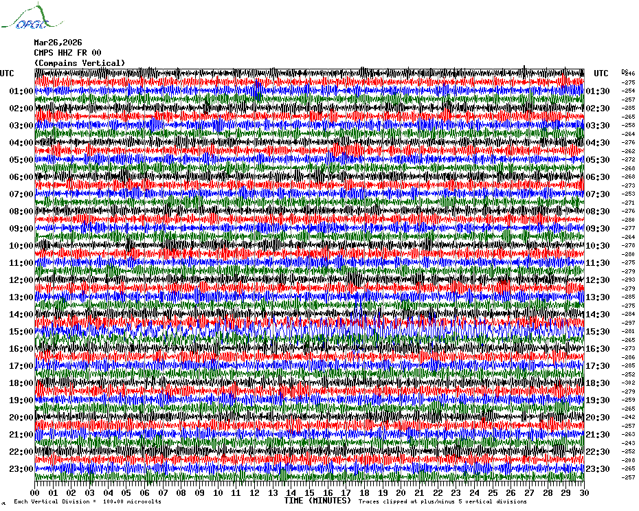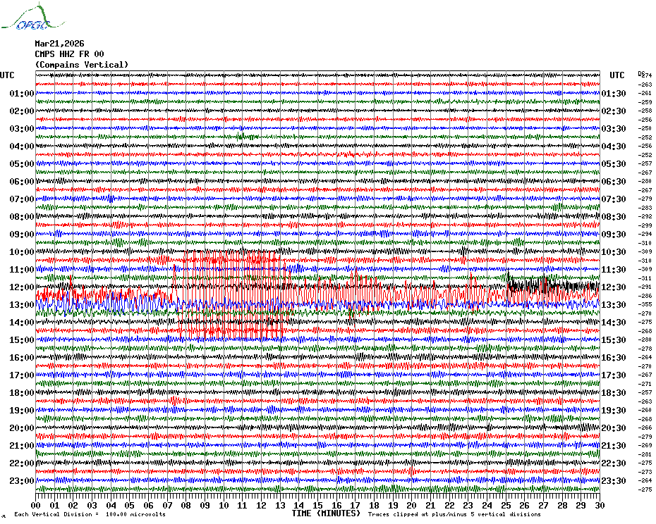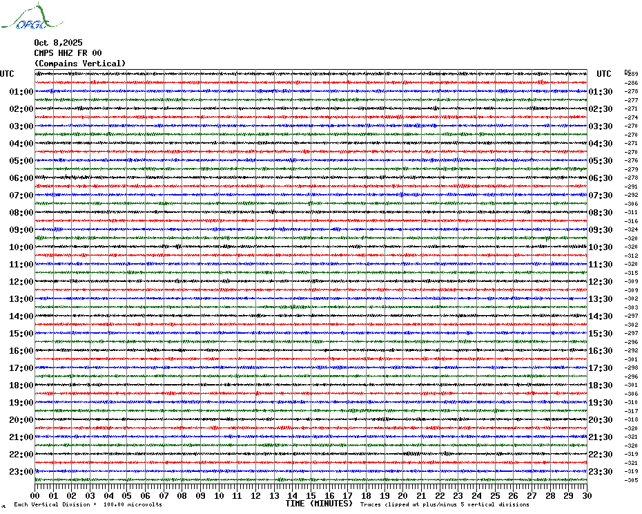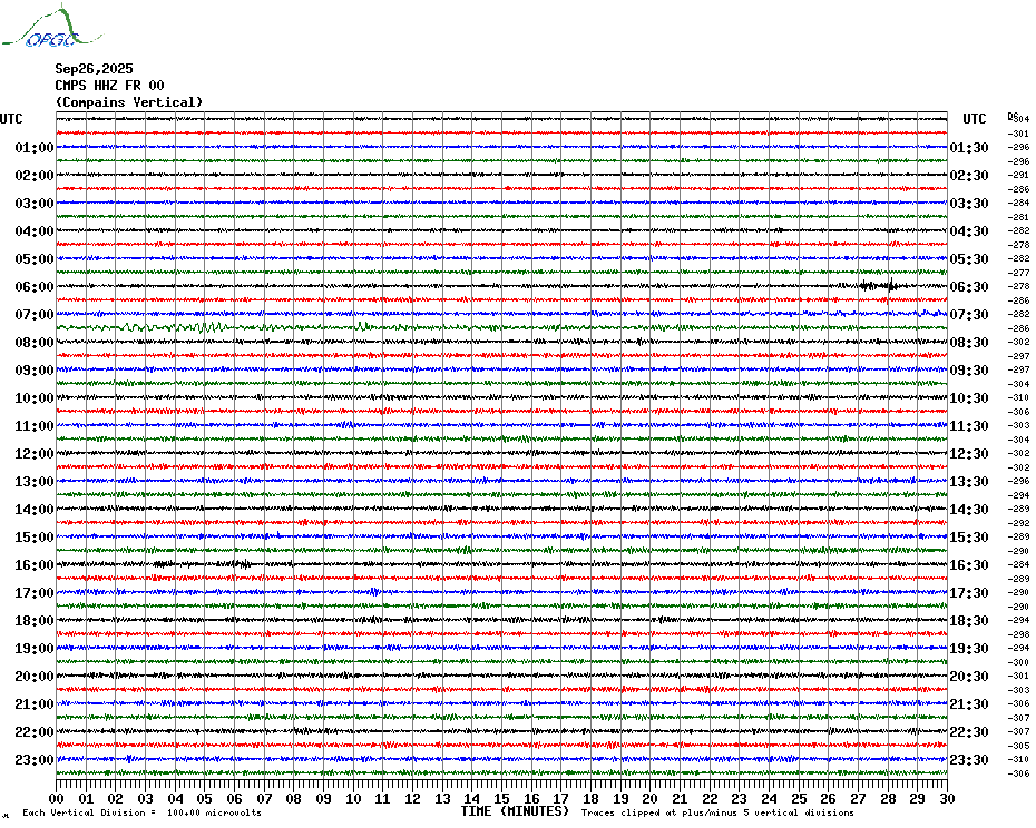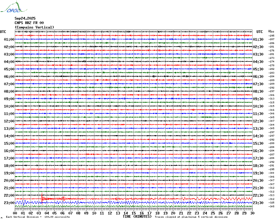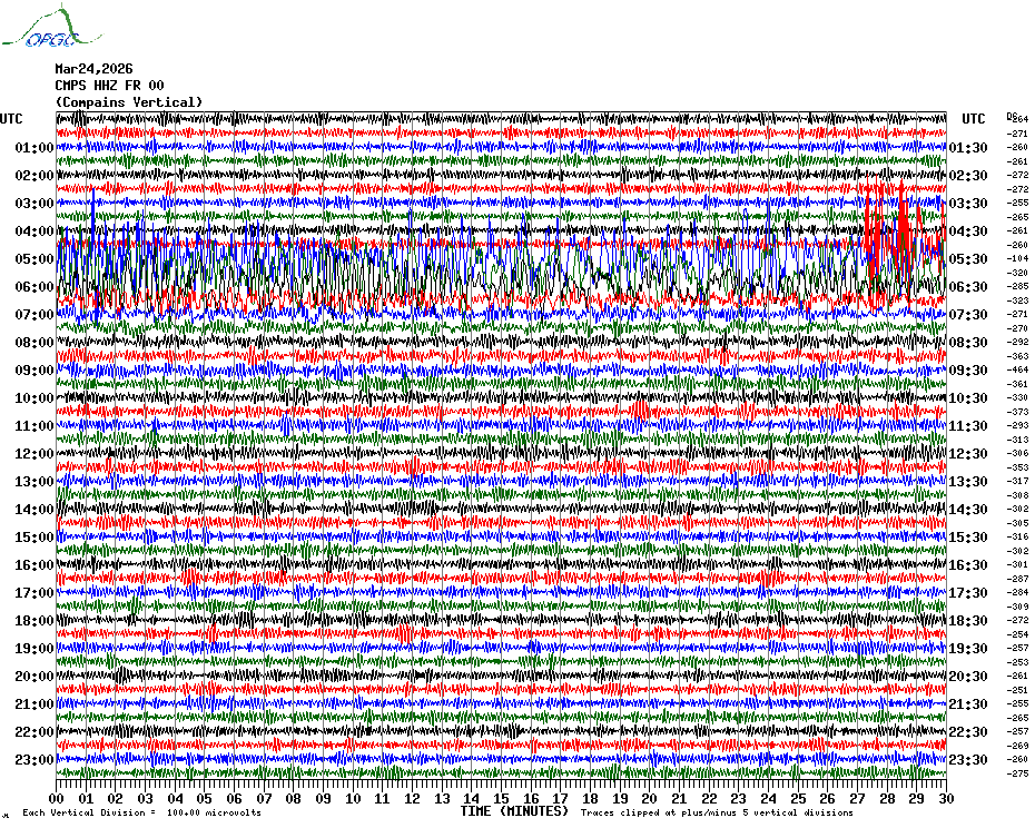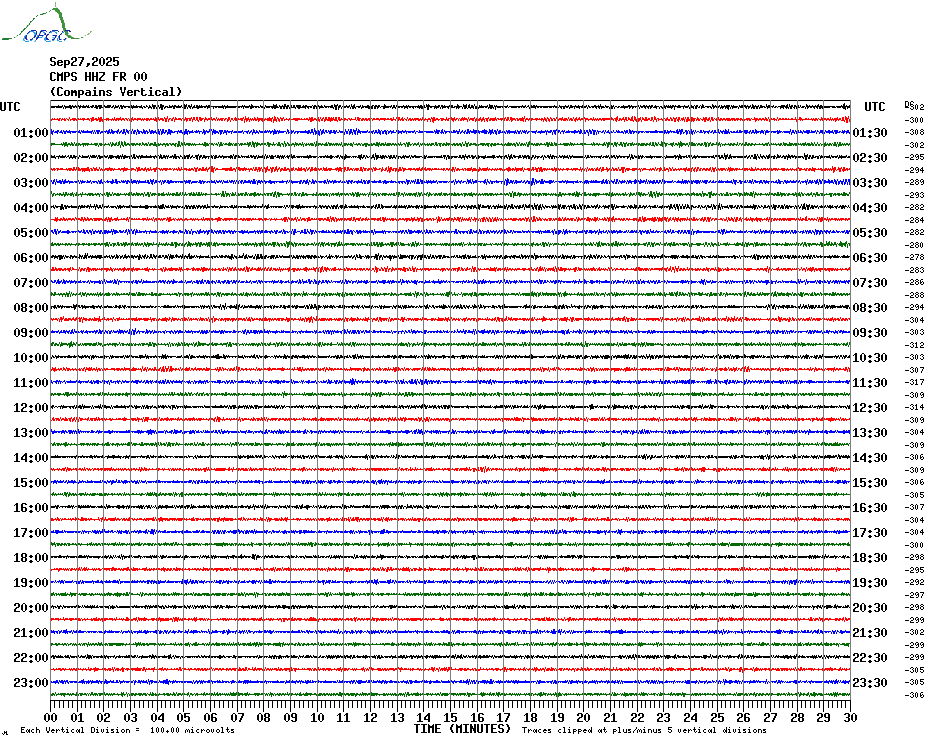 Sismogrammes du Réseau Sismologique Auvergne par fenêtre de 24h