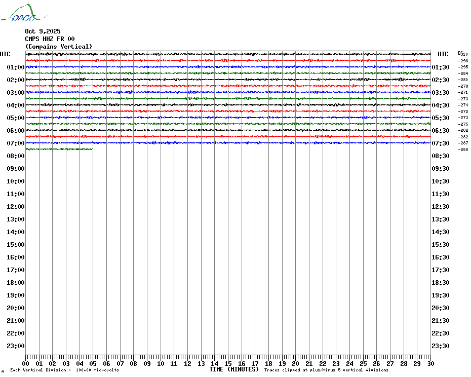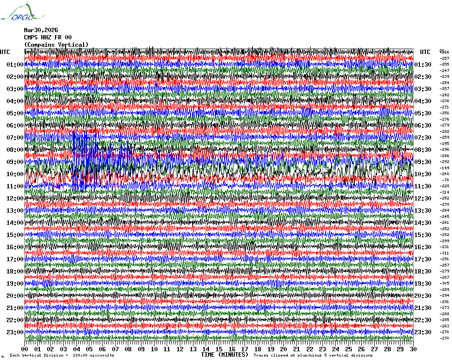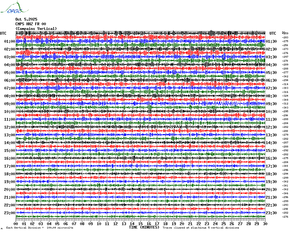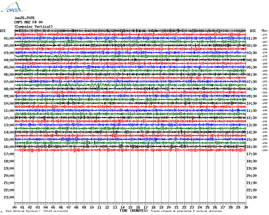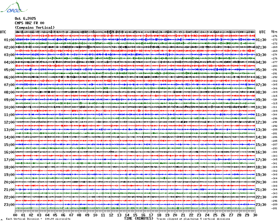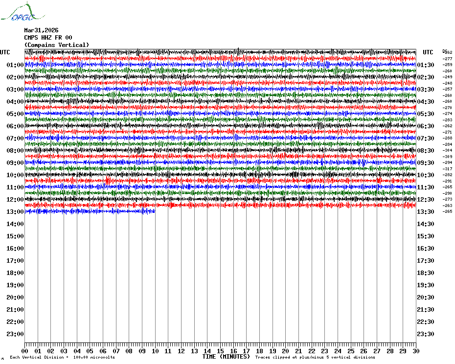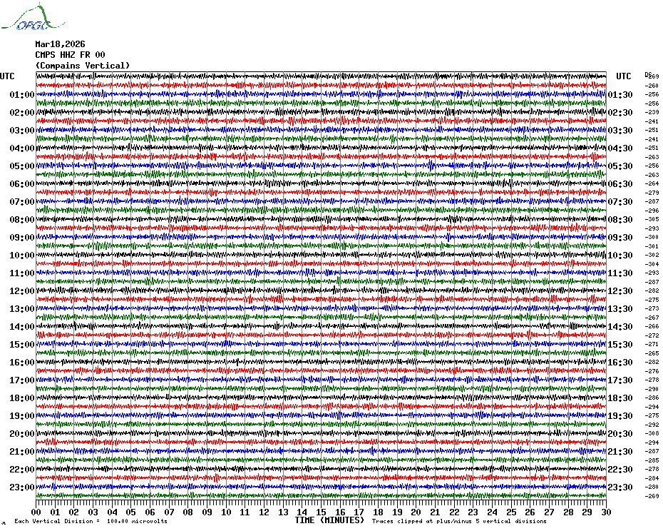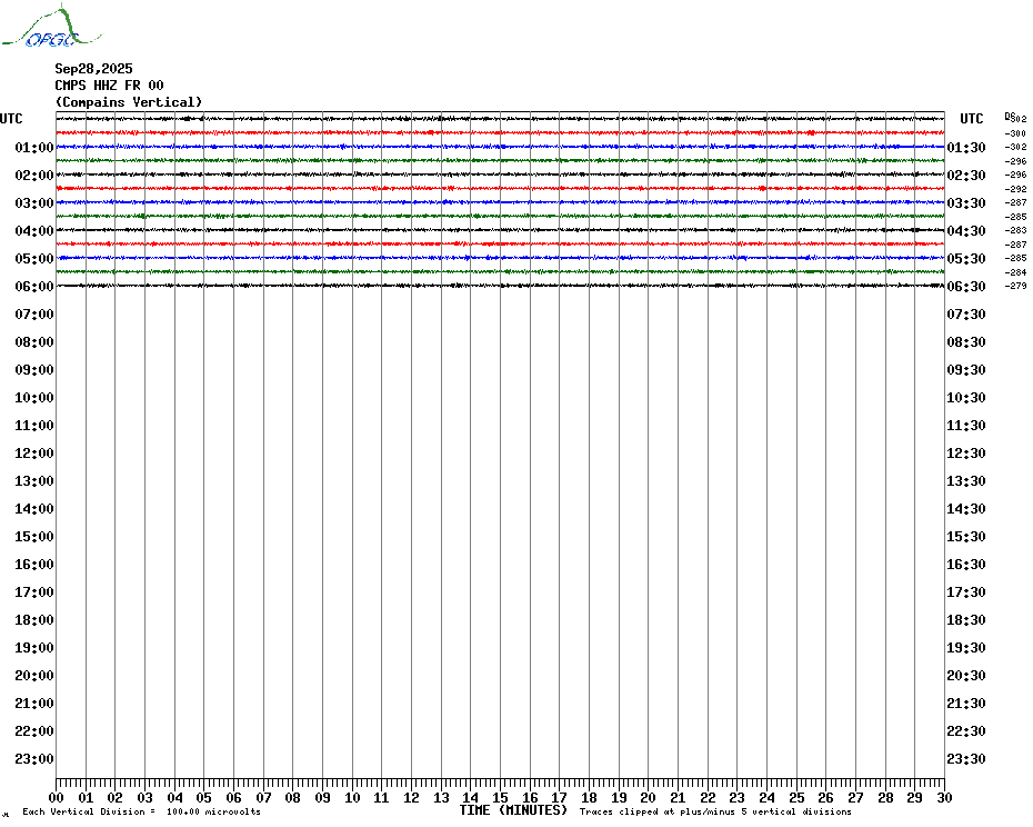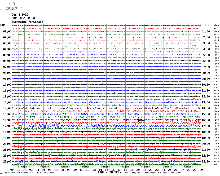 Sismogrammes du Réseau Sismologique Auvergne par fenêtre de 24h