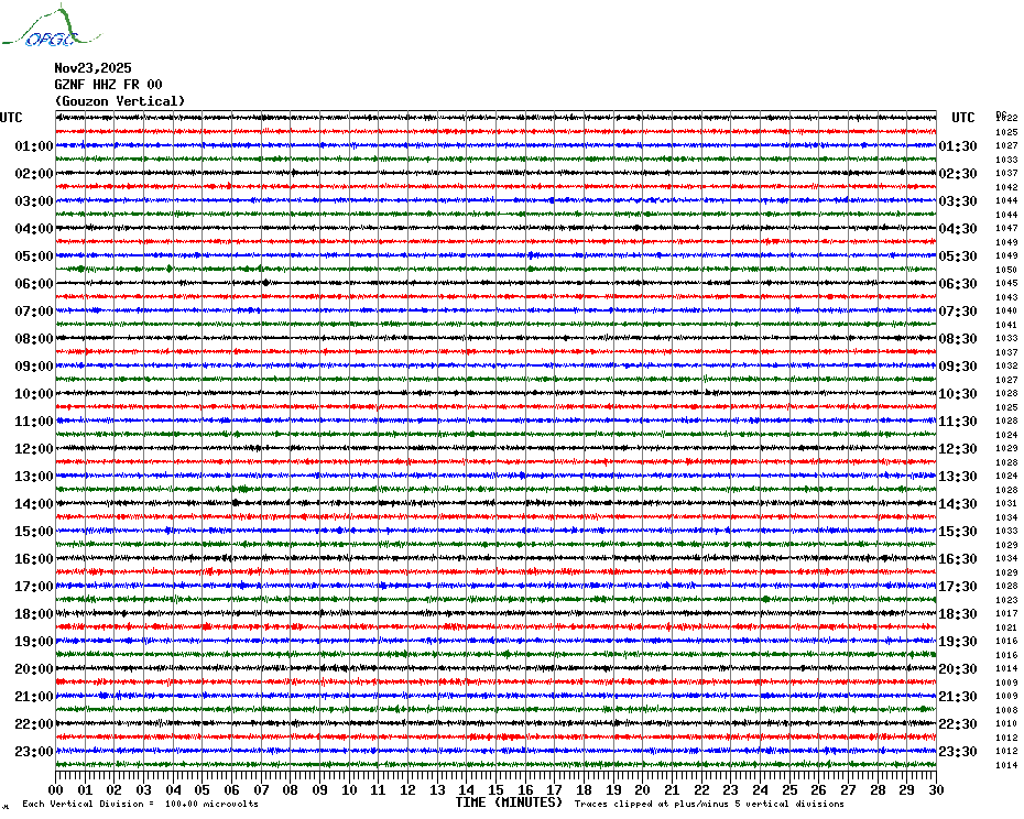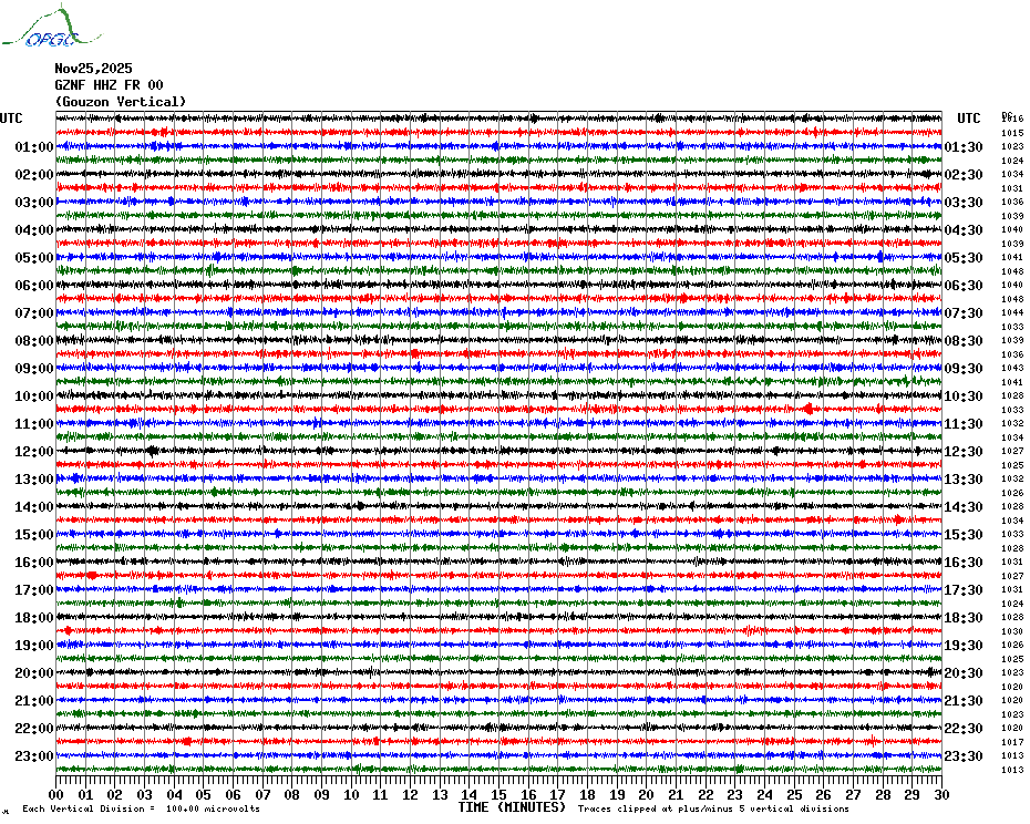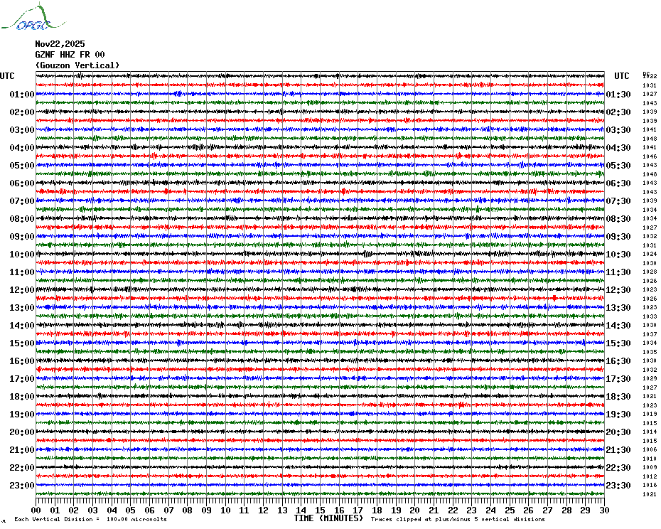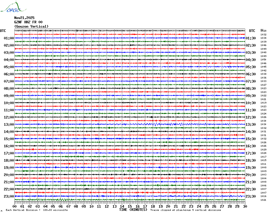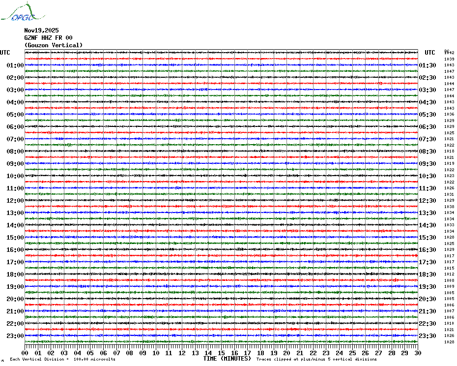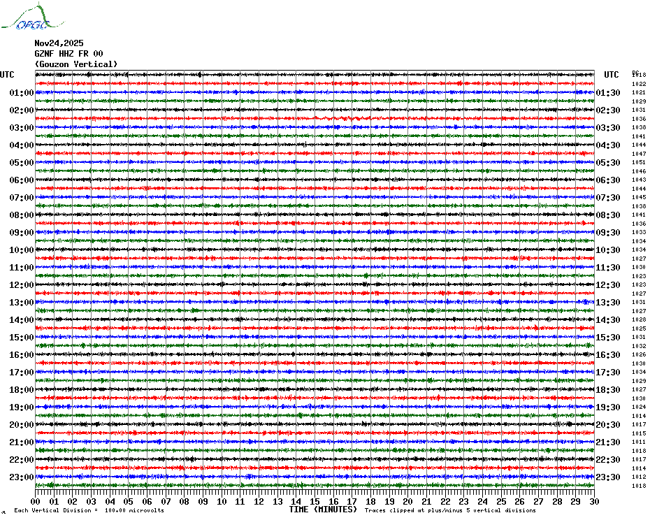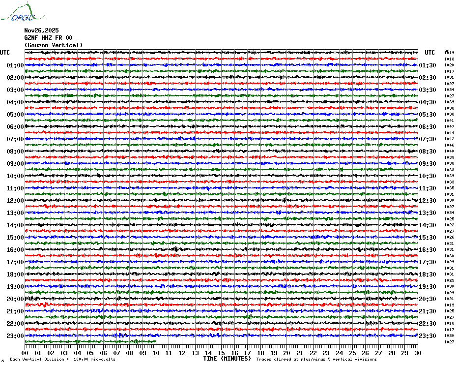 Sismogrammes du Réseau Sismologique Auvergne par fenêtre de 24h