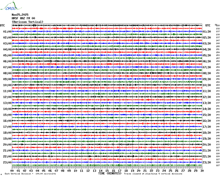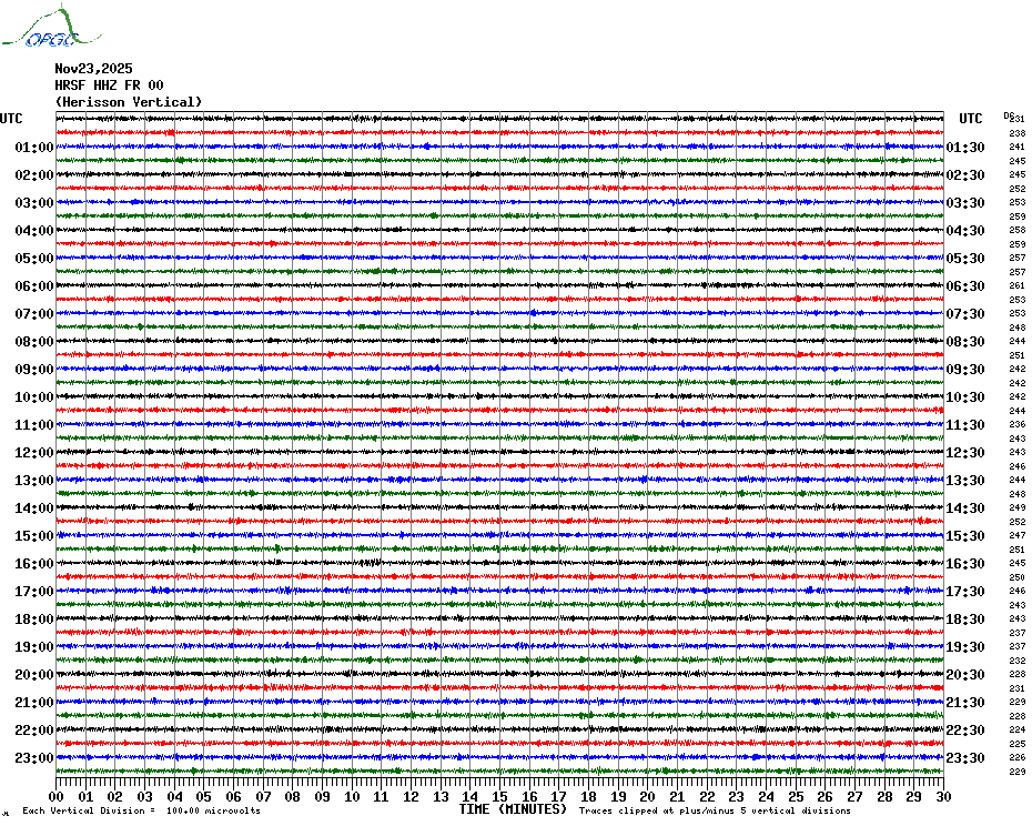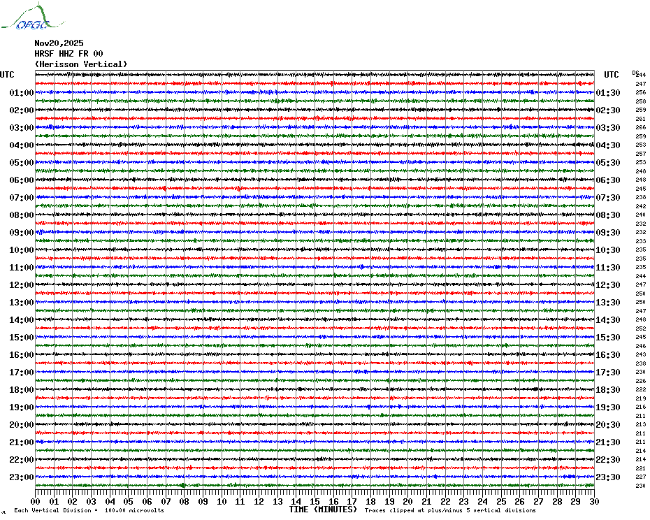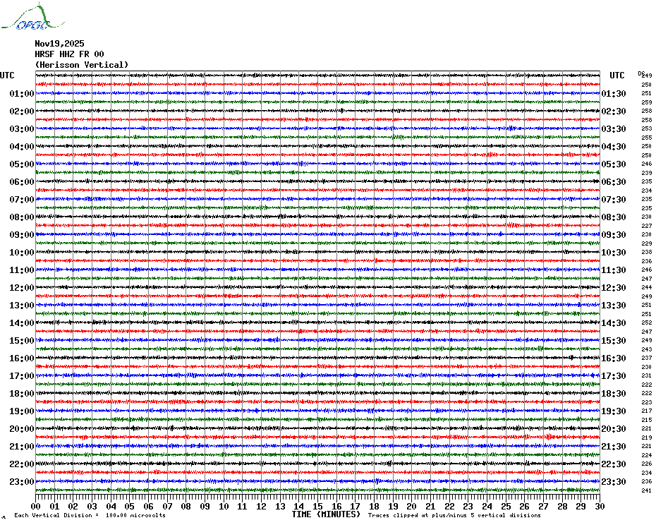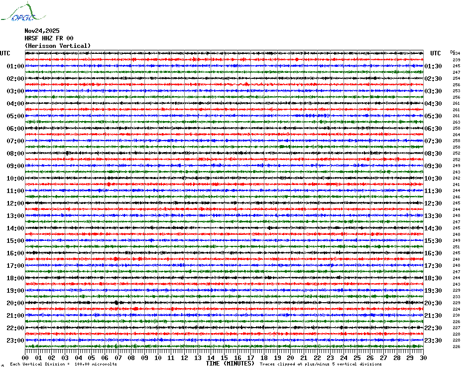 Sismogrammes du Réseau Sismologique Auvergne par fenêtre de 24h