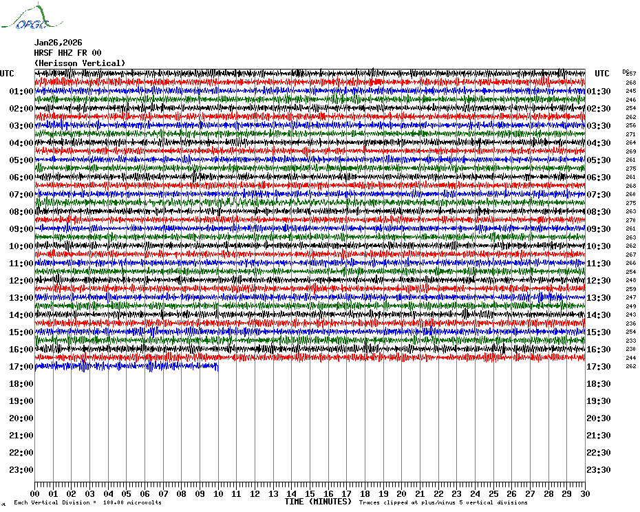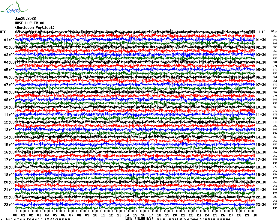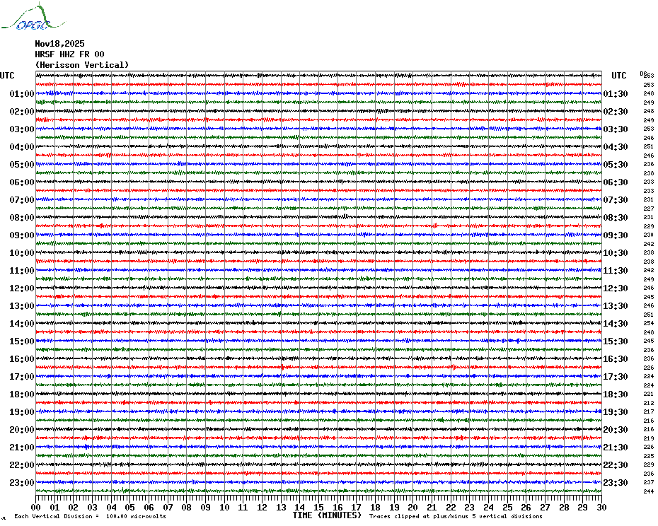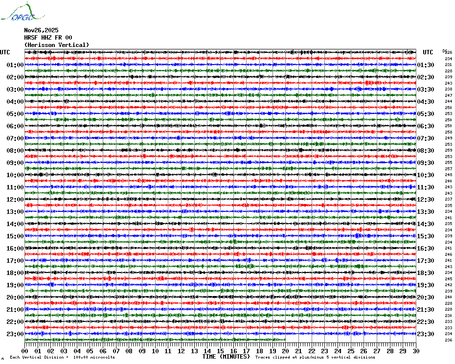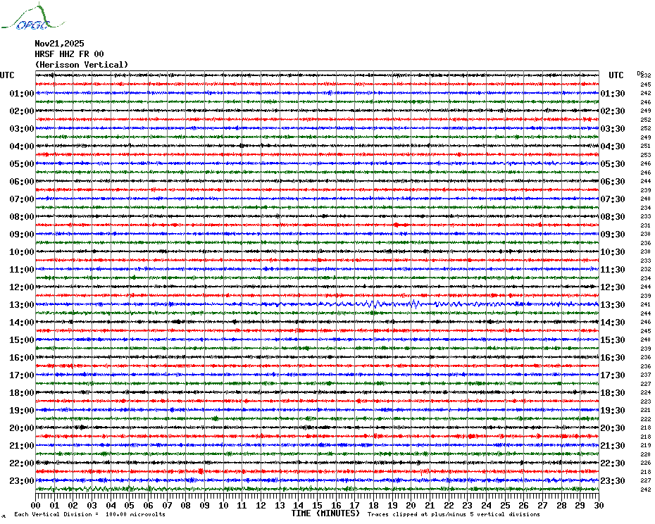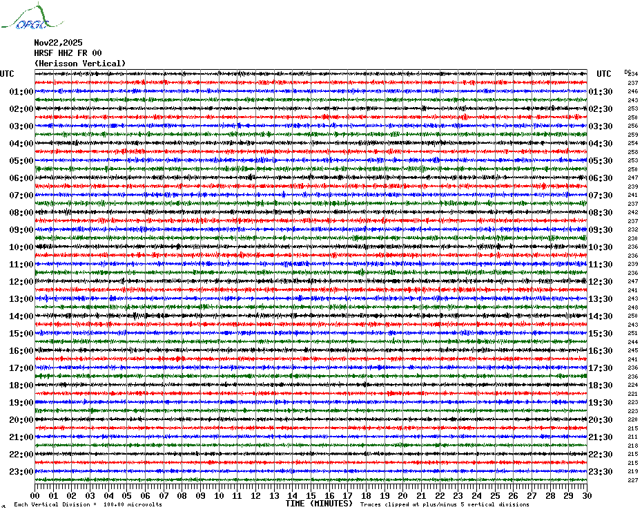 Sismogrammes du Réseau Sismologique Auvergne par fenêtre de 24h