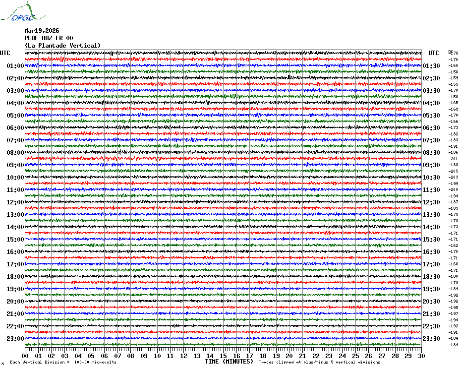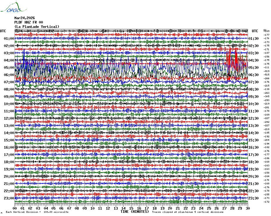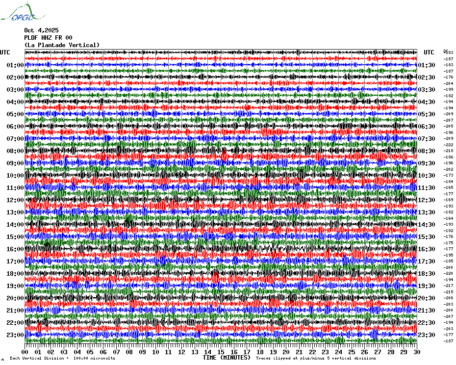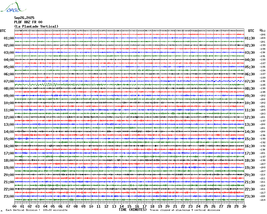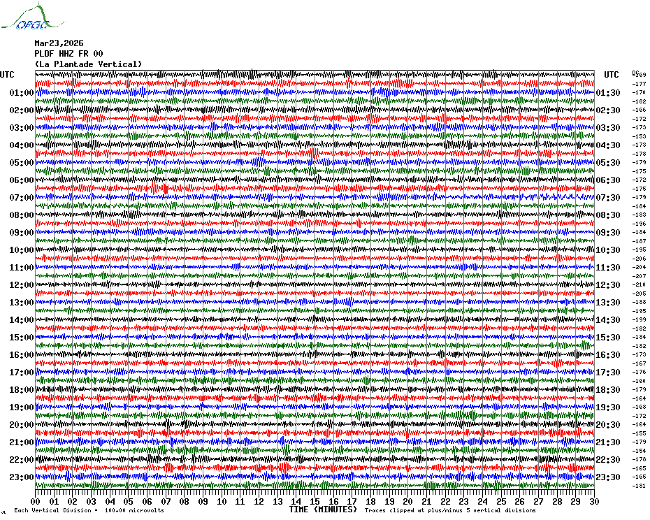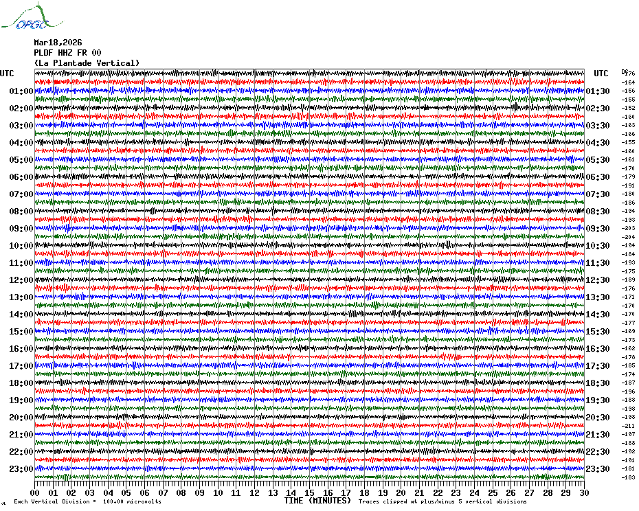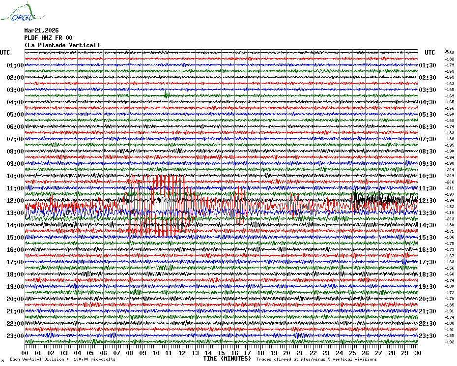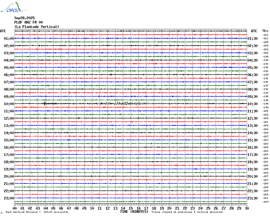 Sismogrammes du Réseau Sismologique Auvergne par fenêtre de 24h