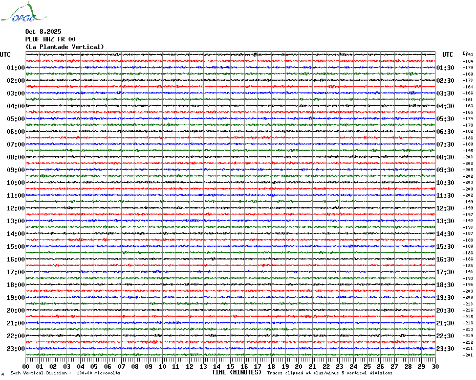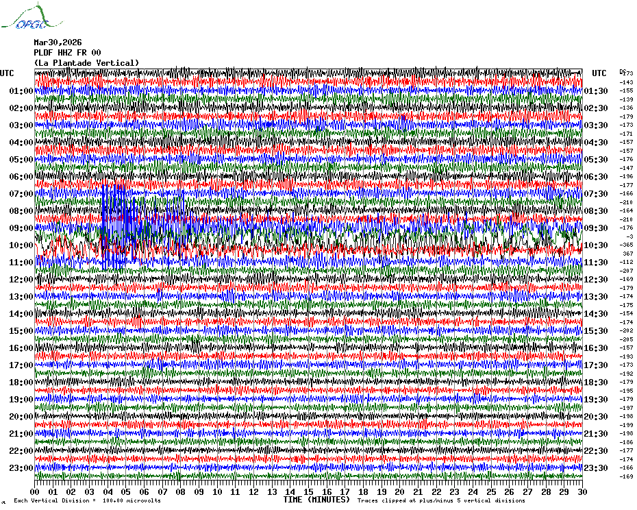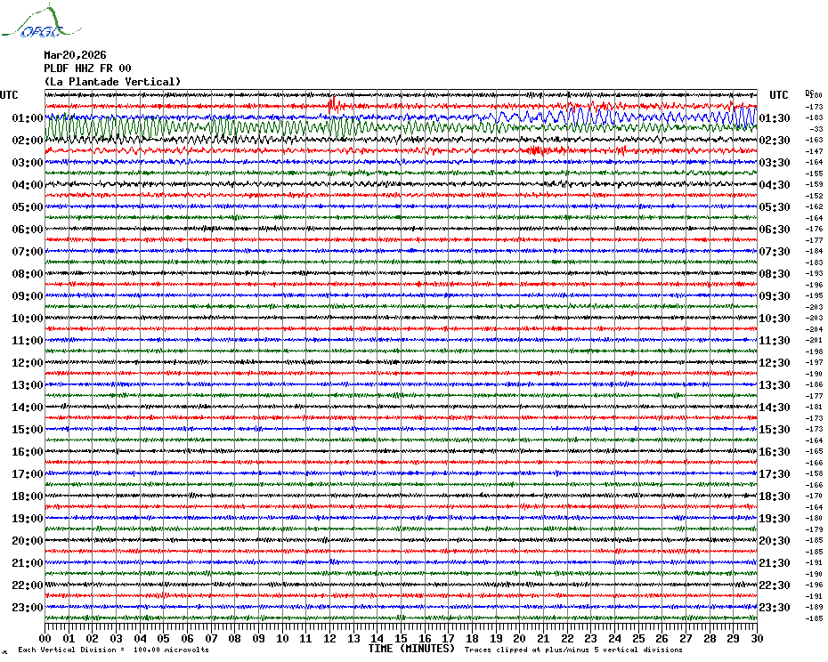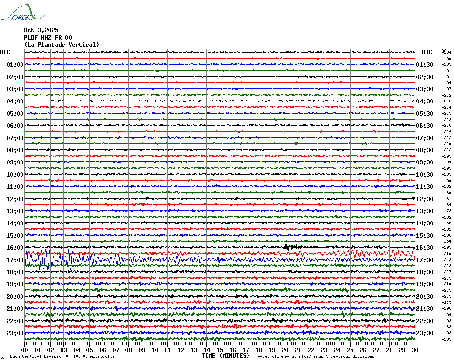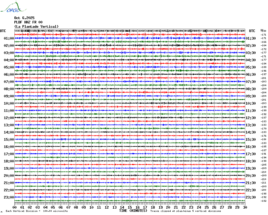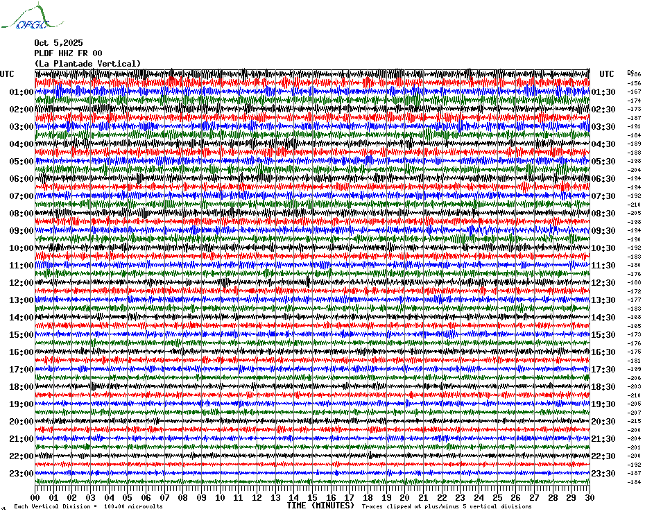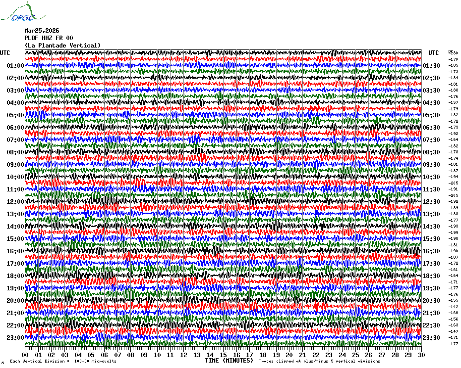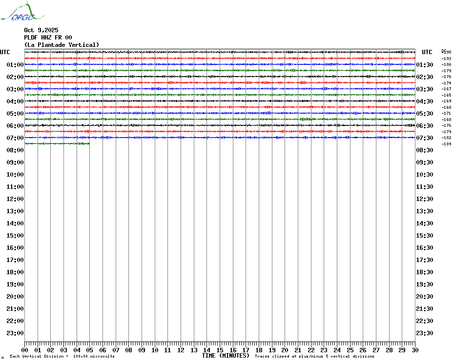 Sismogrammes du Réseau Sismologique Auvergne par fenêtre de 24h