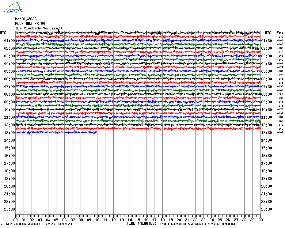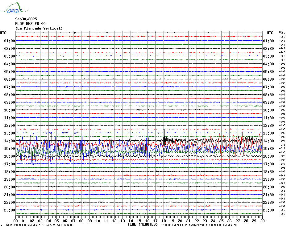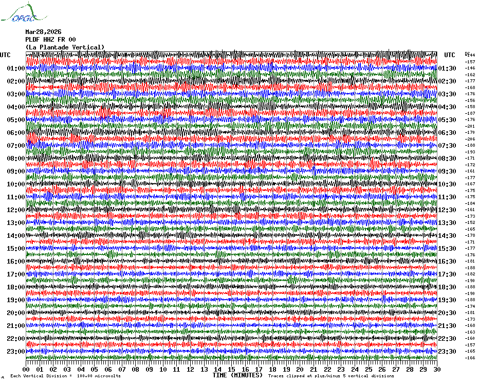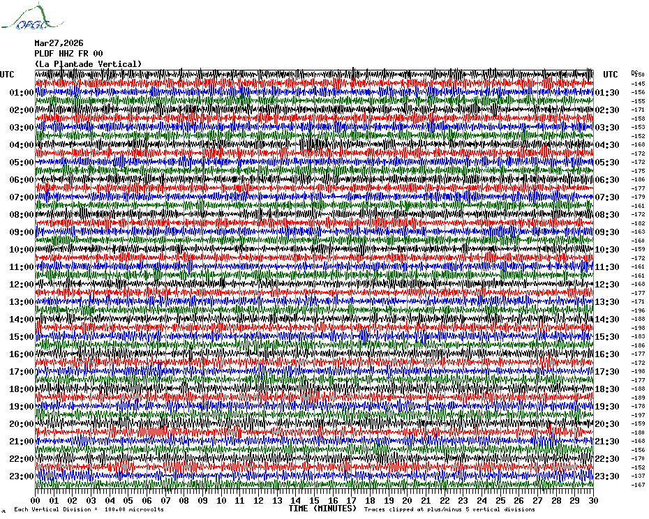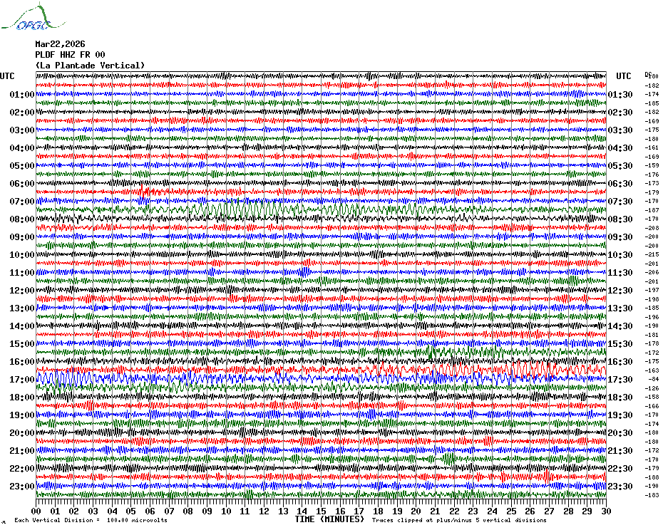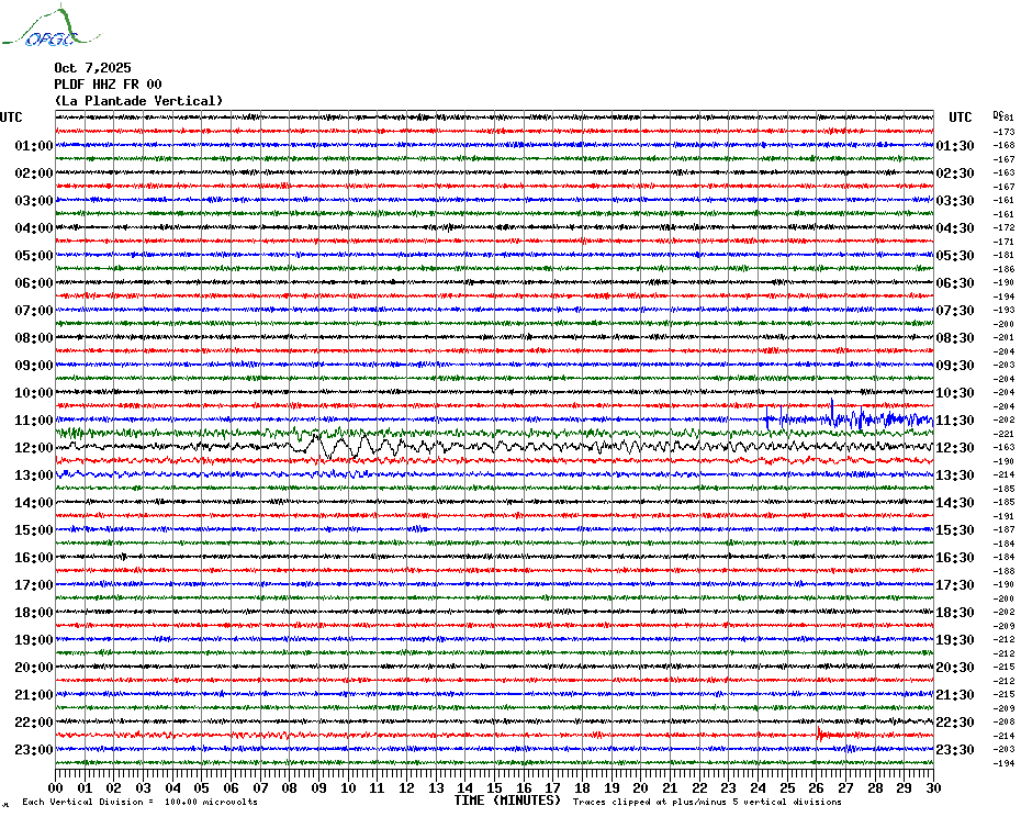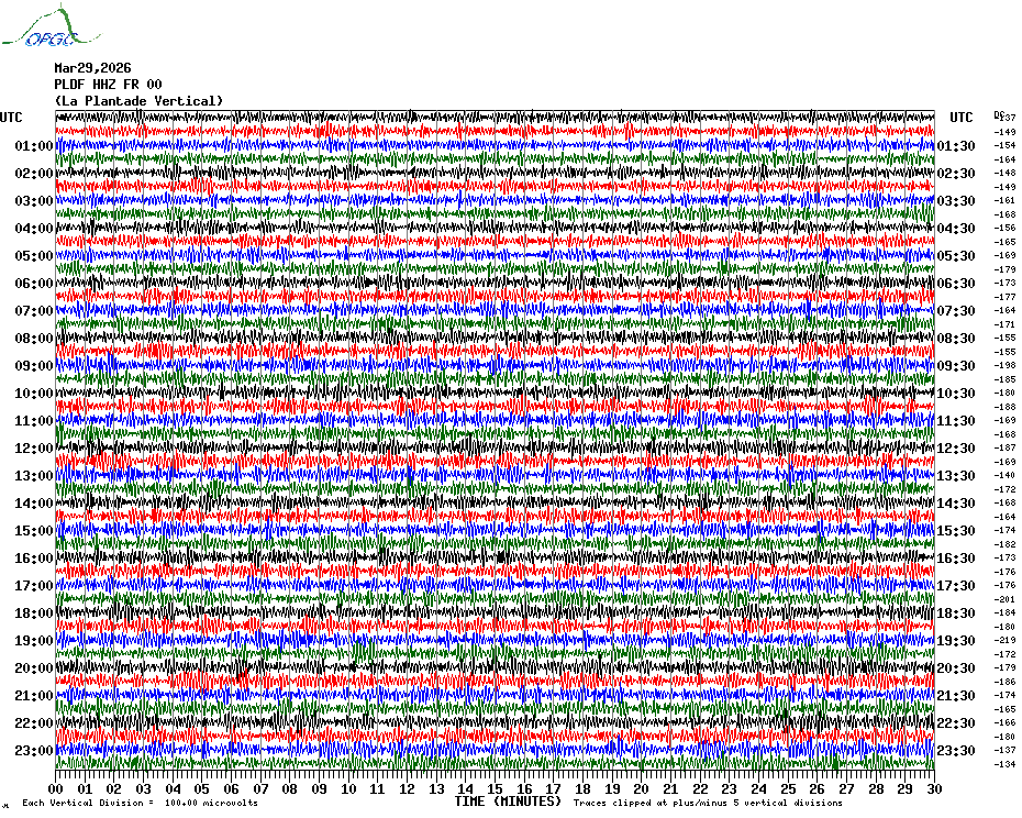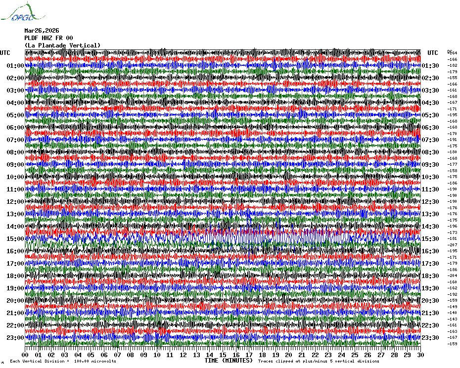 Sismogrammes du Réseau Sismologique Auvergne par fenêtre de 24h