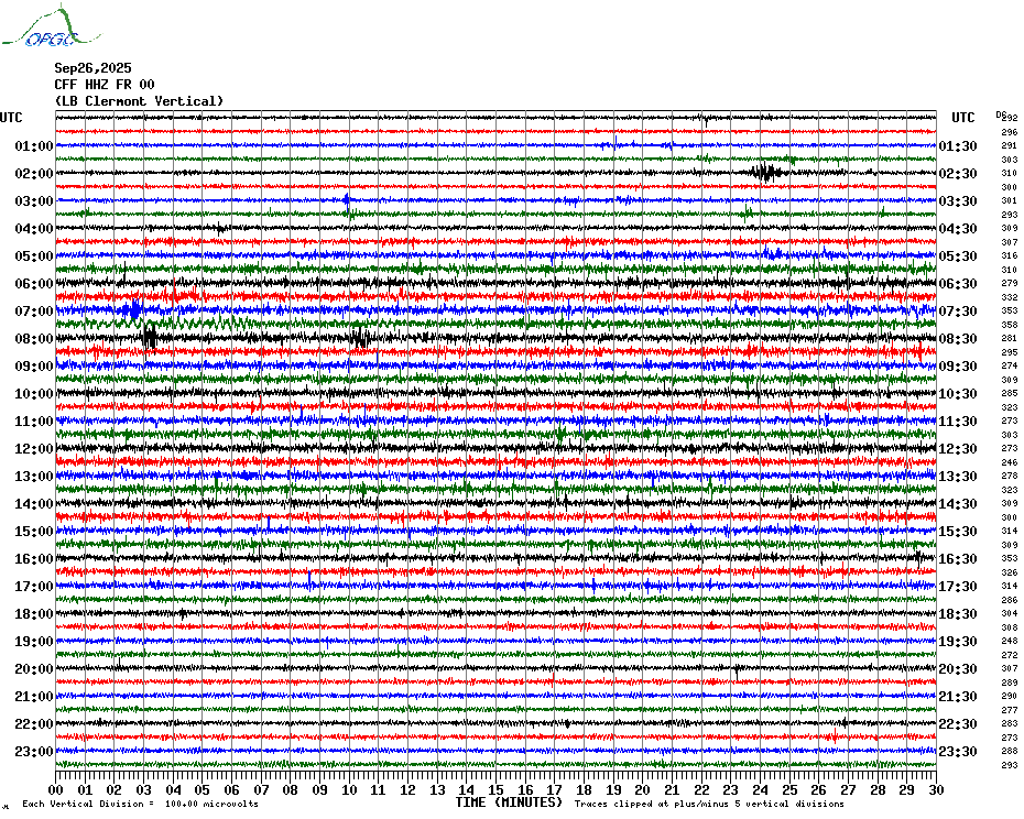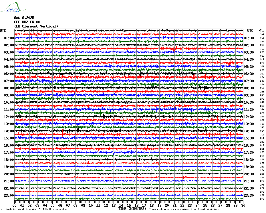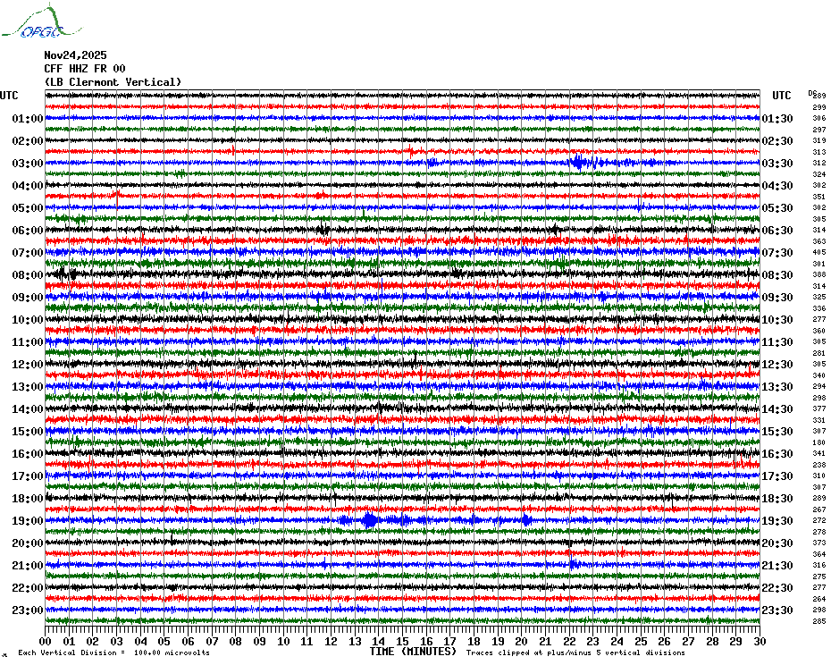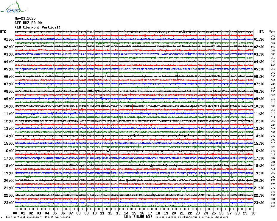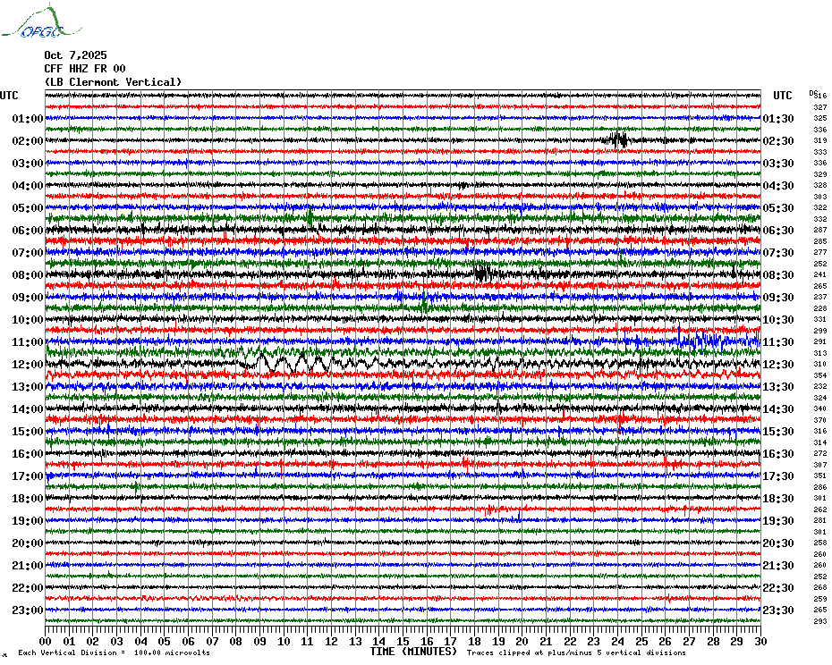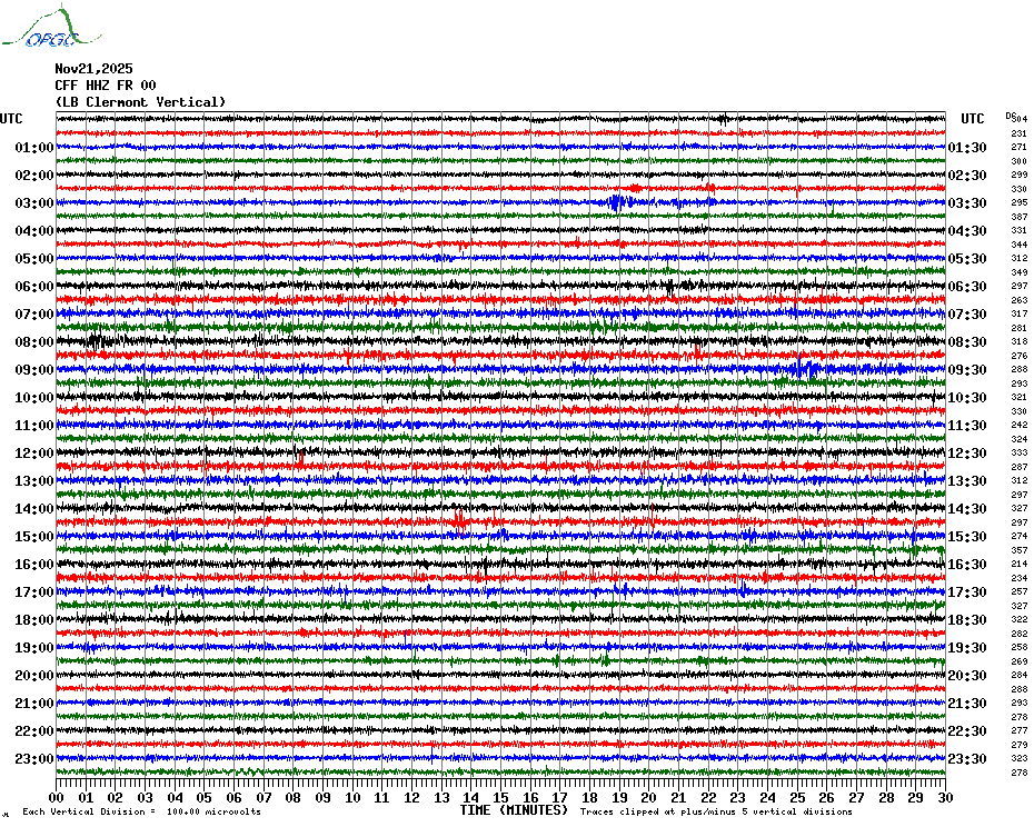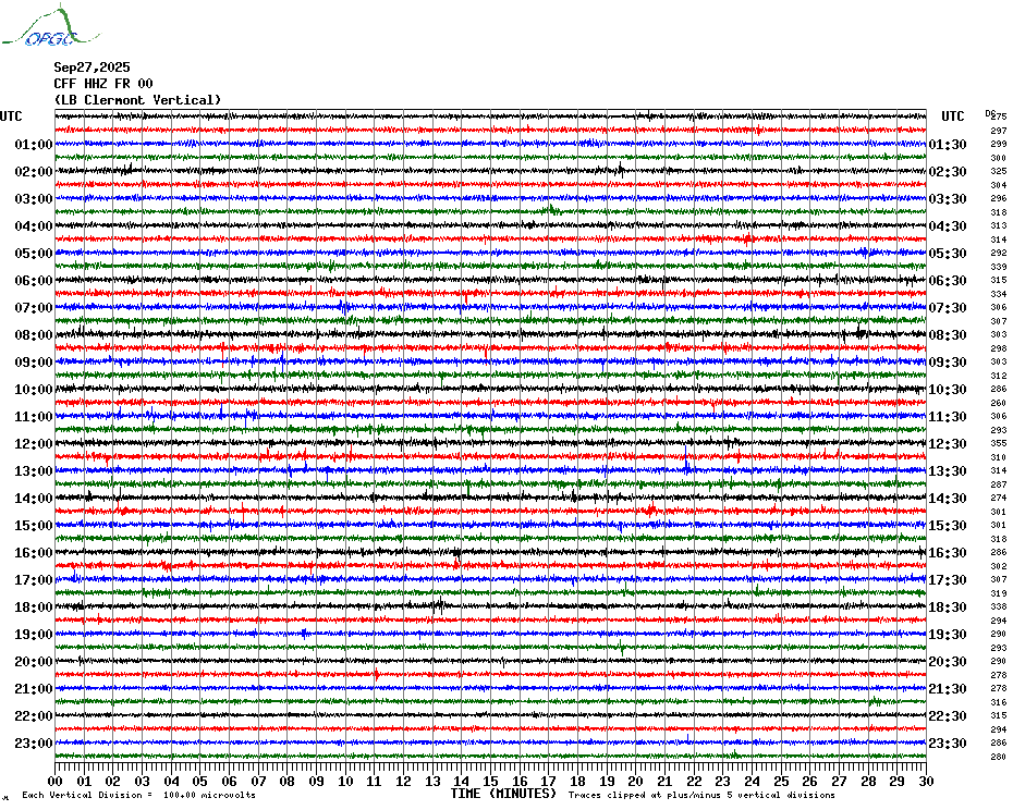 Sismogrammes du Réseau Sismologique Auvergne par fenêtre de 24h