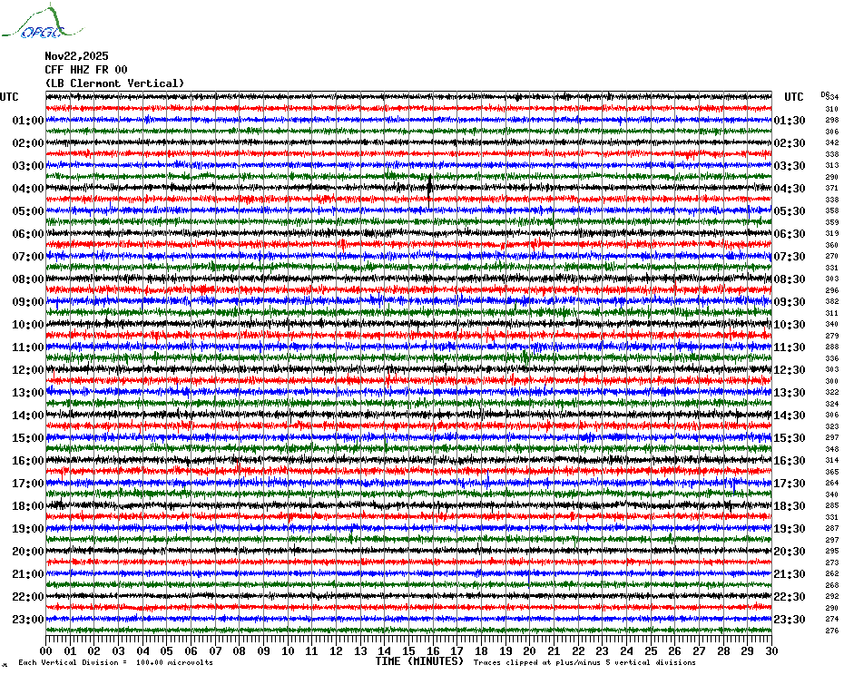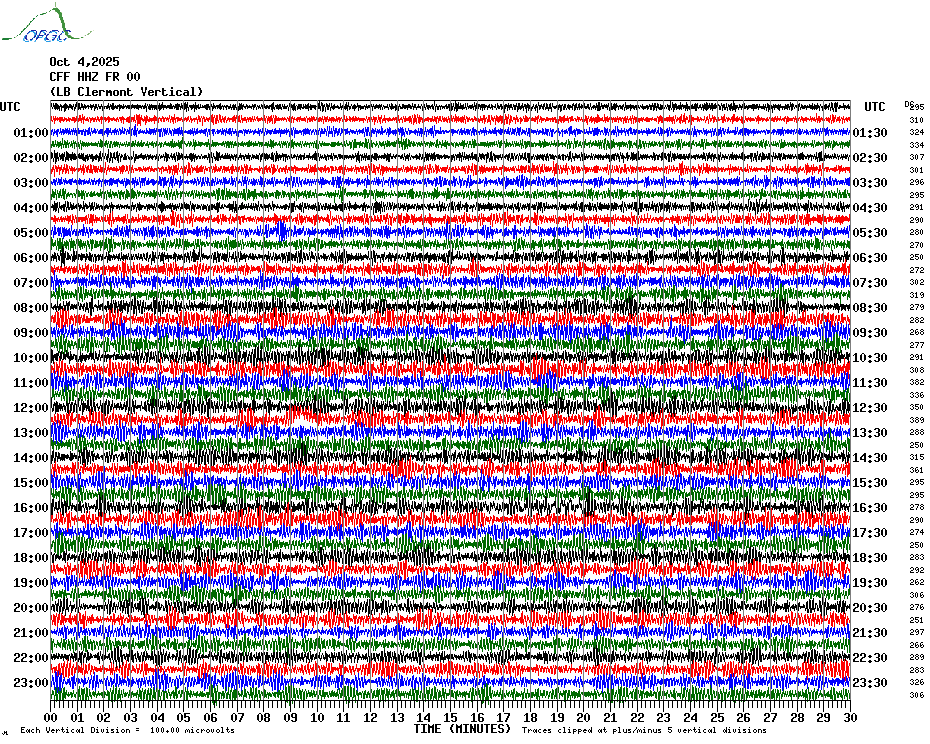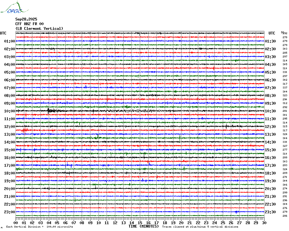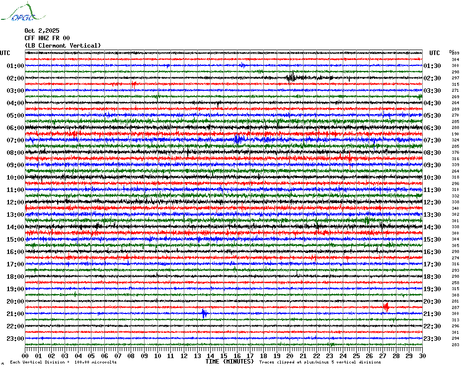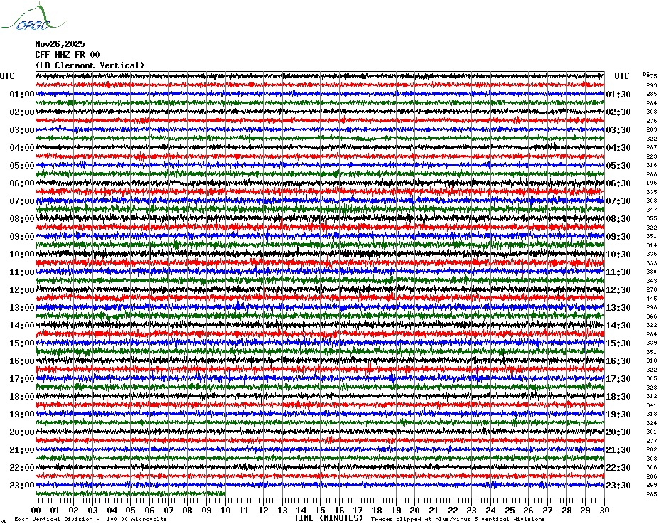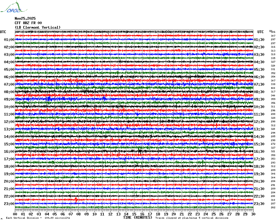 Sismogrammes du Réseau Sismologique Auvergne par fenêtre de 24h