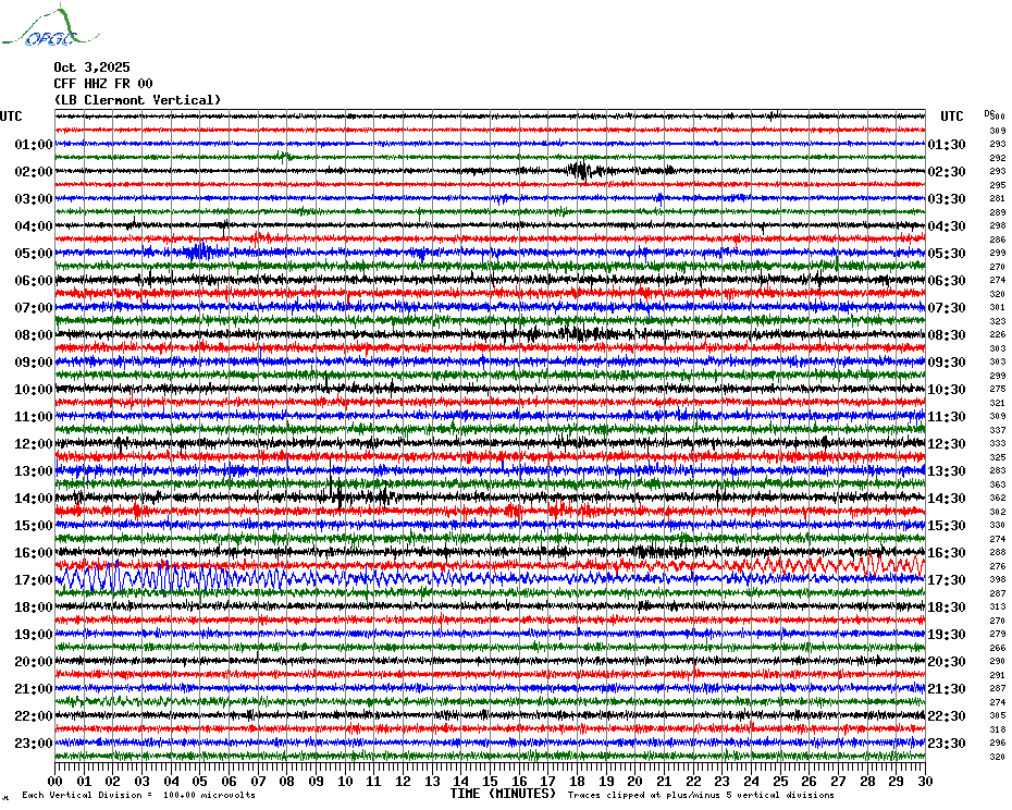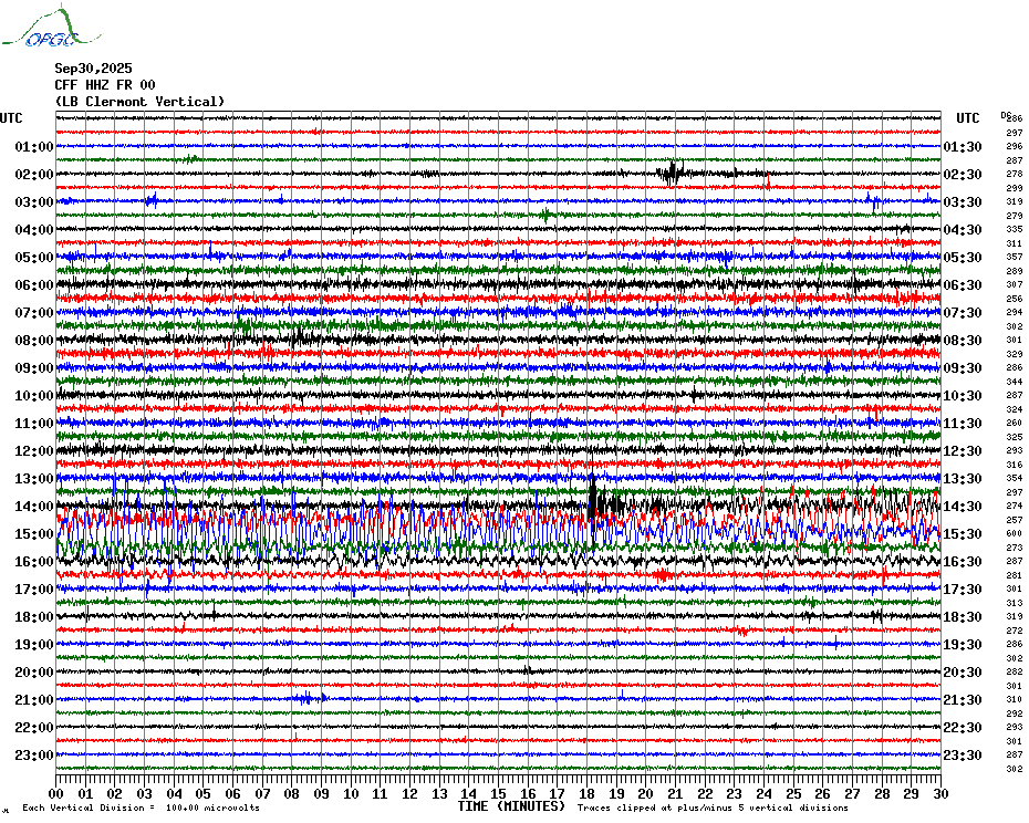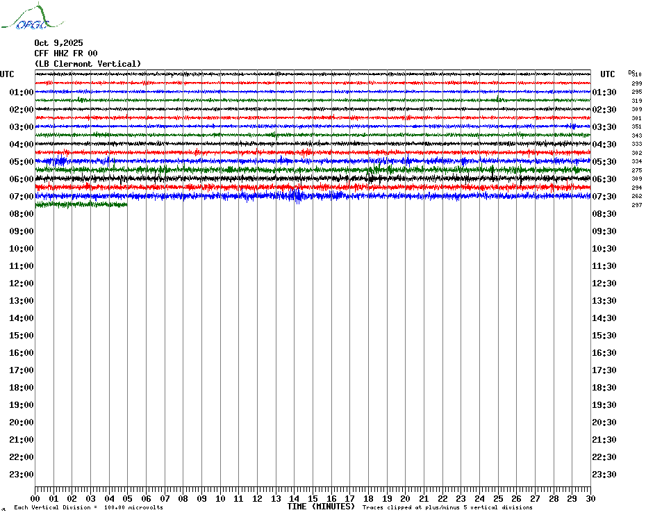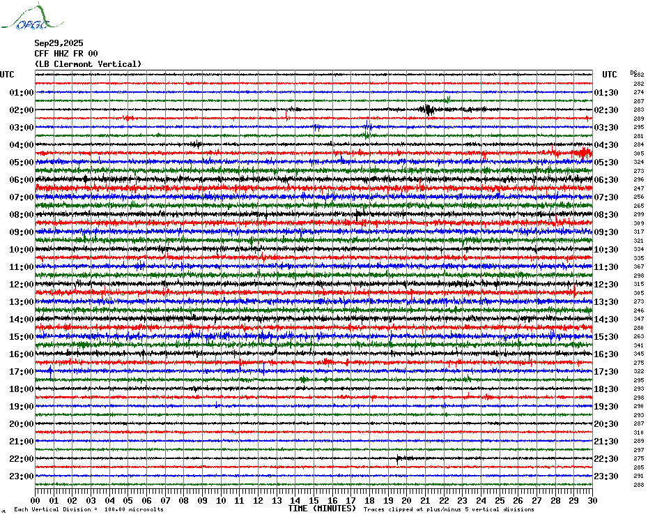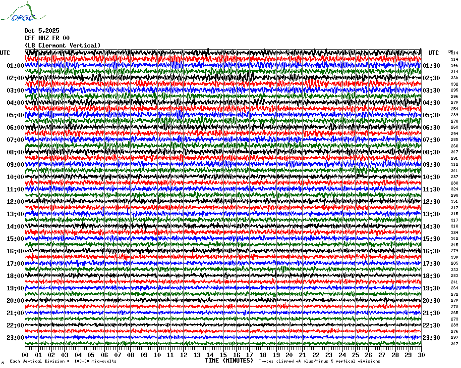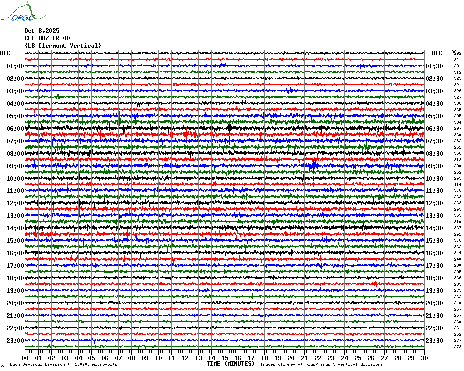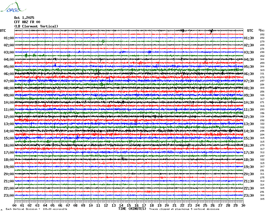 Sismogrammes du Réseau Sismologique Auvergne par fenêtre de 24h
