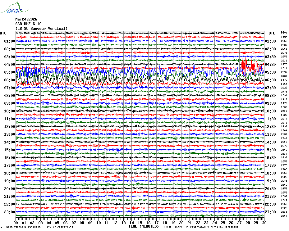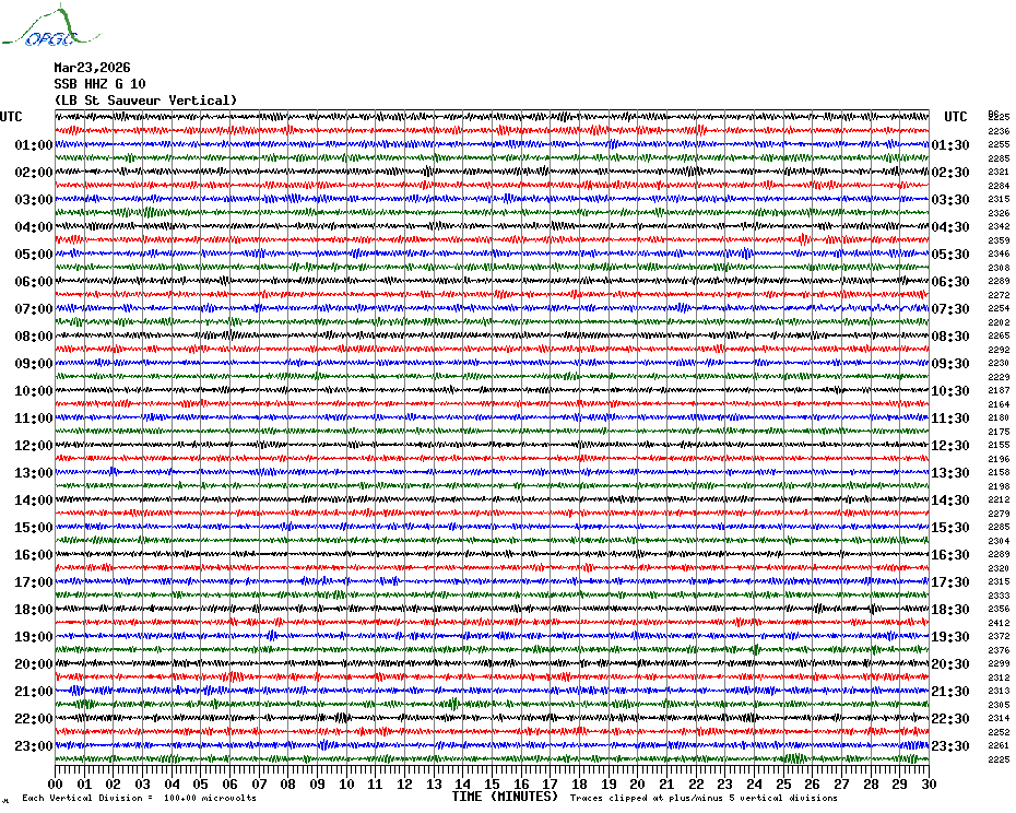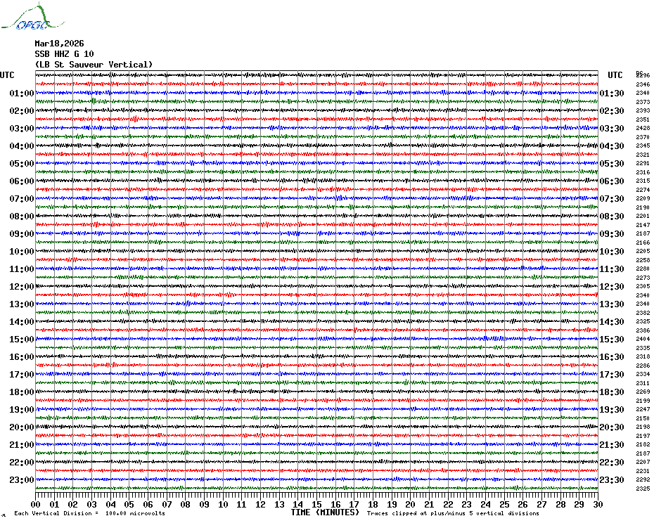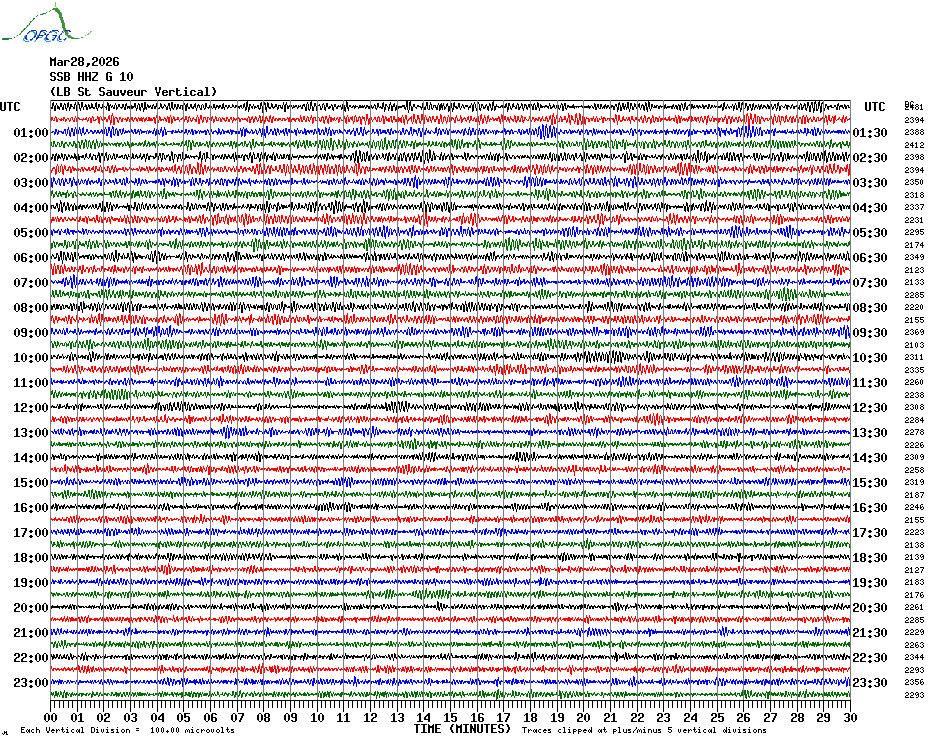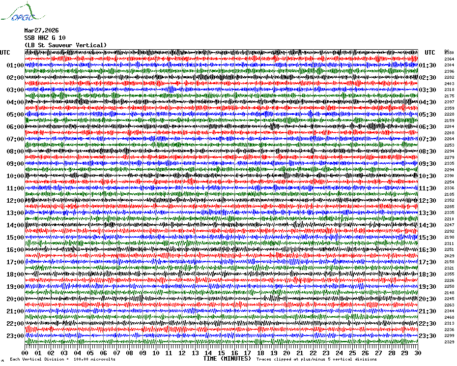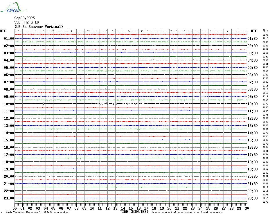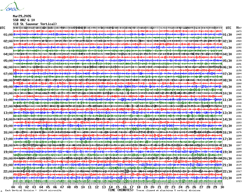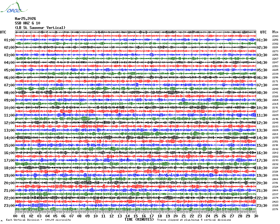 Sismogrammes du Réseau Sismologique Auvergne par fenêtre de 24h