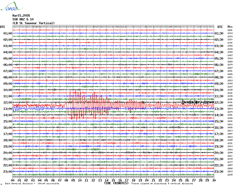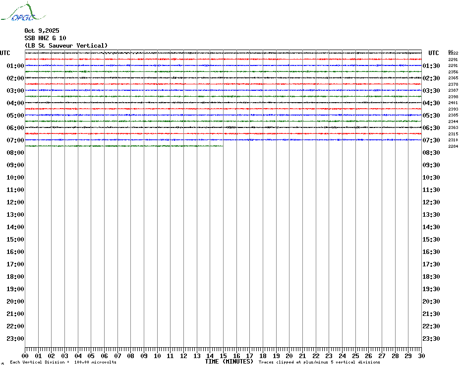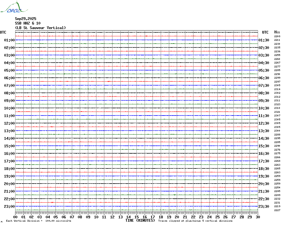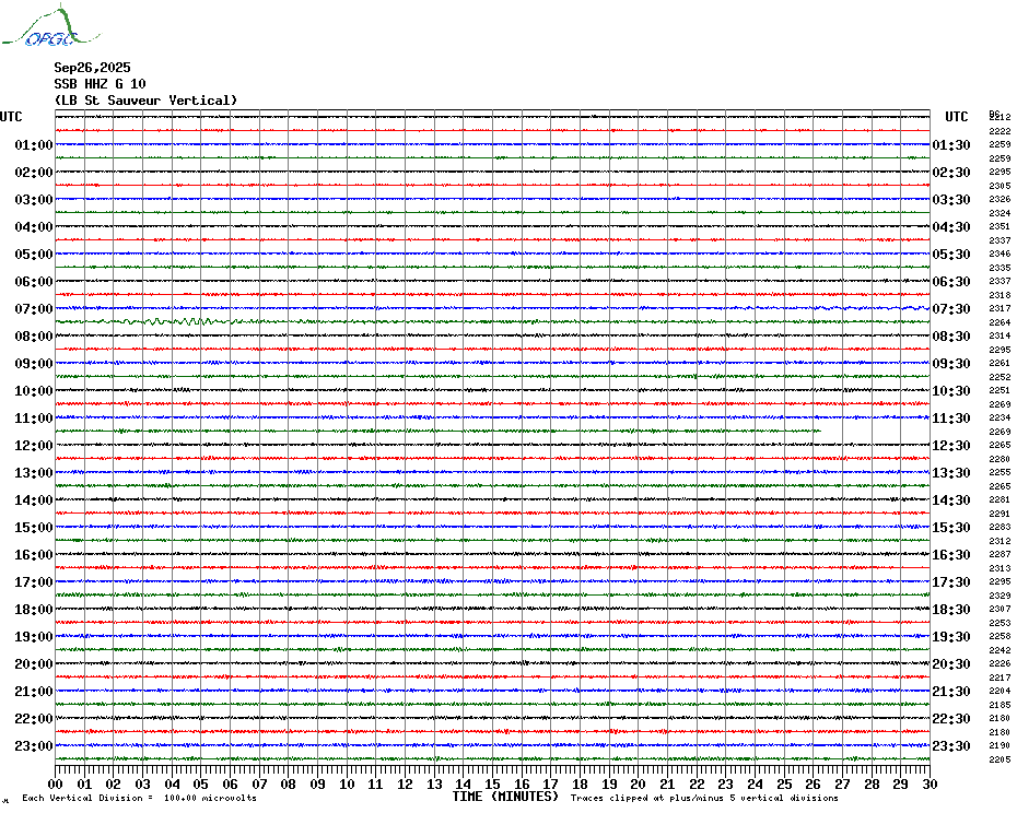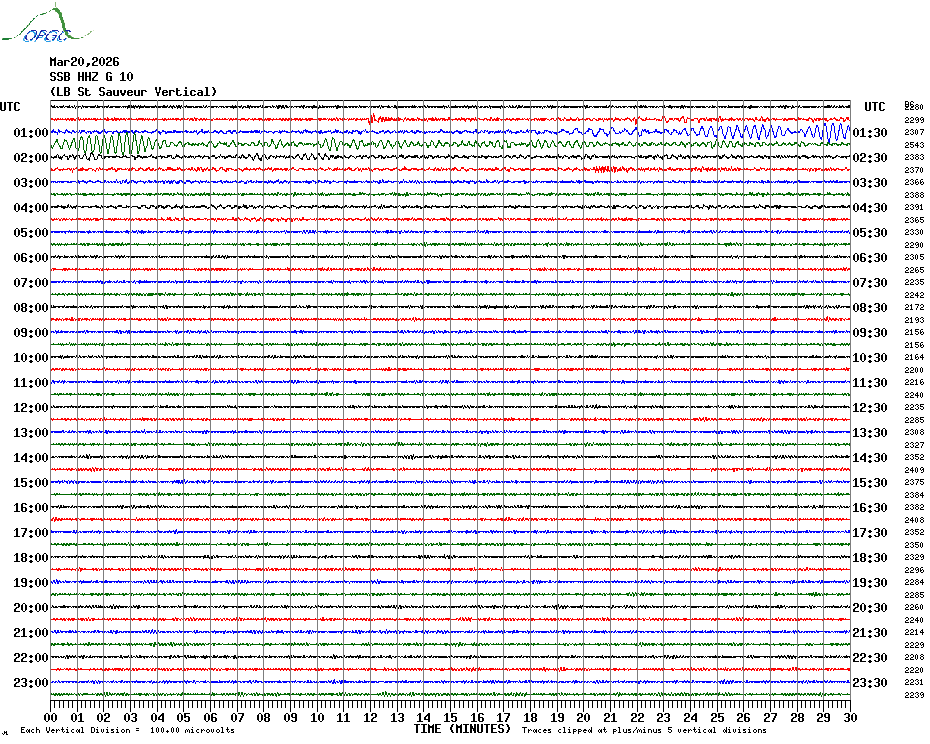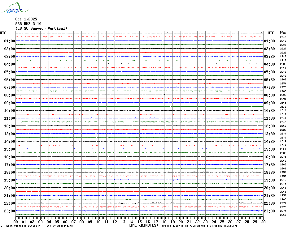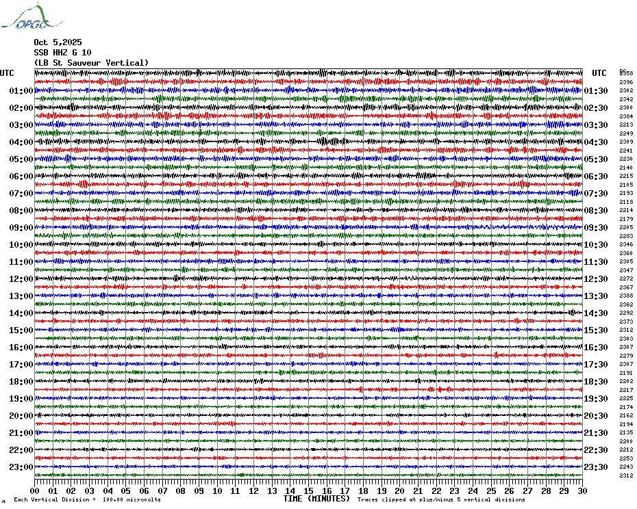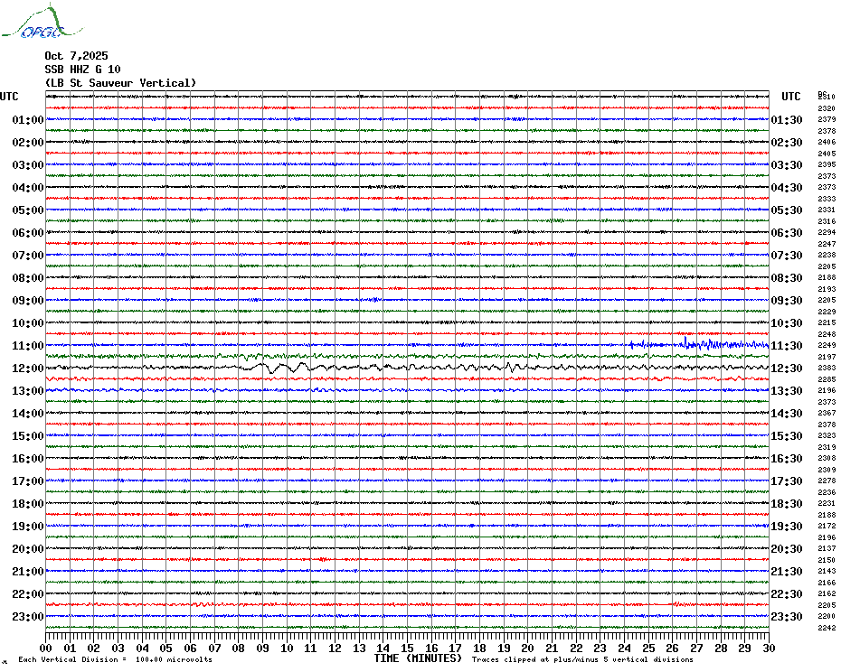 Sismogrammes du Réseau Sismologique Auvergne par fenêtre de 24h