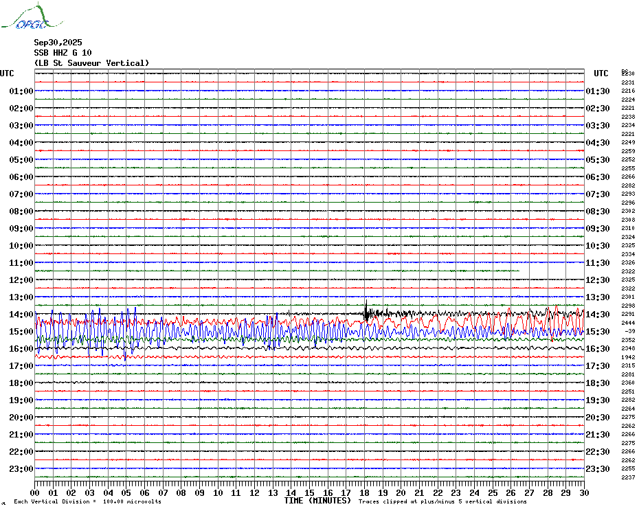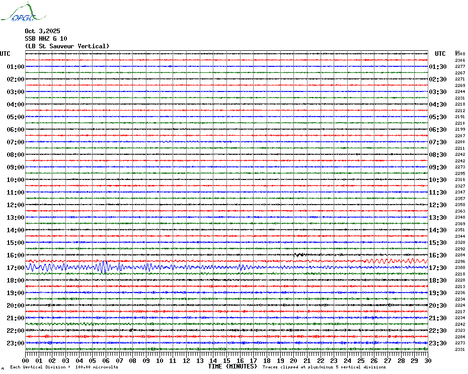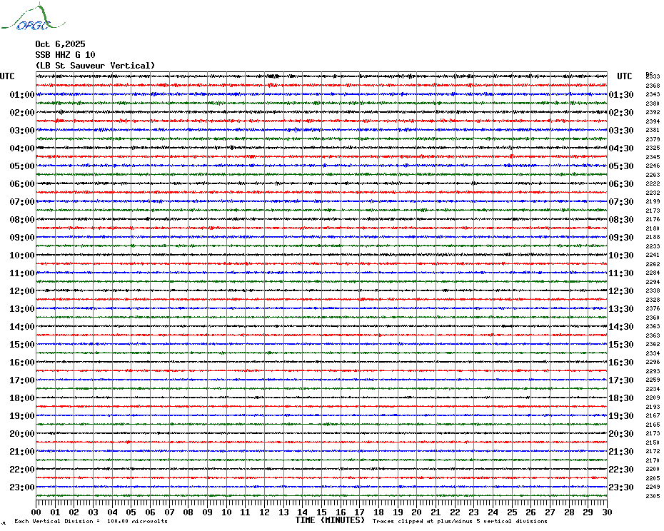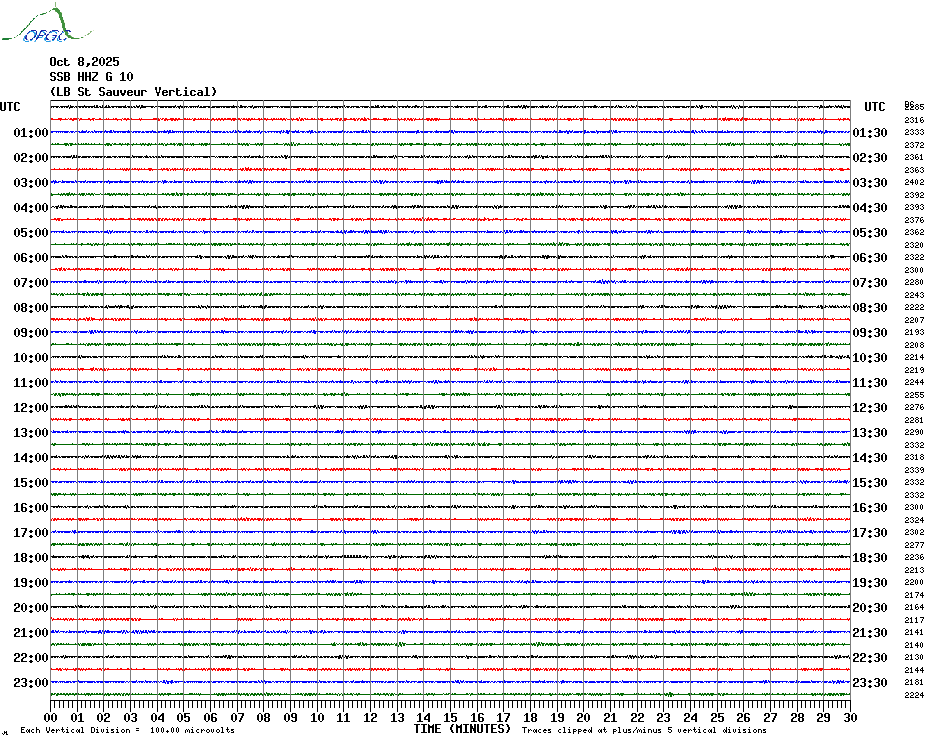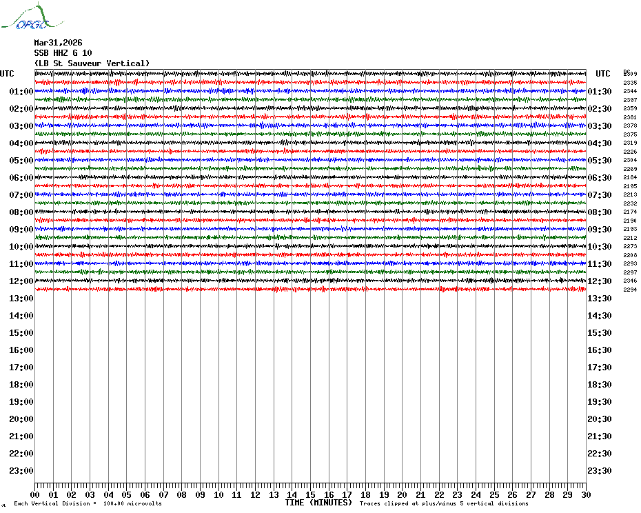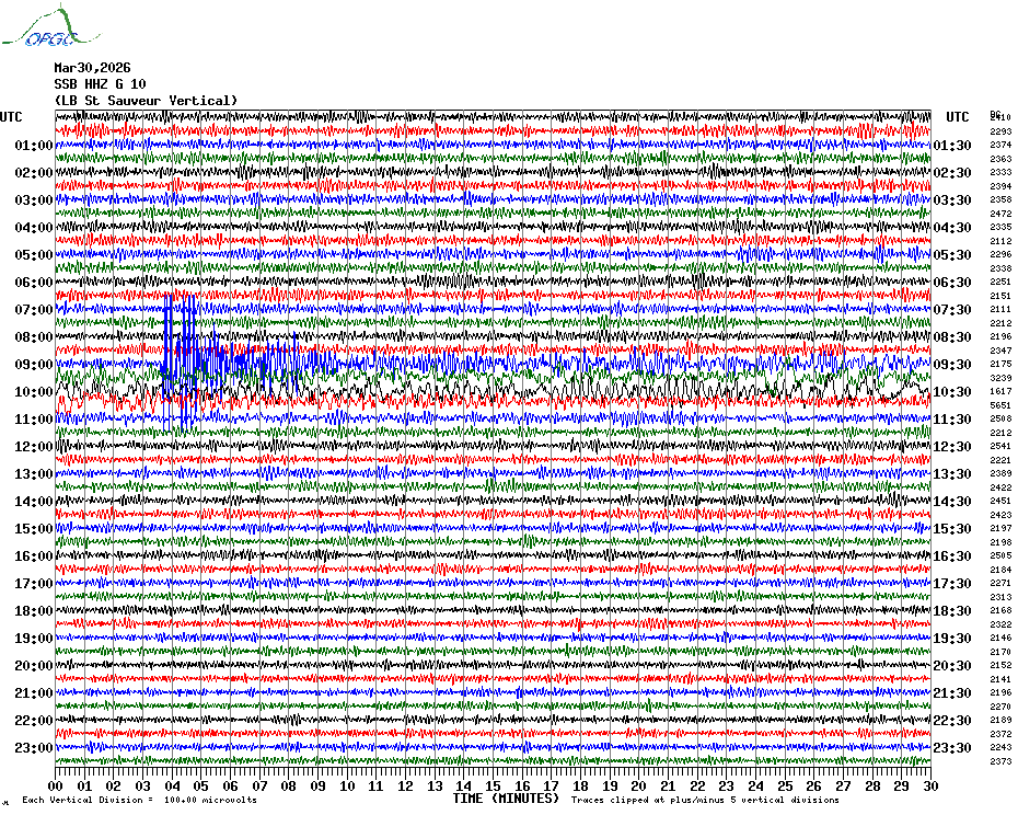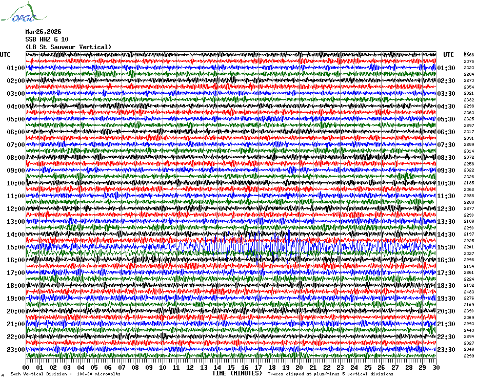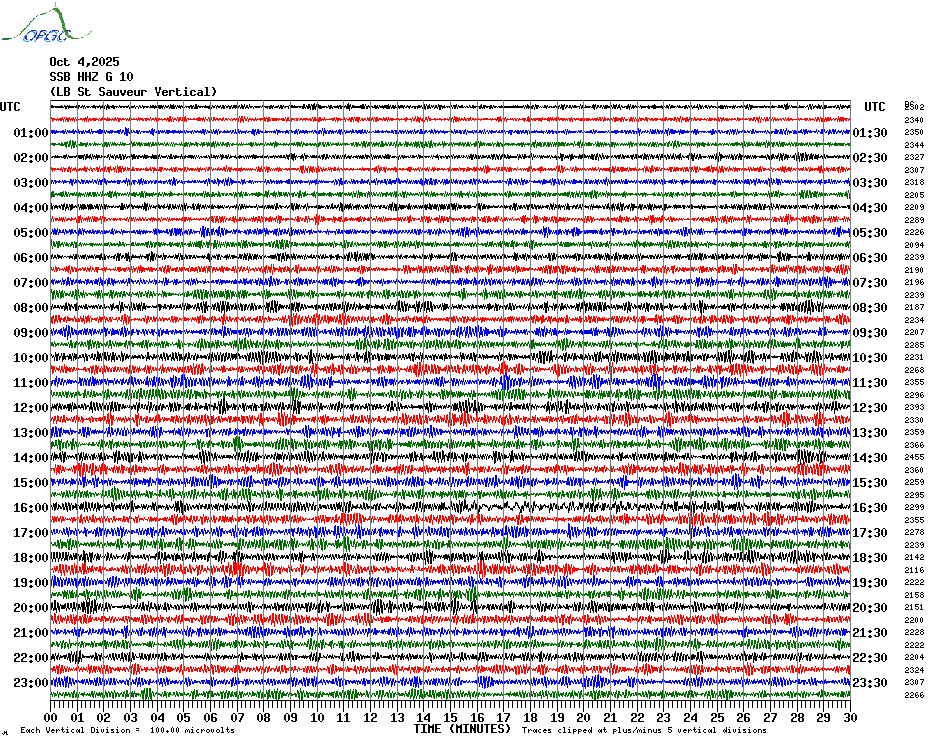 Sismogrammes du Réseau Sismologique Auvergne par fenêtre de 24h