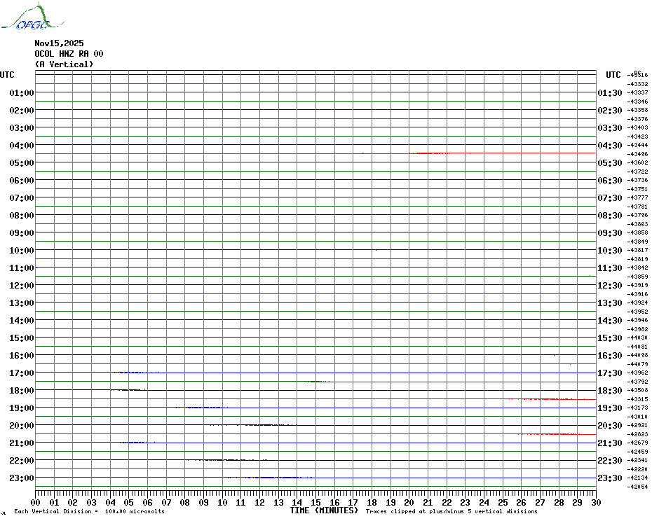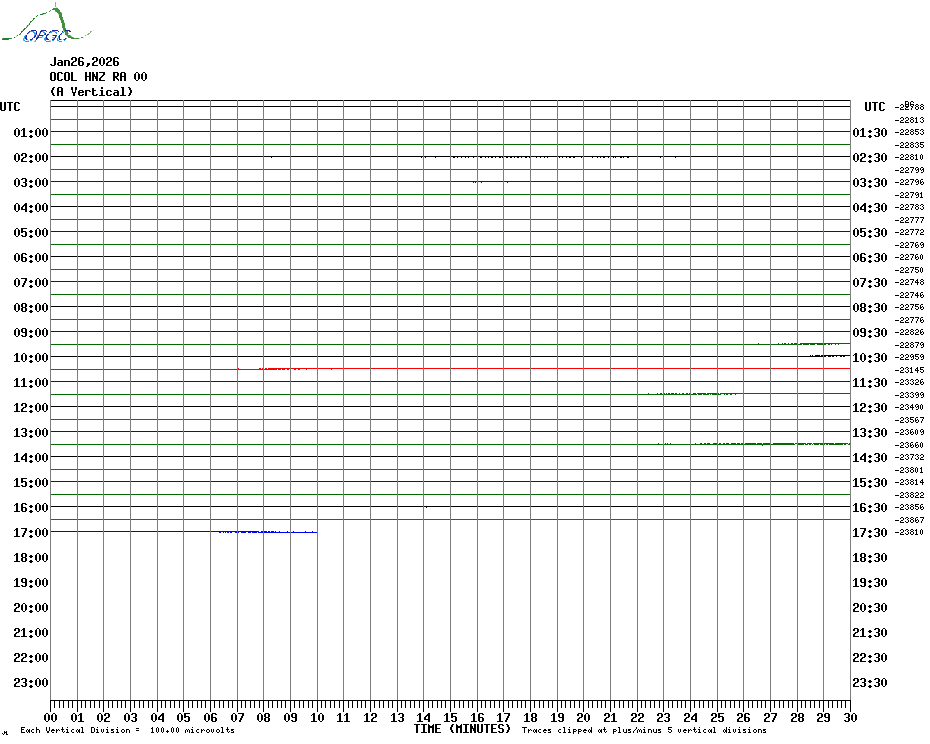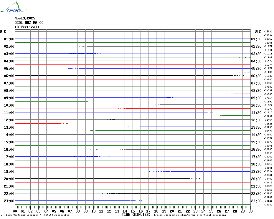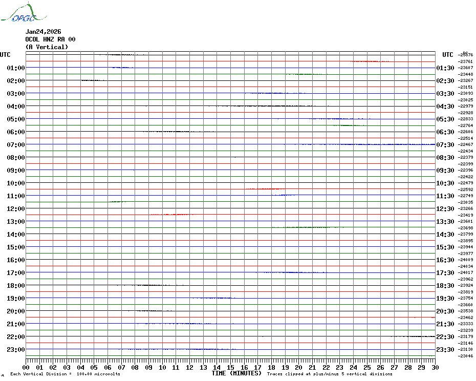 Sismogrammes du Réseau Sismologique Auvergne par fenêtre de 24h