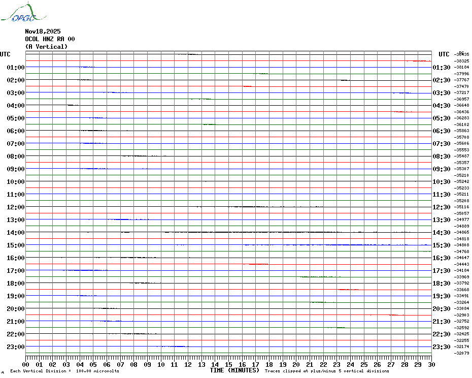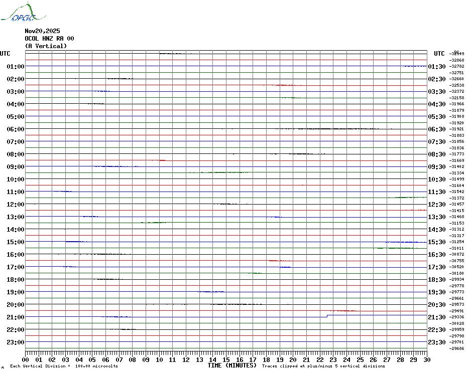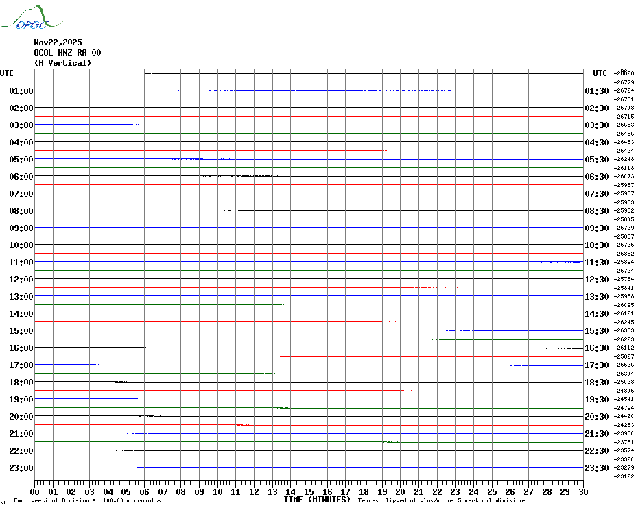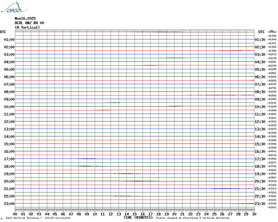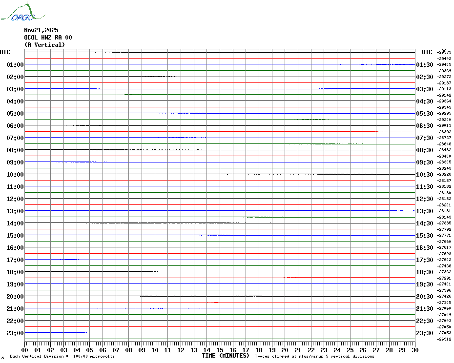 Sismogrammes du Réseau Sismologique Auvergne par fenêtre de 24h