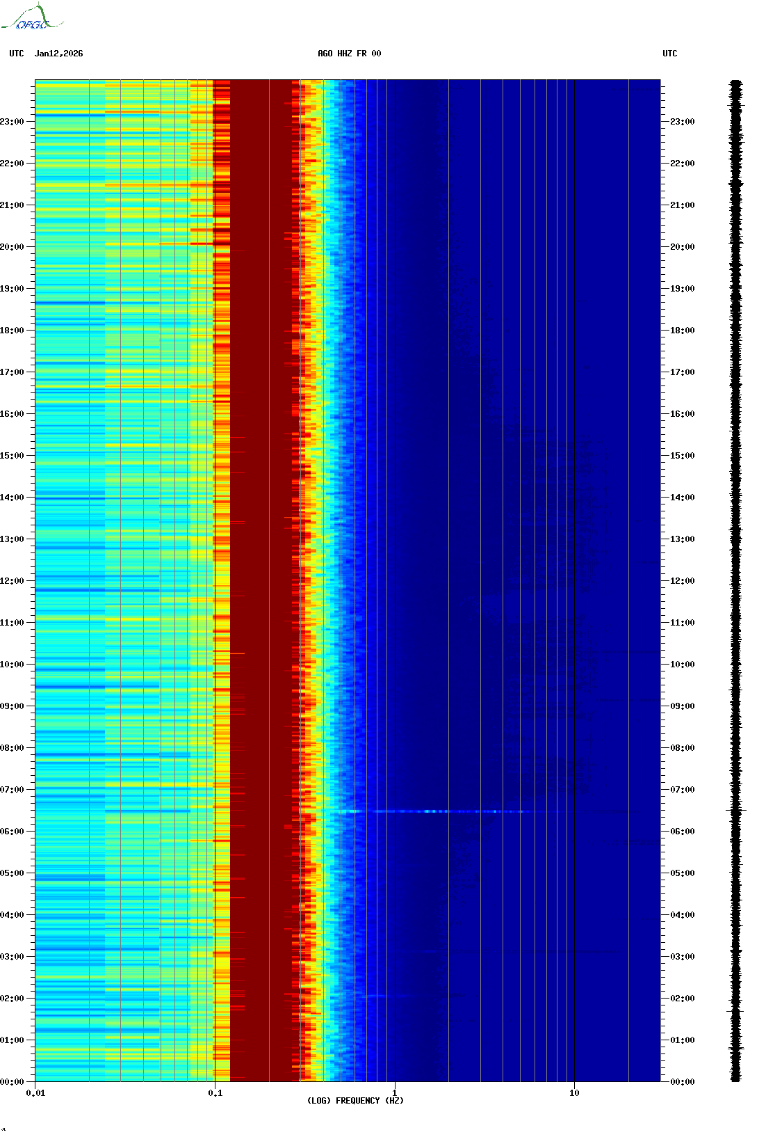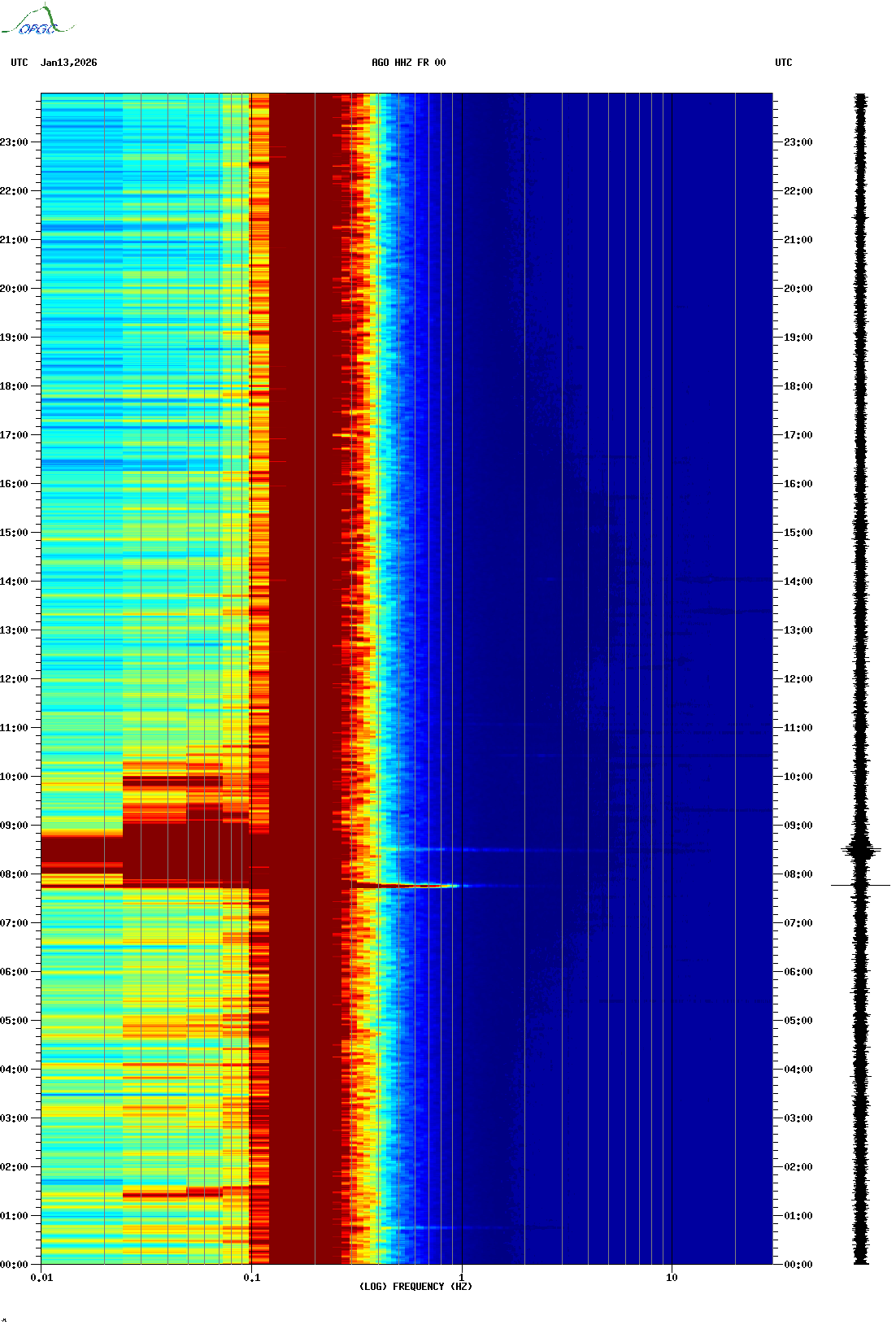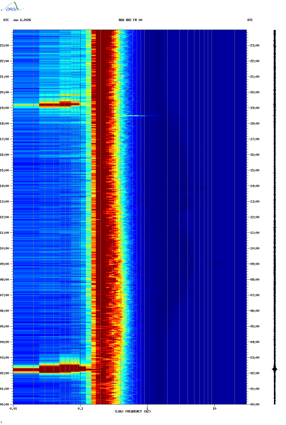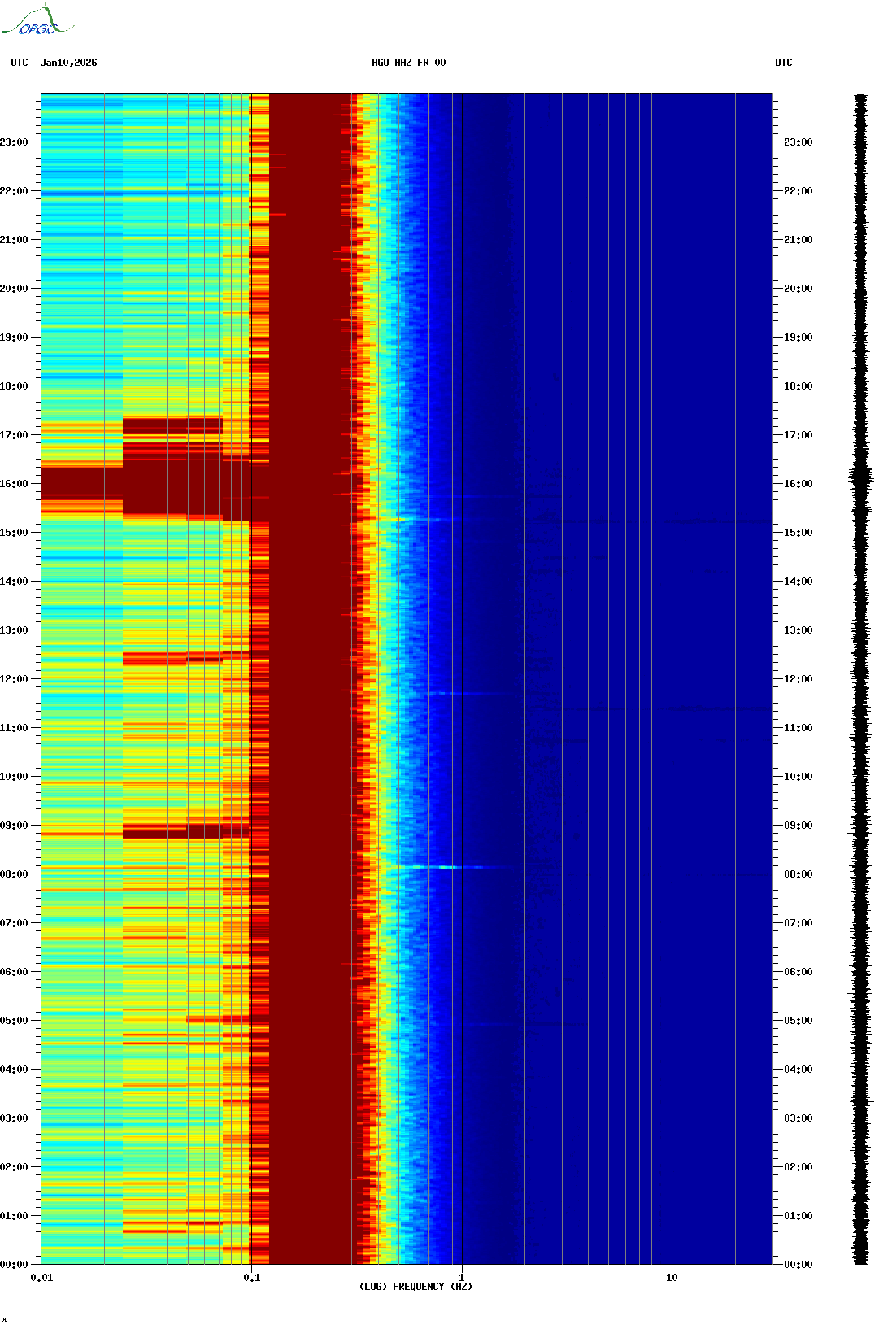 Spectrogrammes du Réseau Sismologique Auvergne-Charentes