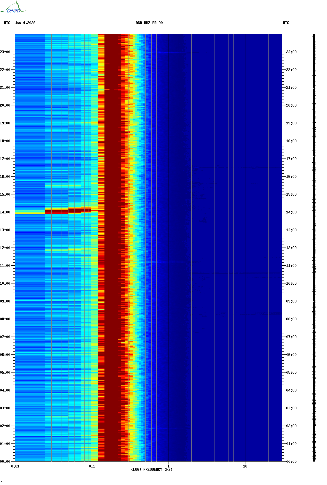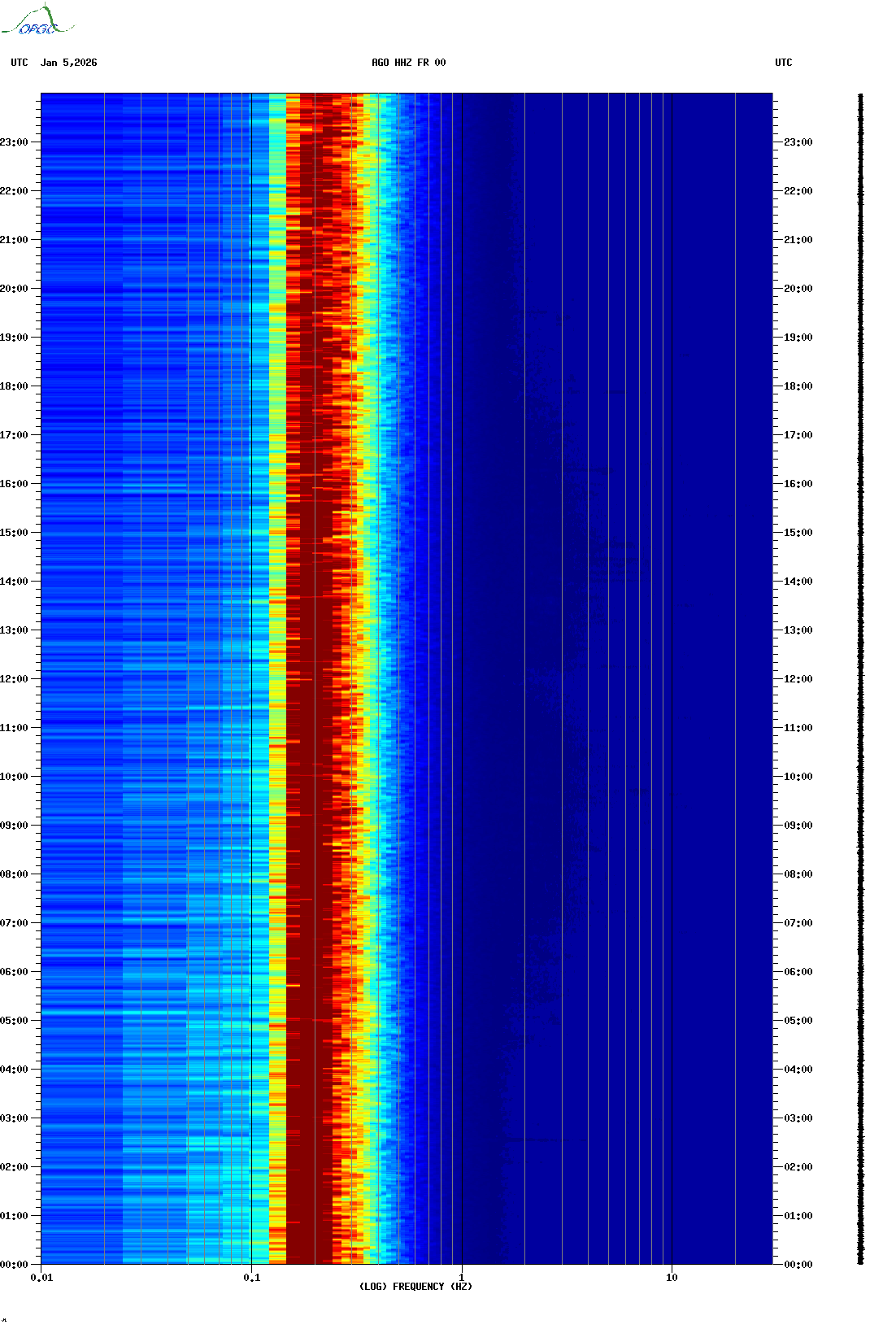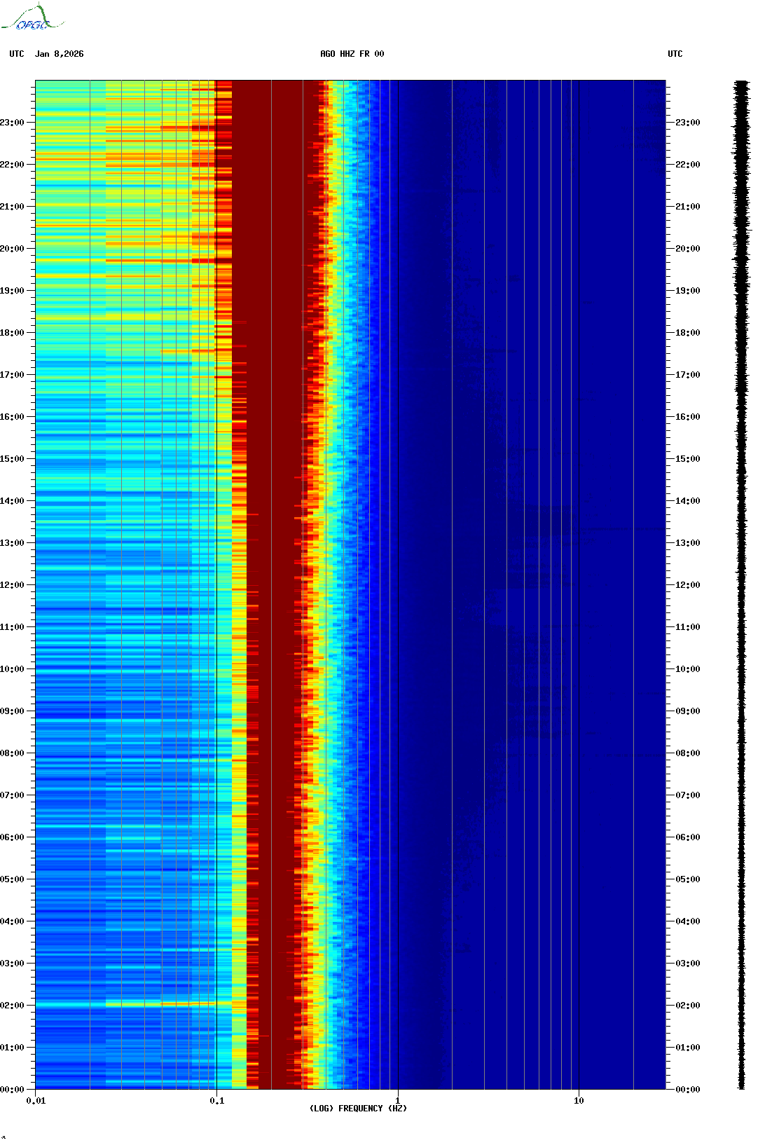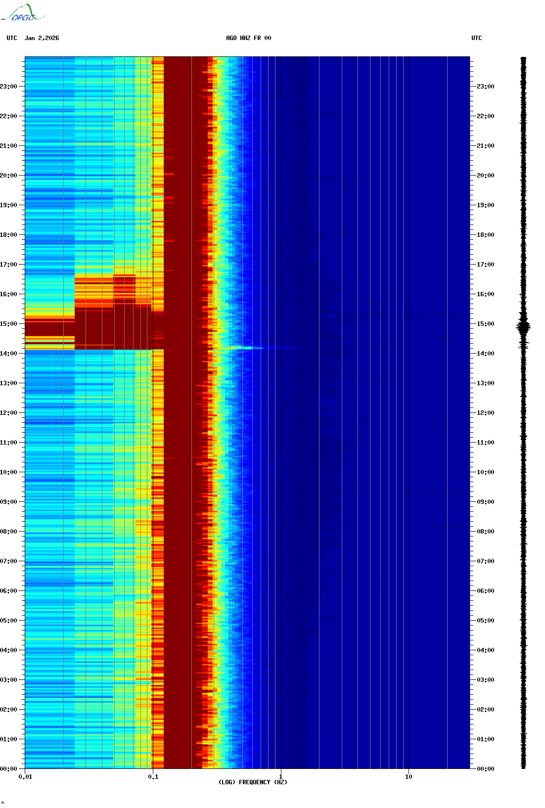 Spectrogrammes du Réseau Sismologique Auvergne-Charentes