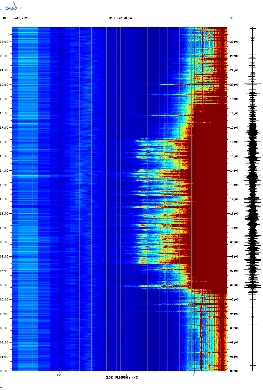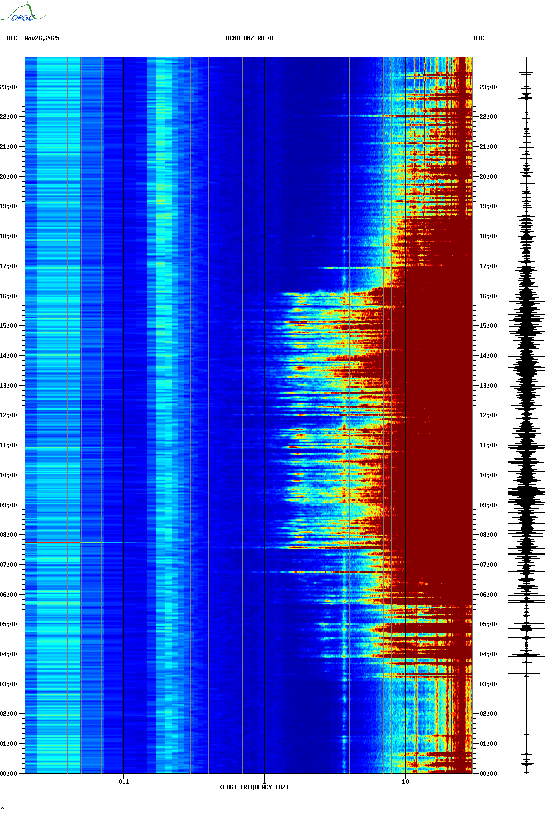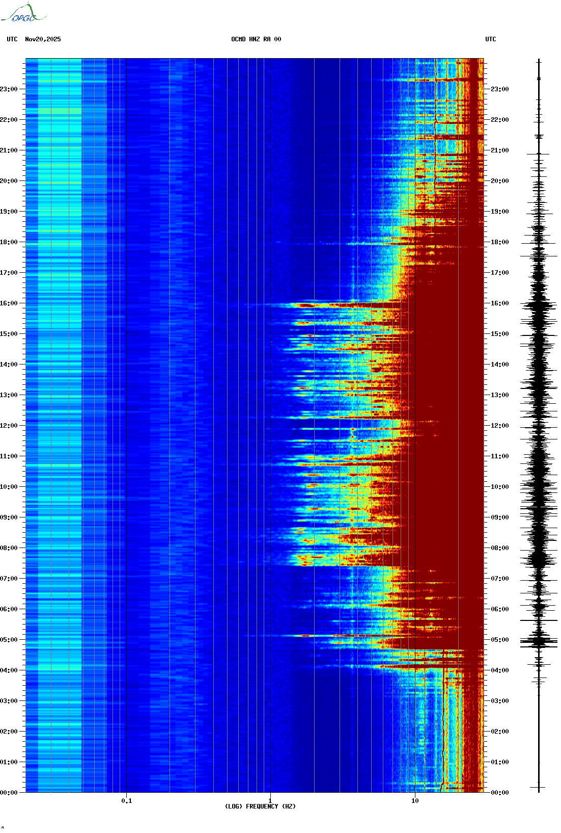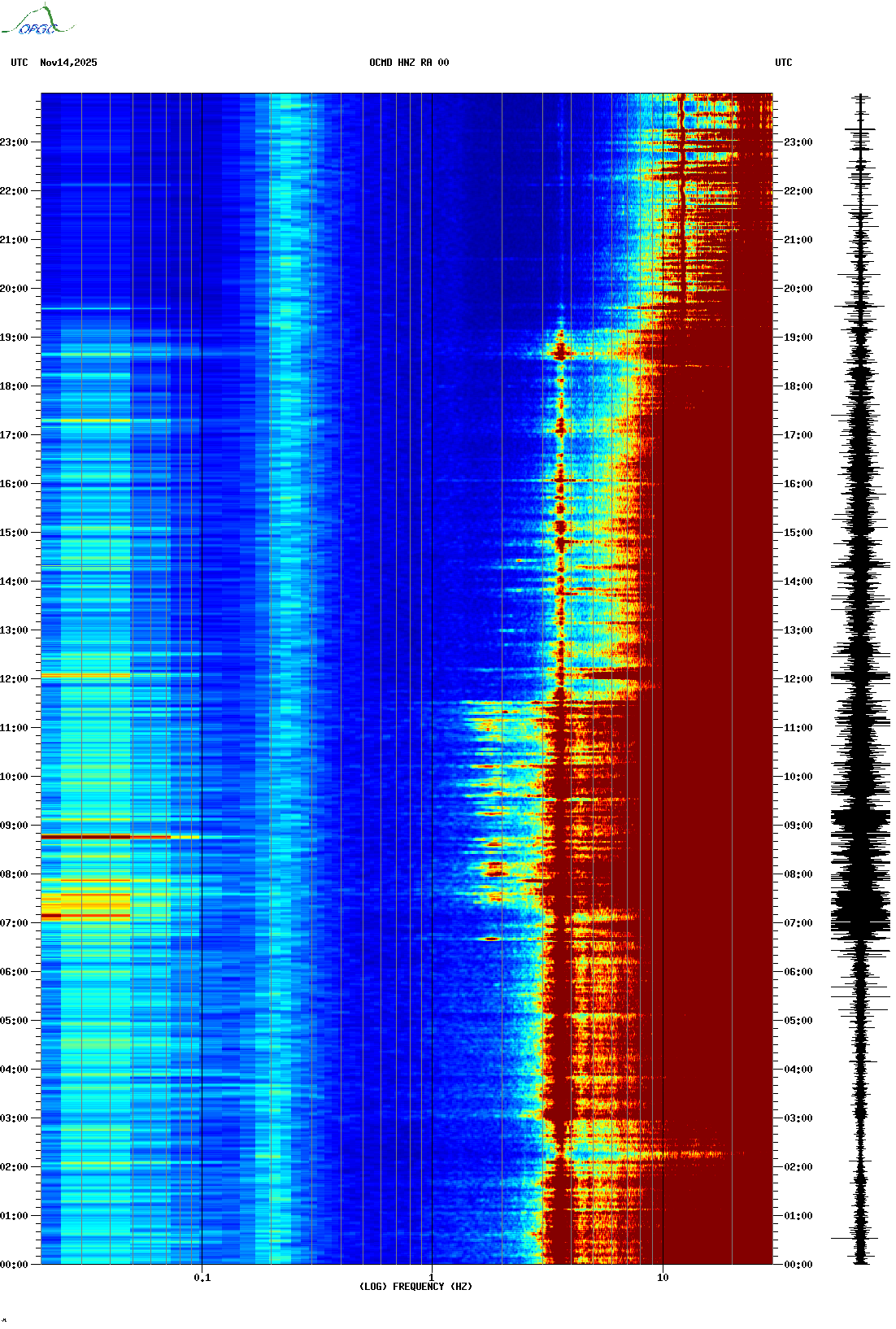 Spectrogrammes du Réseau Sismologique Auvergne-Charentes
