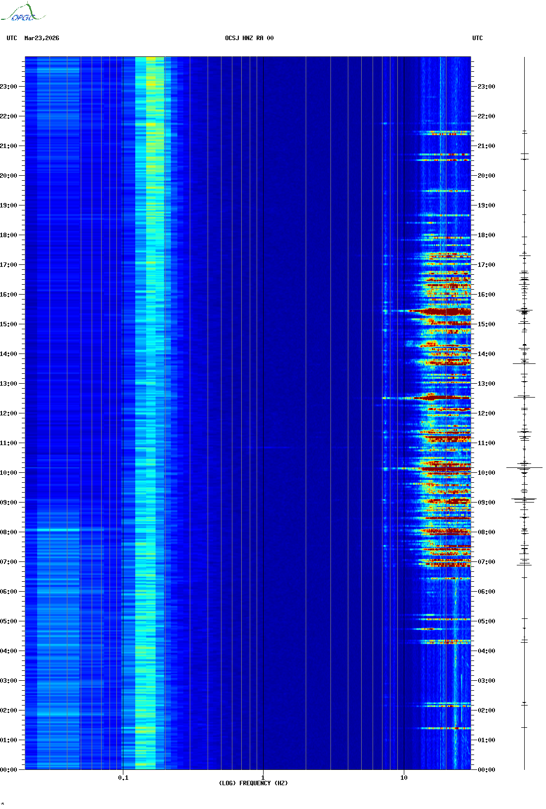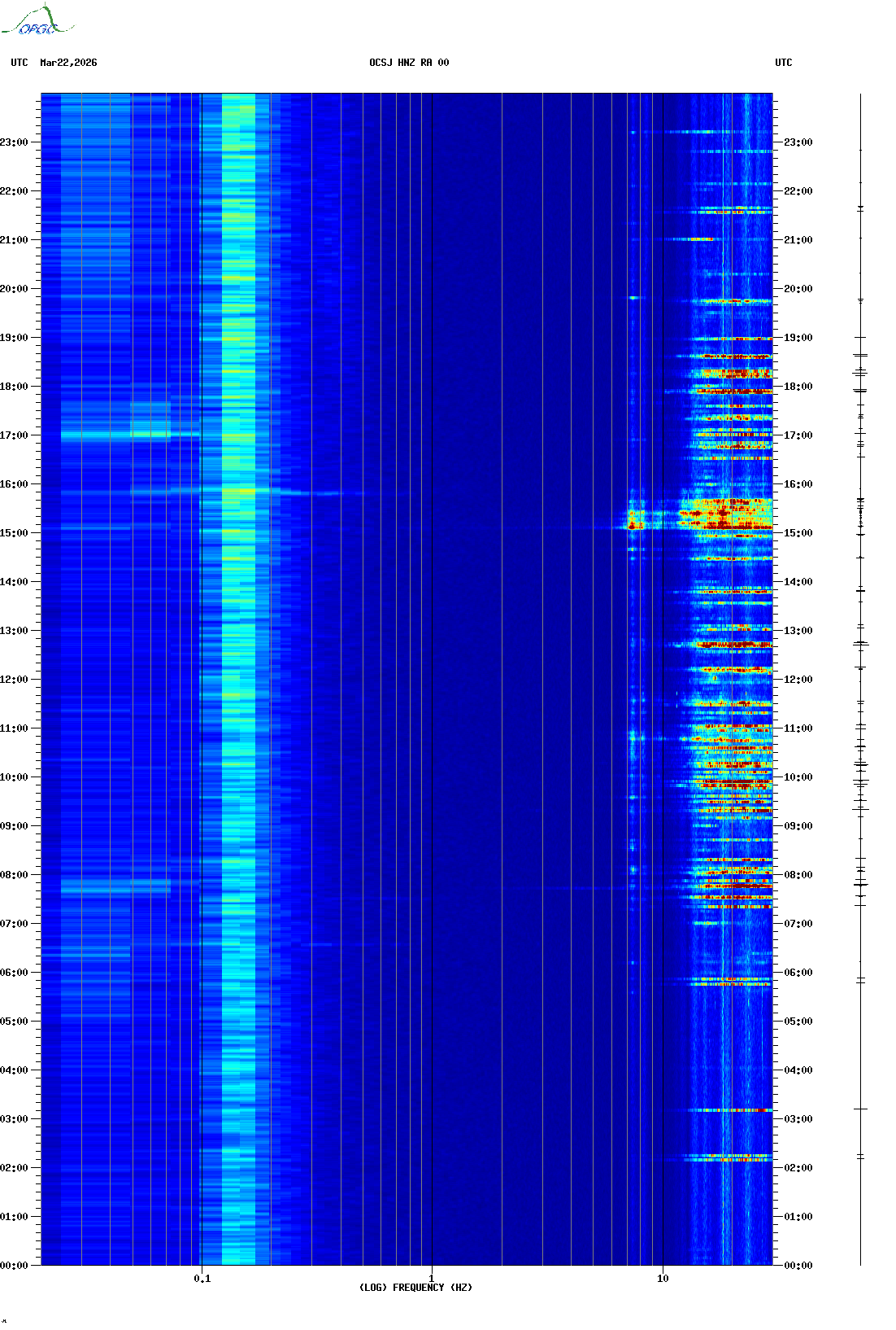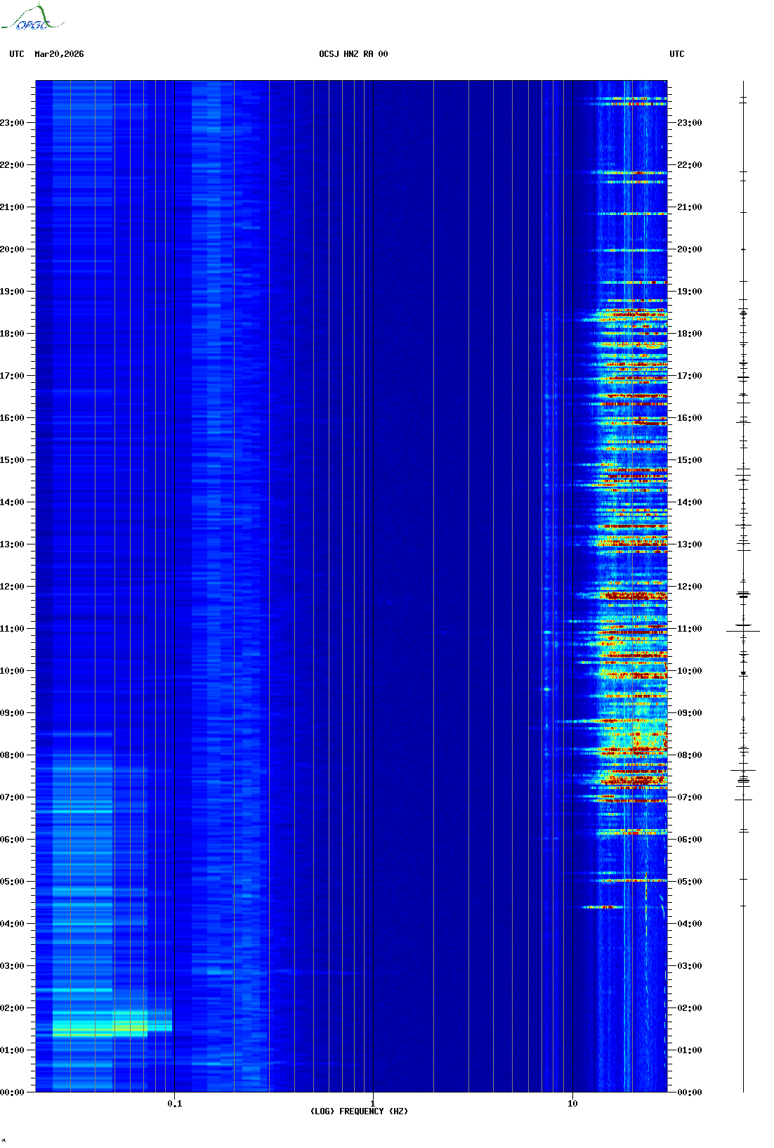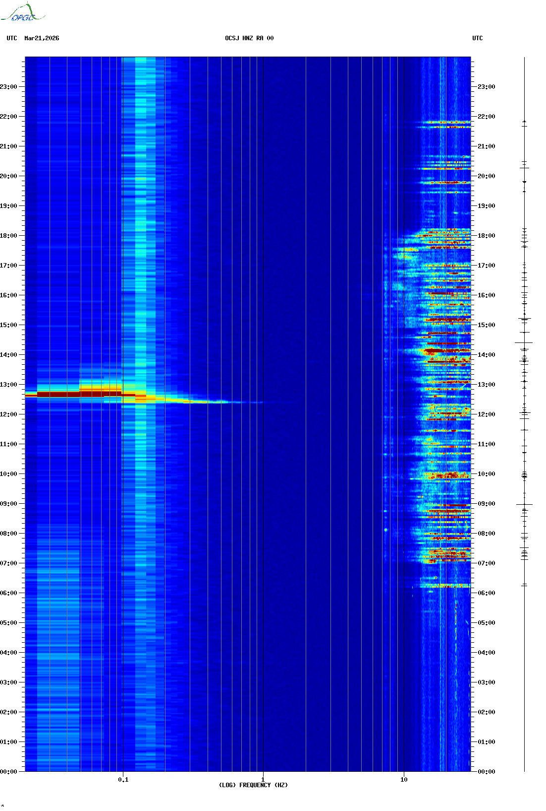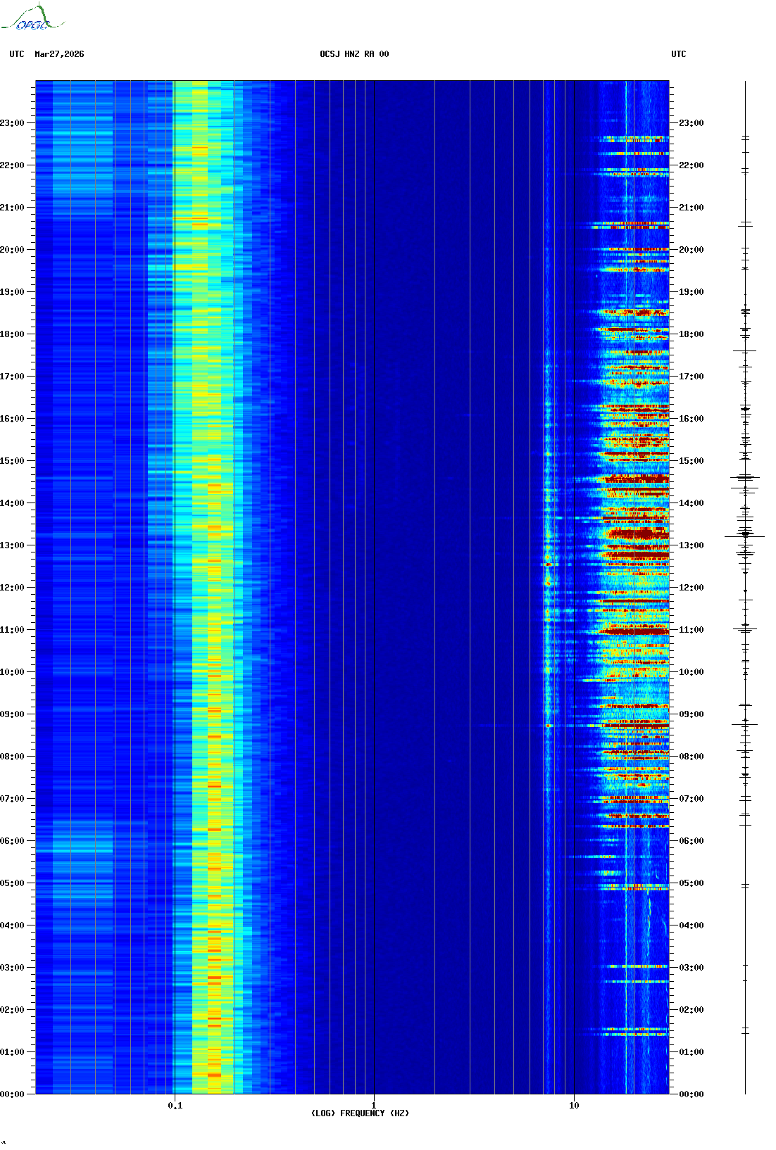 Spectrogrammes du Réseau Sismologique Auvergne-Charentes
