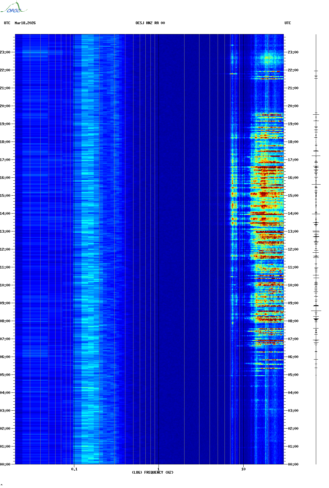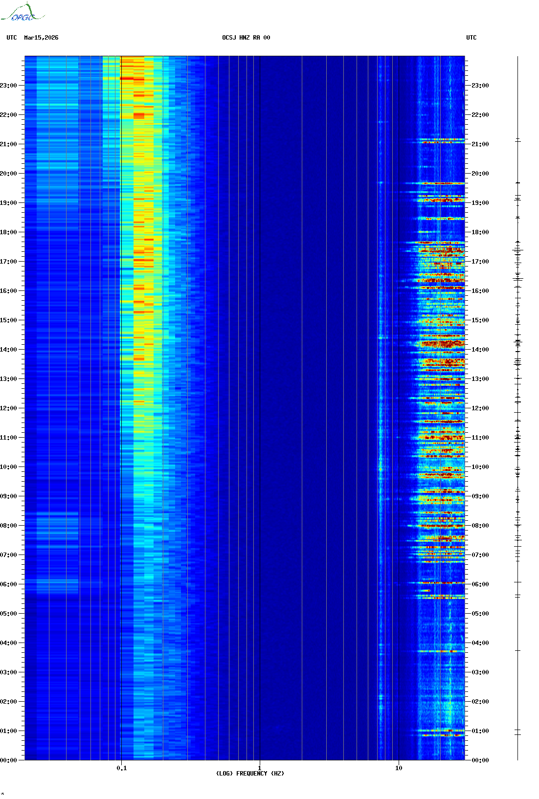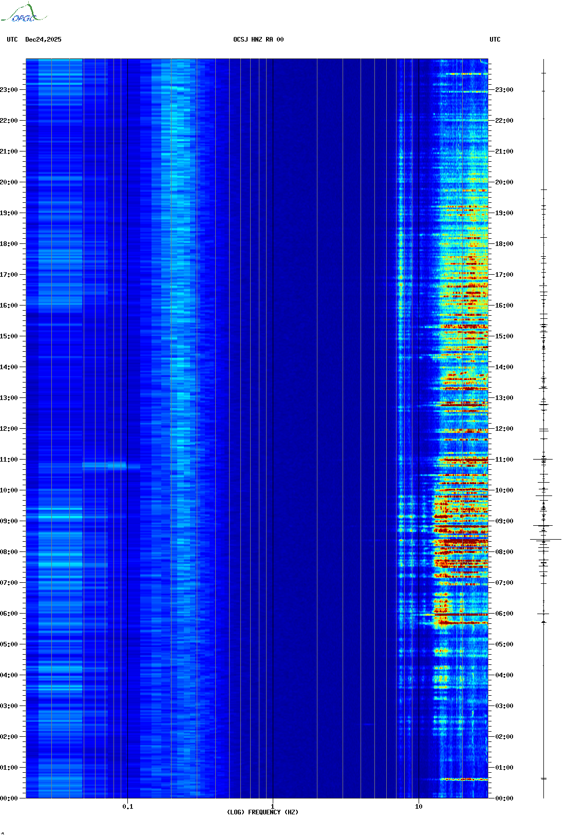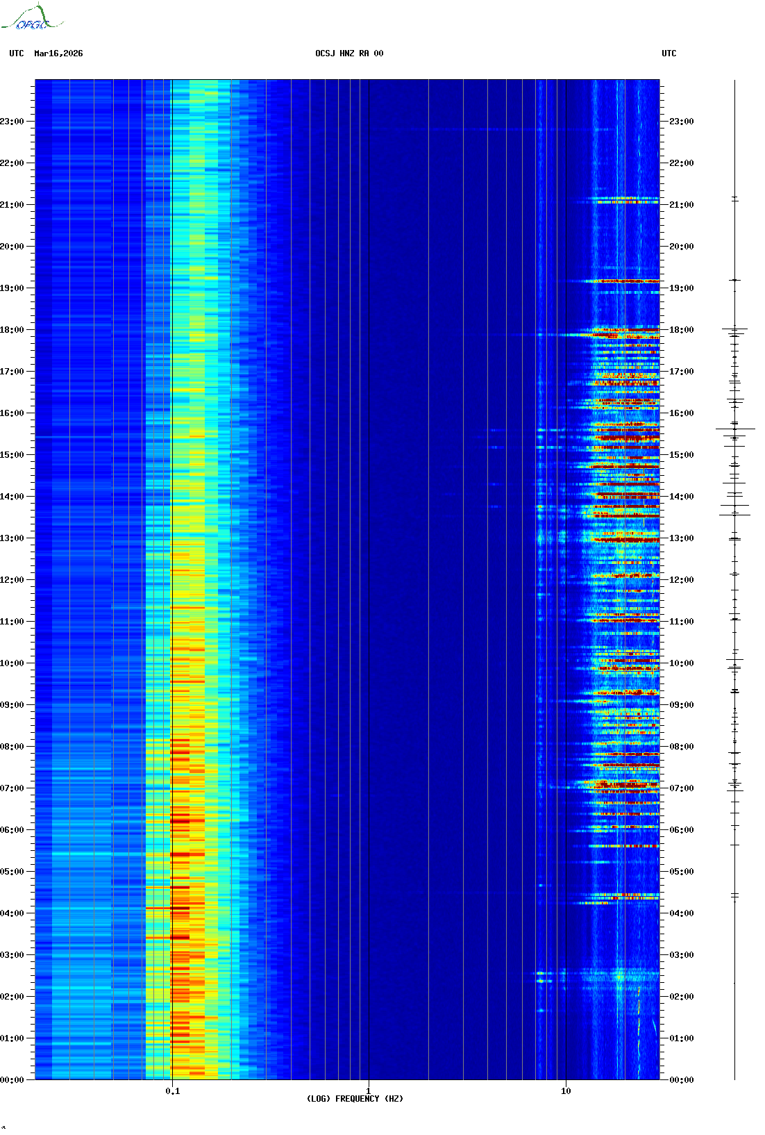 Spectrogrammes du Réseau Sismologique Auvergne-Charentes