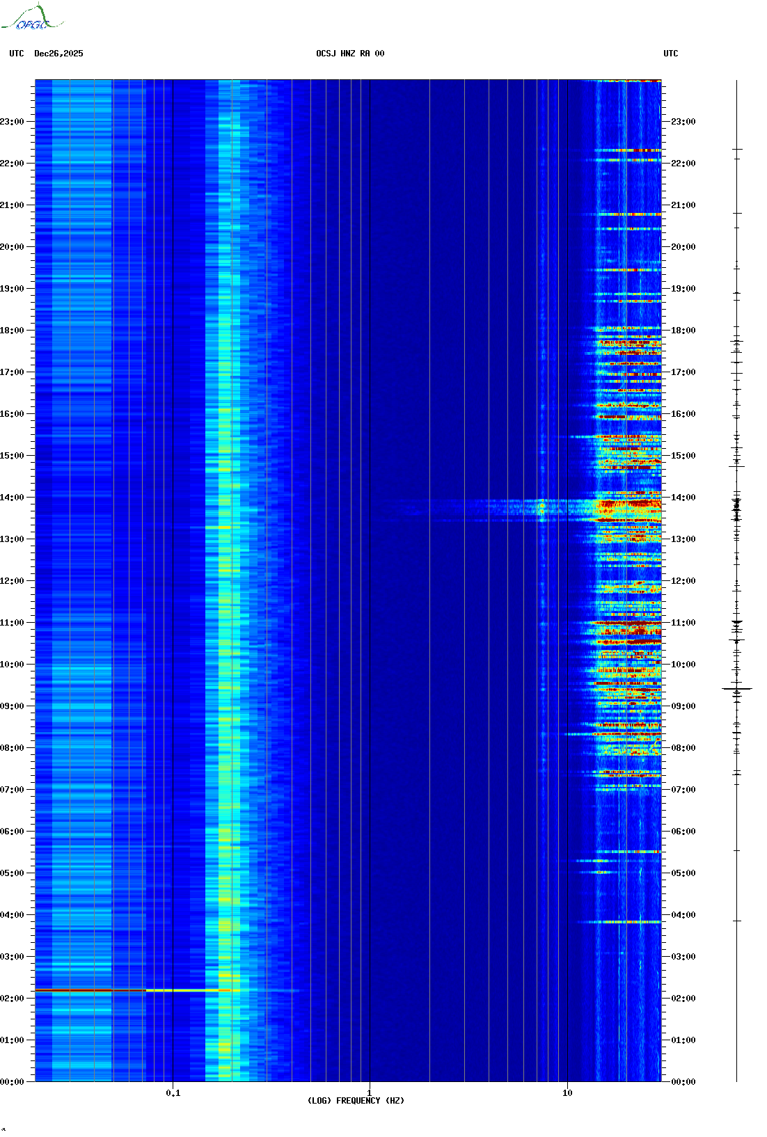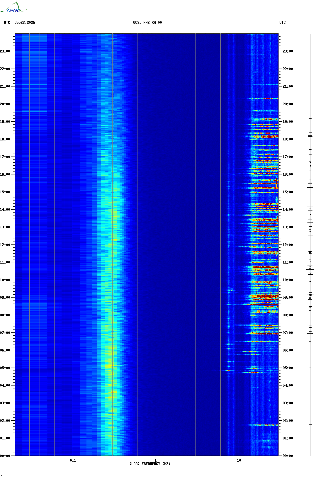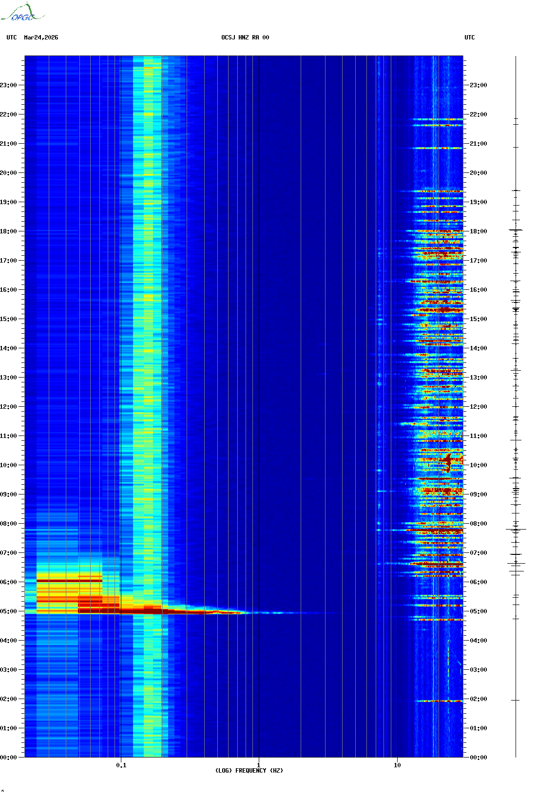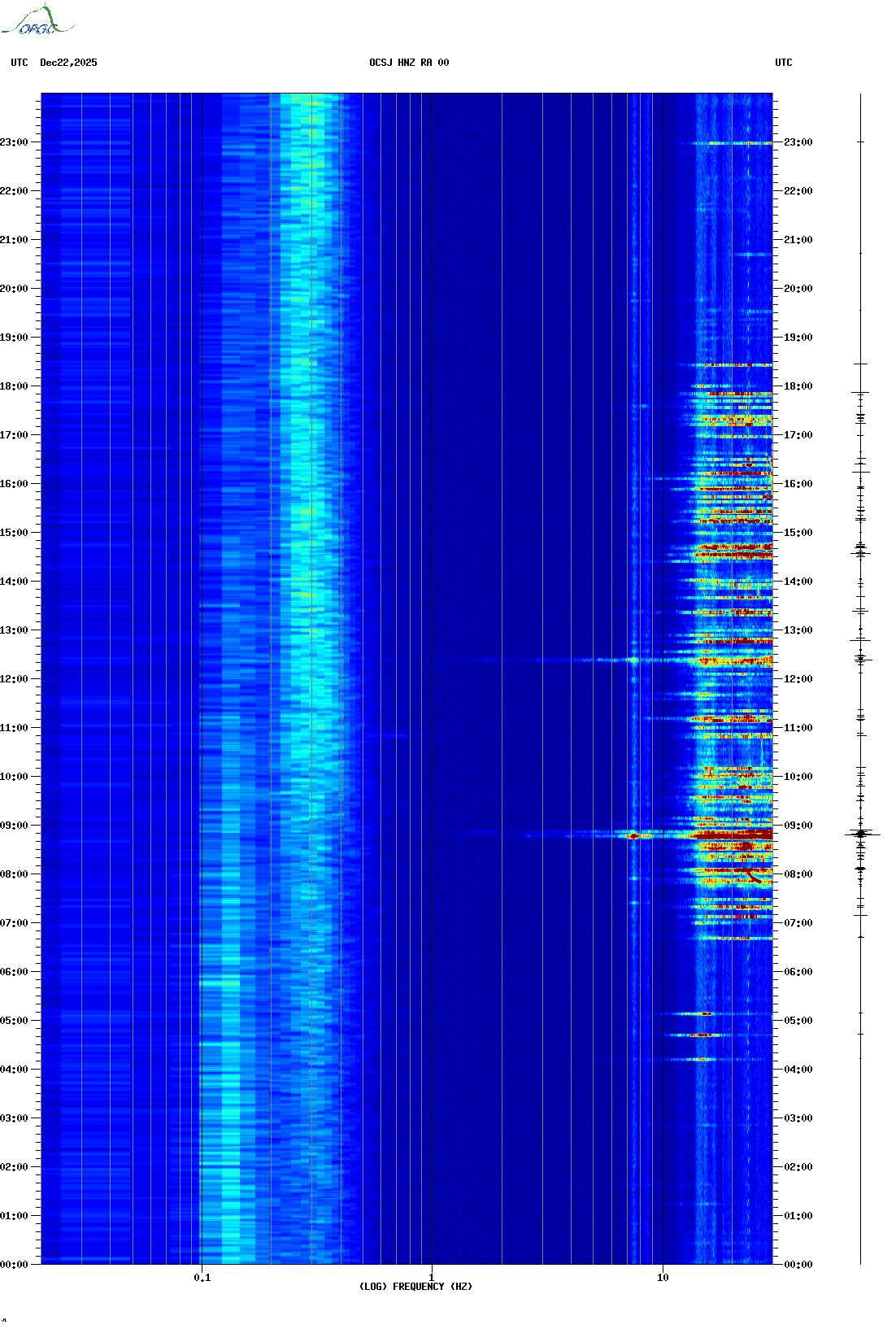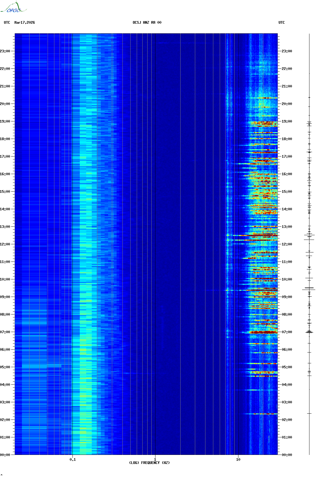 Spectrogrammes du Réseau Sismologique Auvergne-Charentes