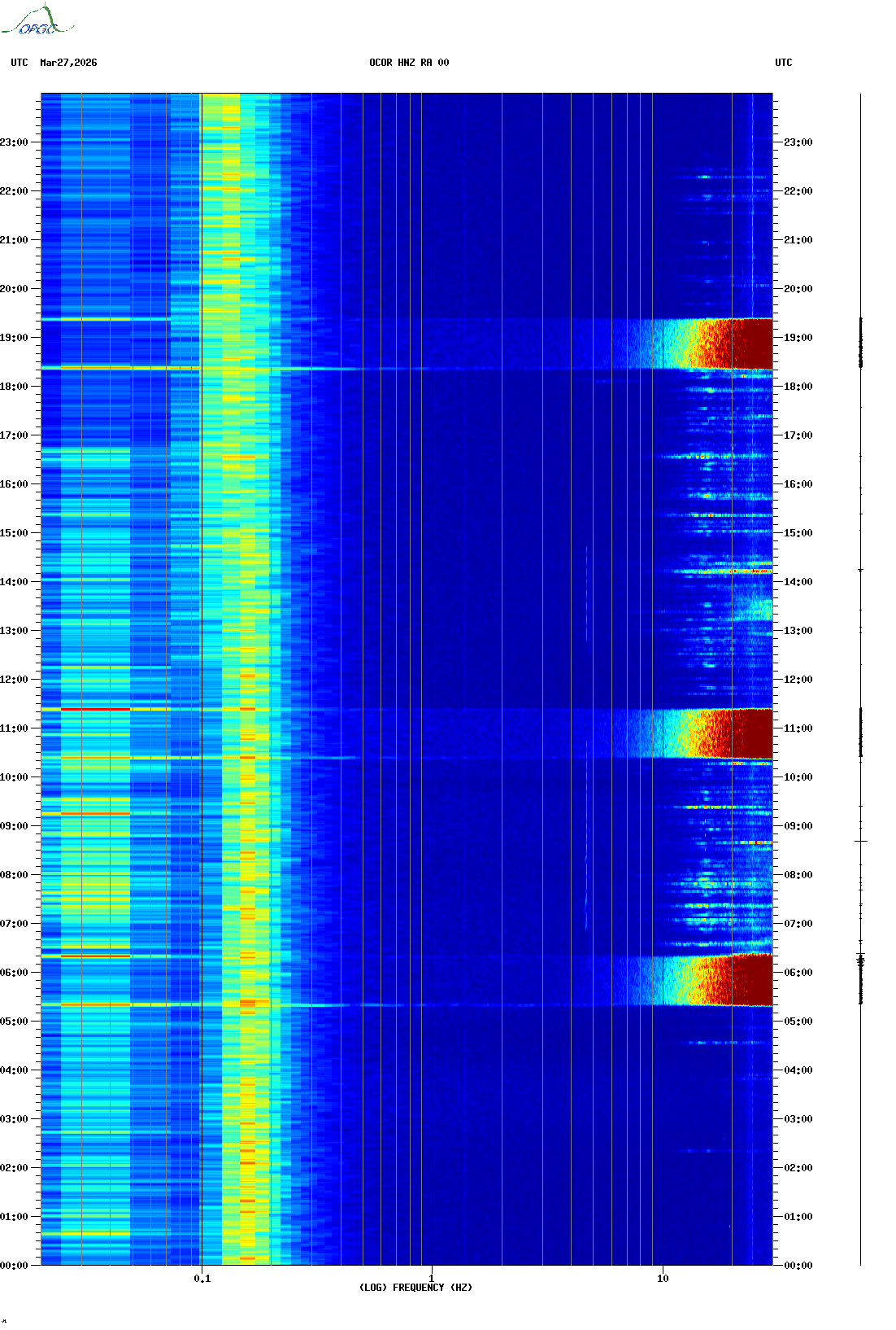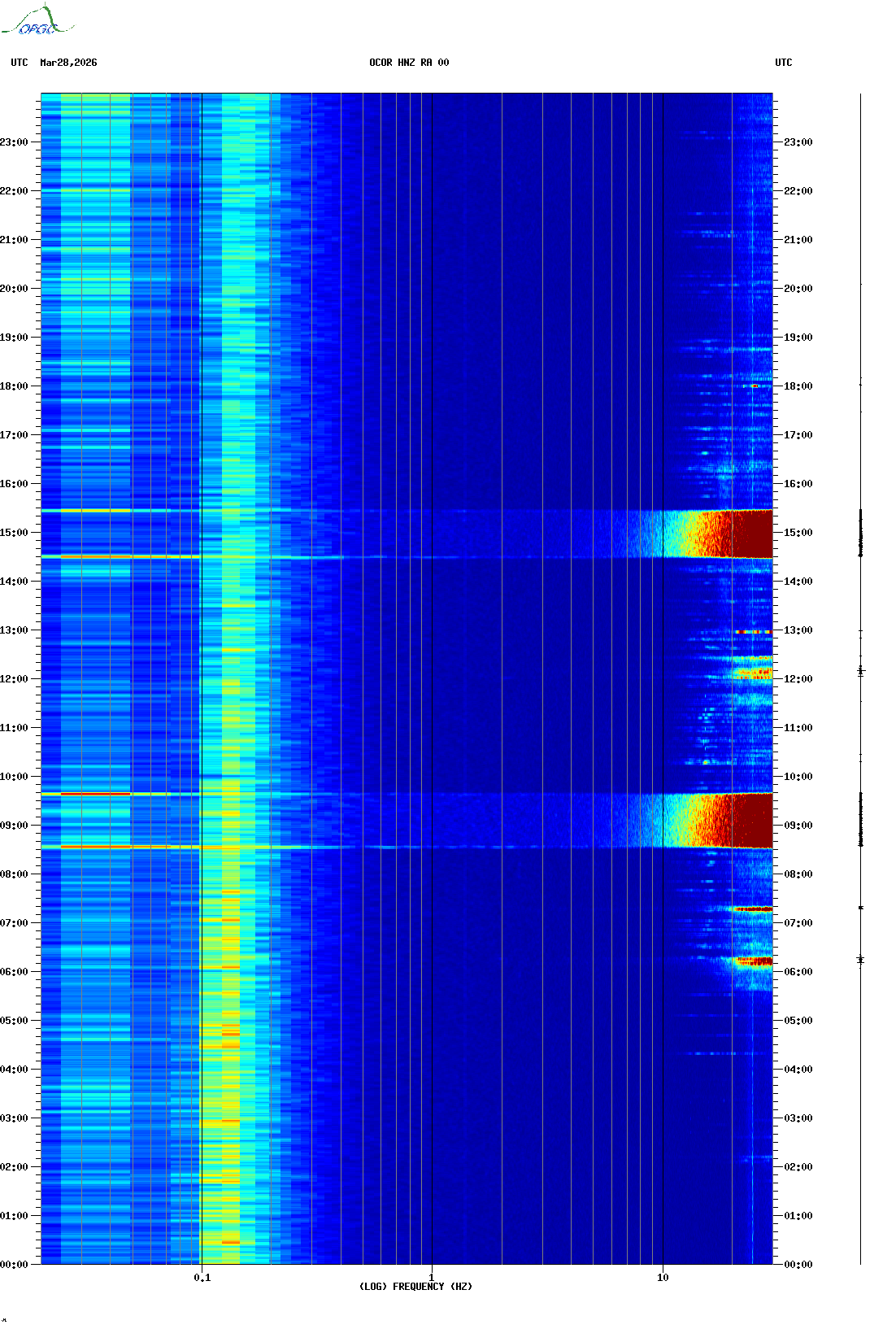 Spectrogrammes du Réseau Sismologique Auvergne-Charentes
