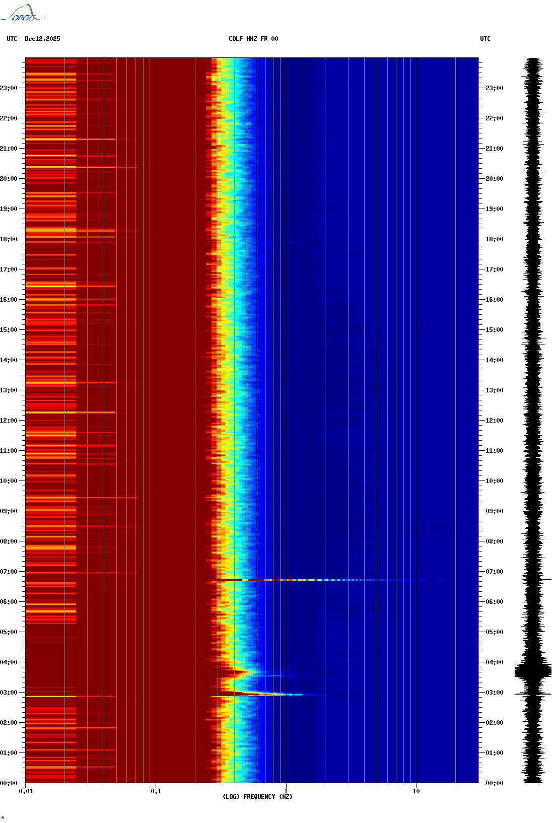Spectrogrammes du Réseau Sismologique Auvergne-Charentes
