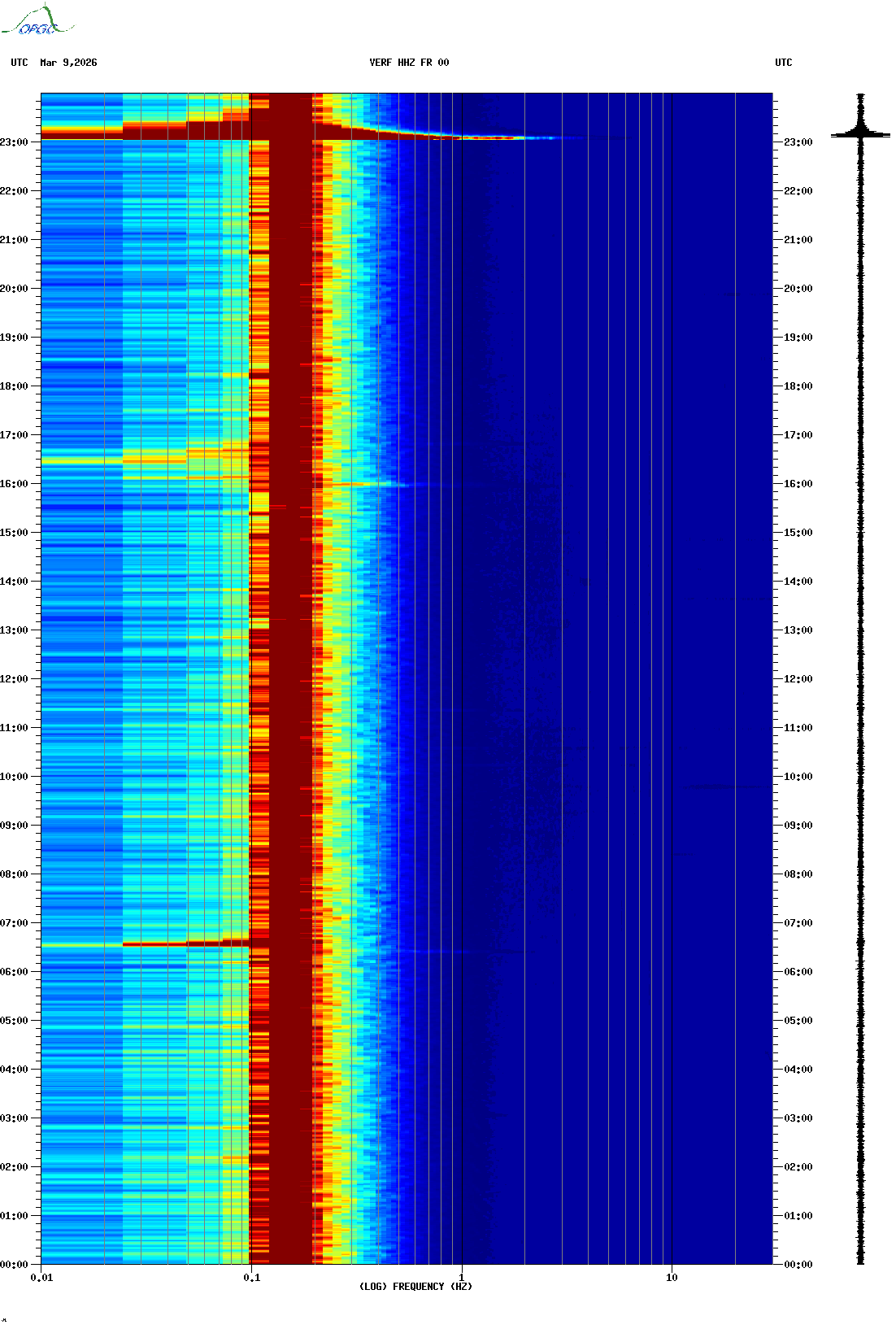Spectrogrammes du Réseau Sismologique Auvergne-Charentes