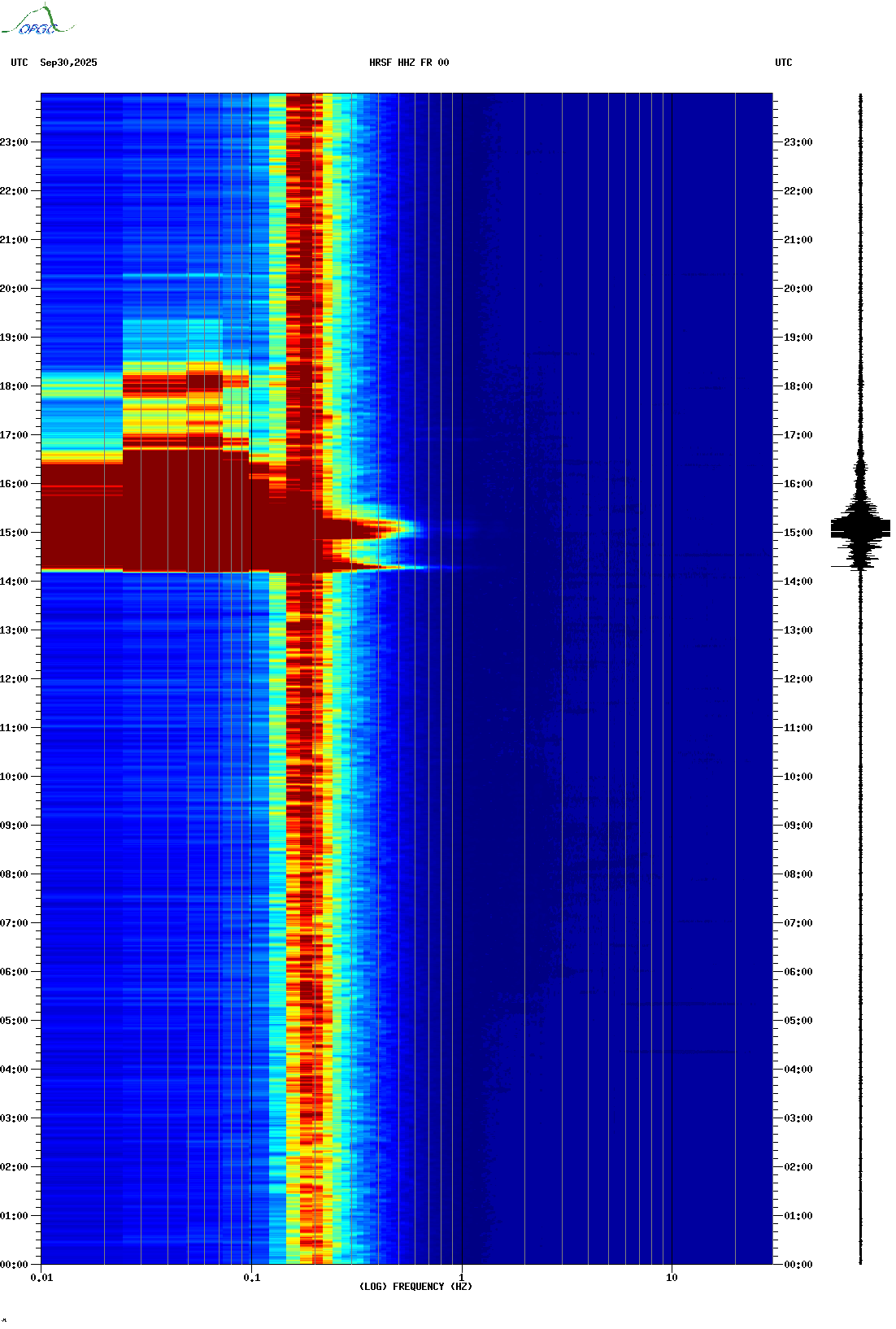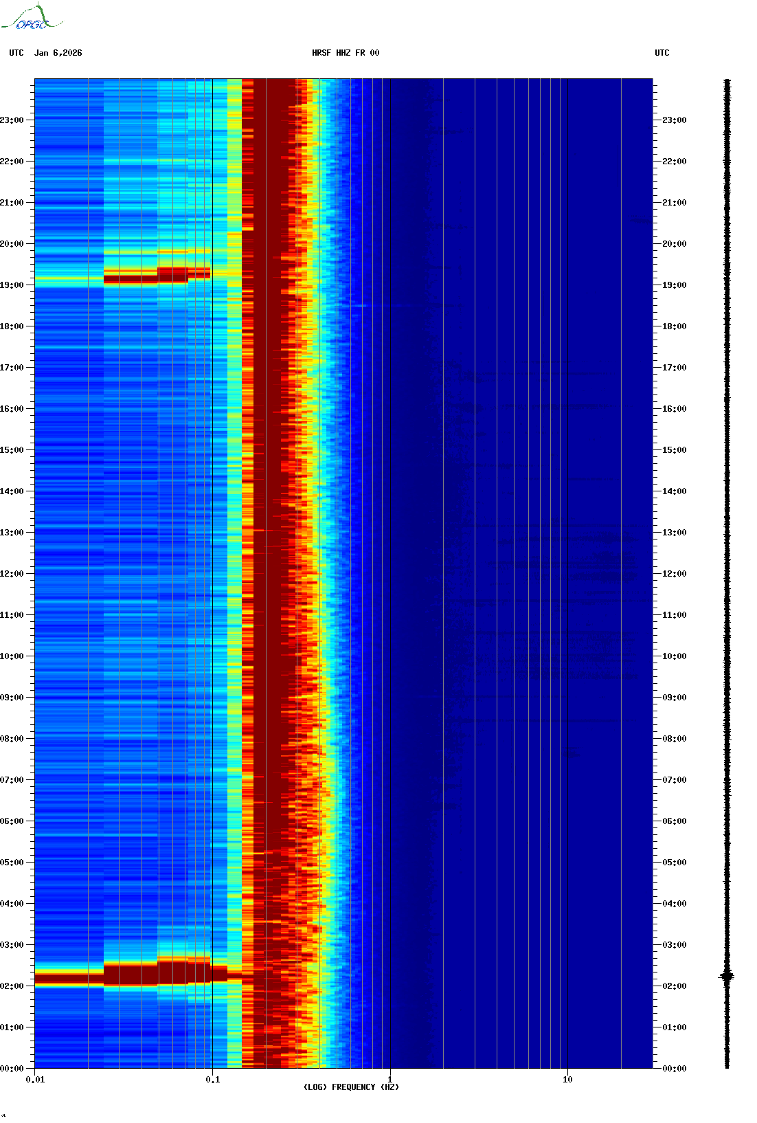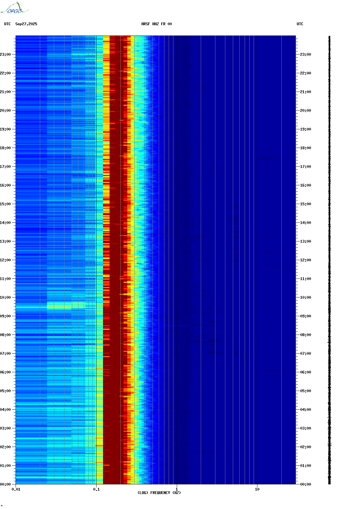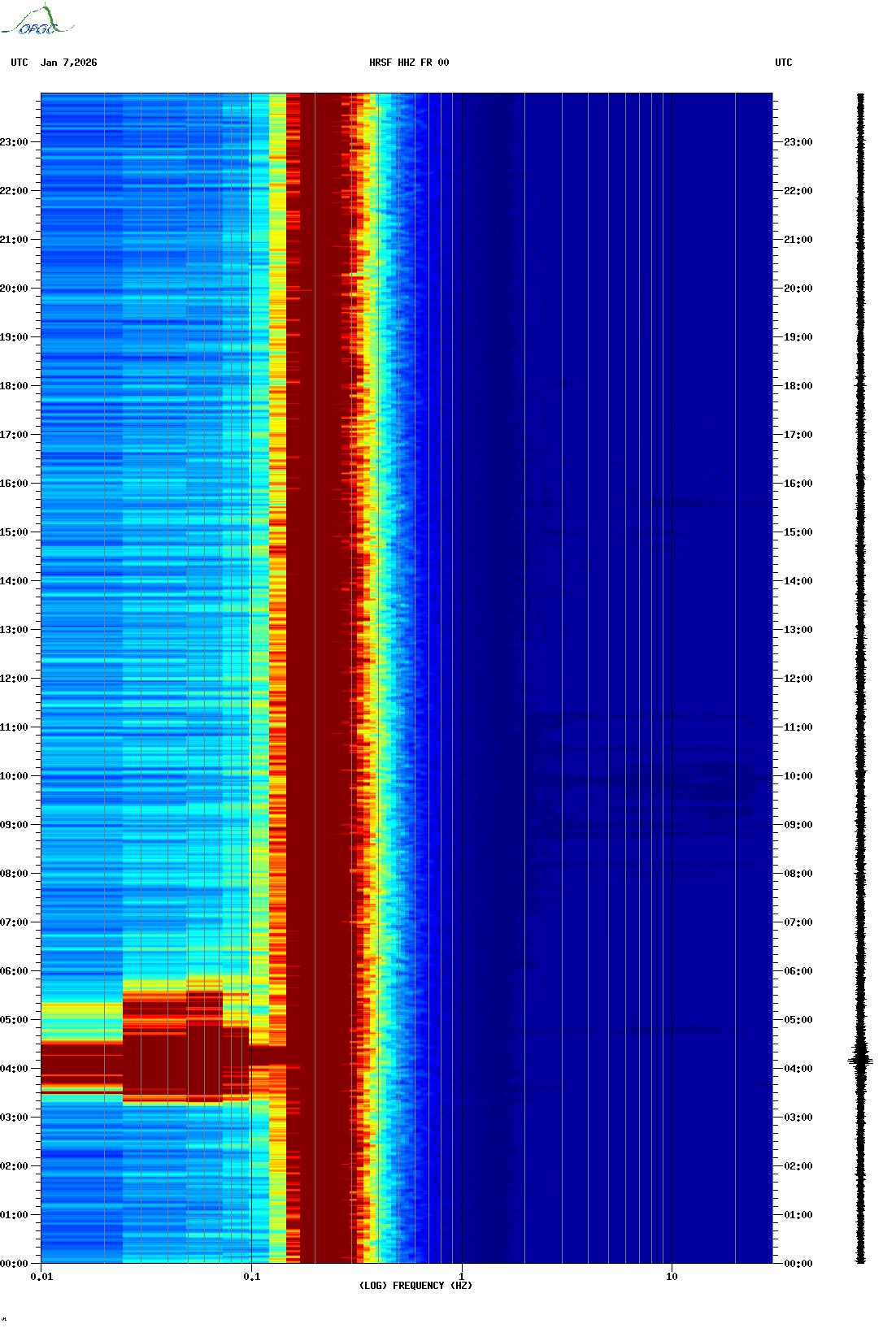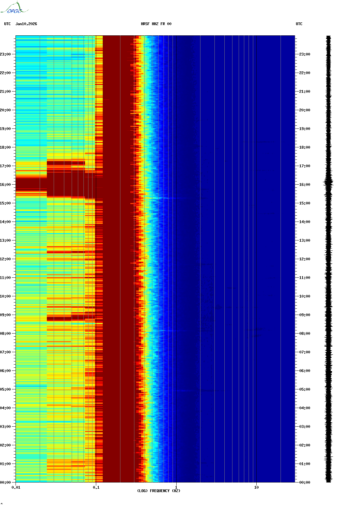 Spectrogrammes du Réseau Sismologique Auvergne-Charentes