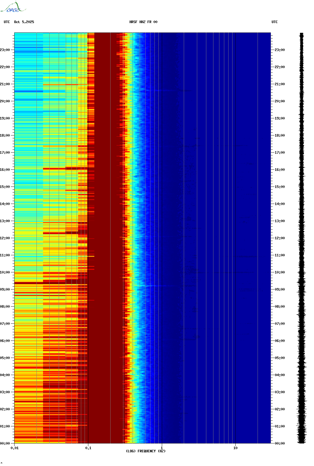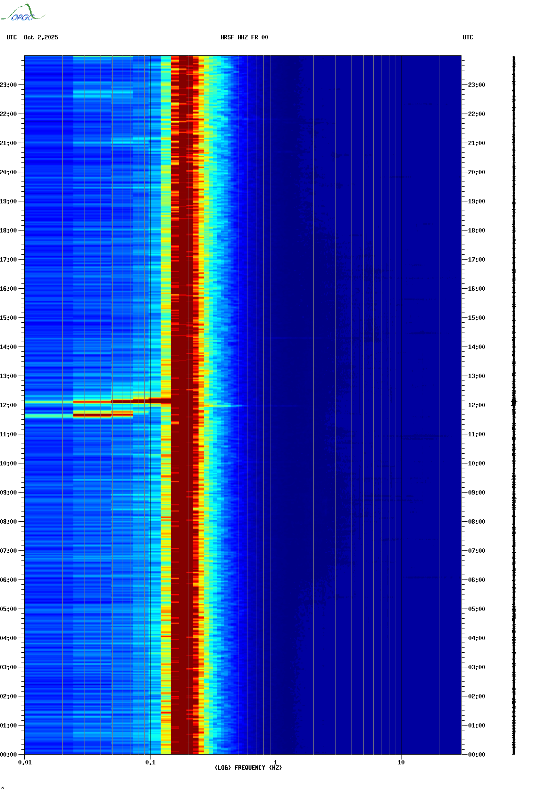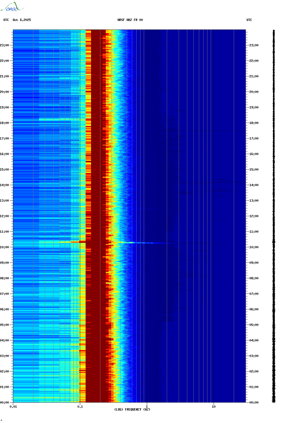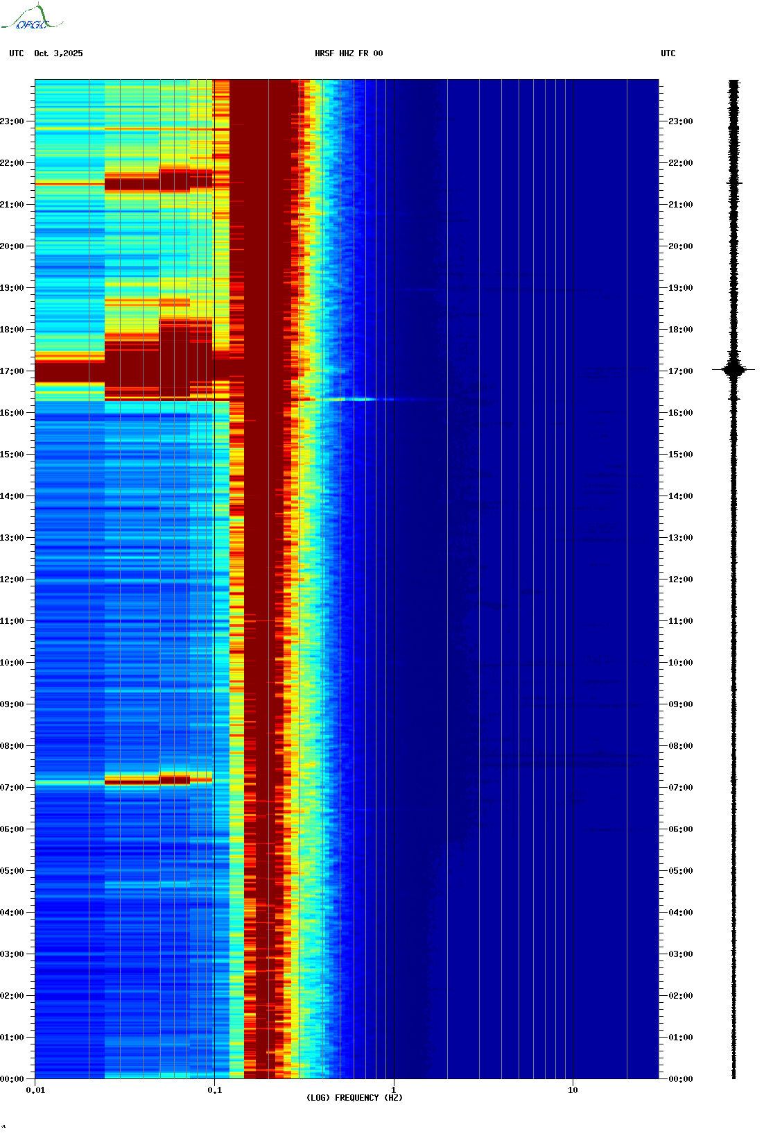 Spectrogrammes du Réseau Sismologique Auvergne-Charentes