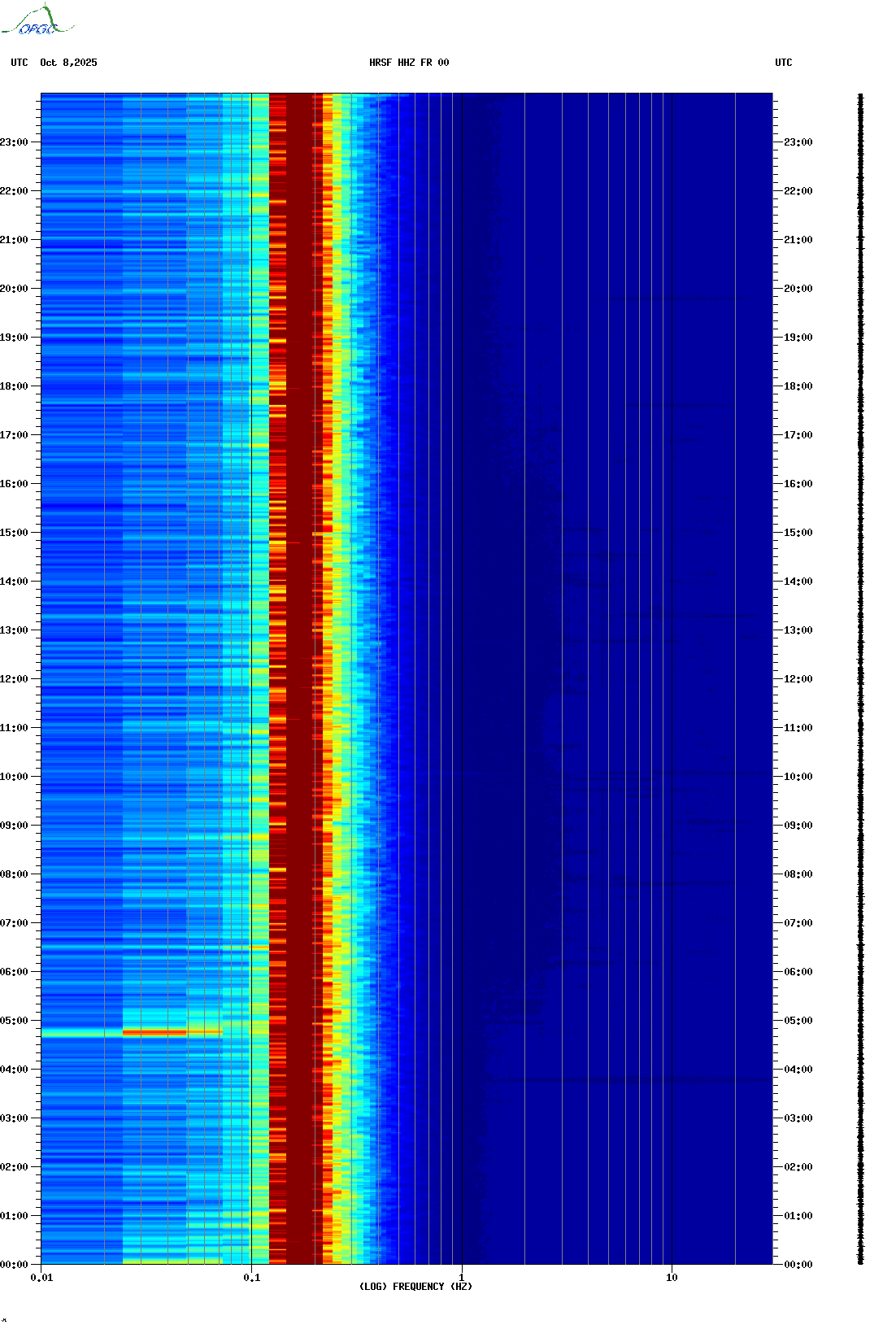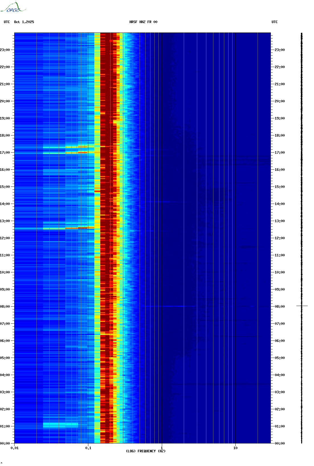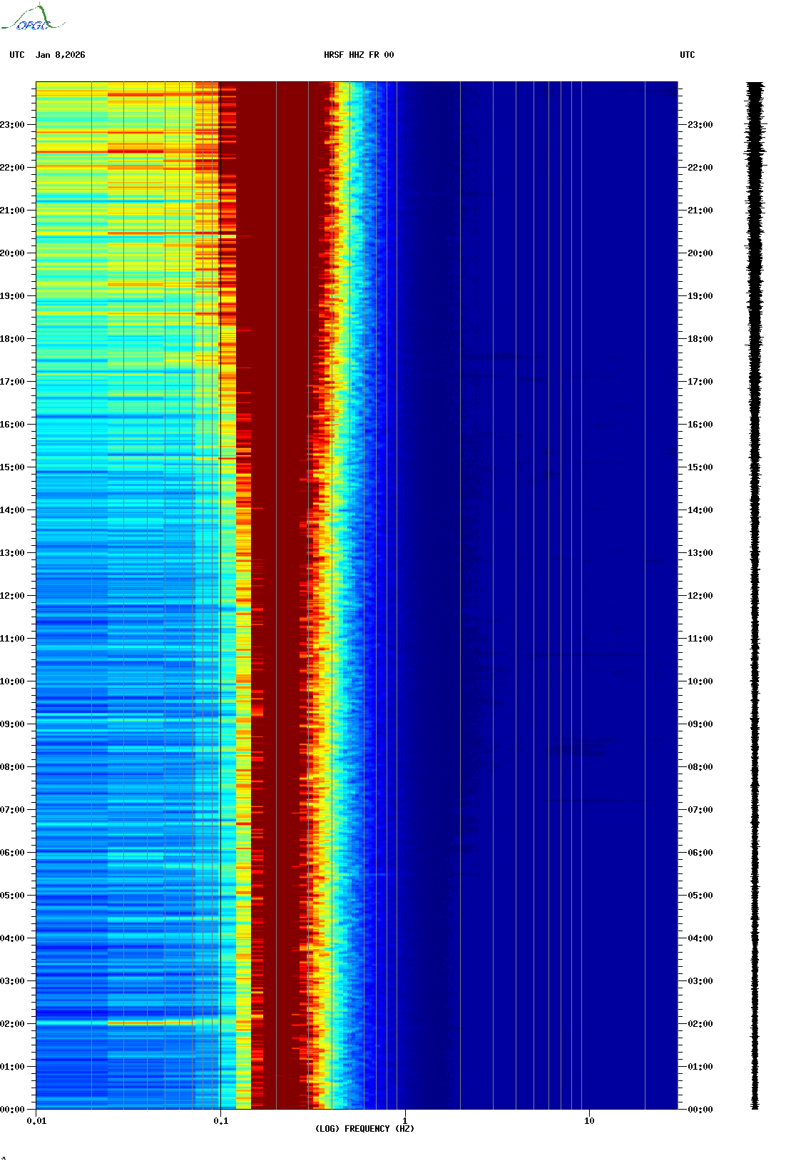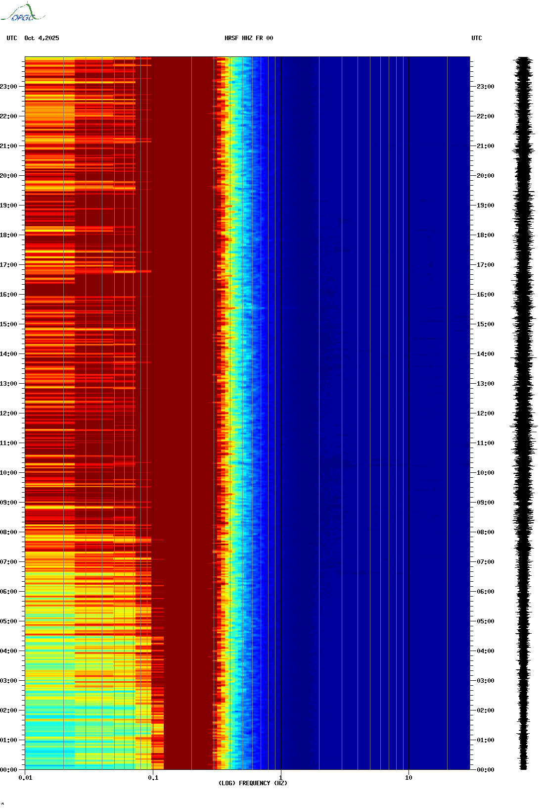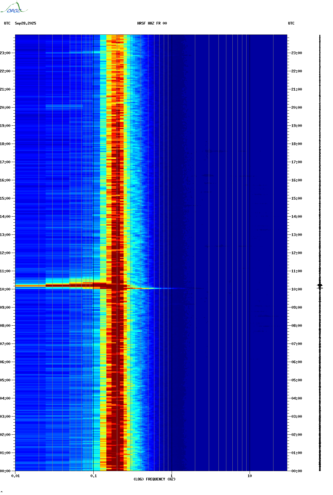 Spectrogrammes du Réseau Sismologique Auvergne-Charentes